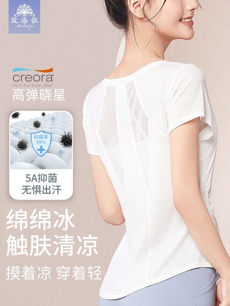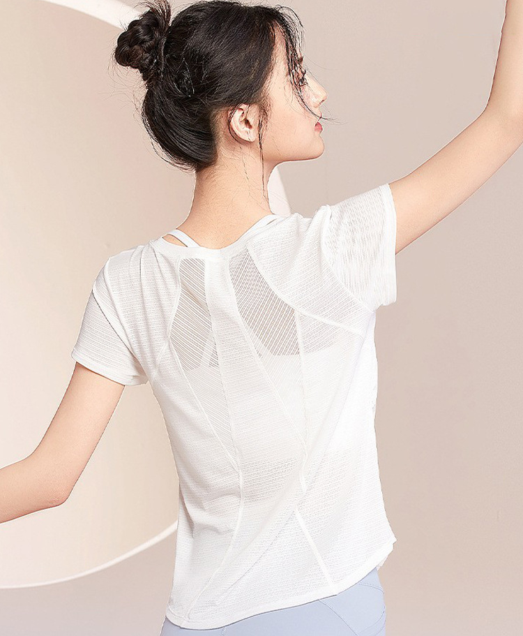 요가 커버업 봄 여름 얇은 속건 반팔 피트니스복 아름다운 등 요가복 여성 스포츠 상의 하이엔드