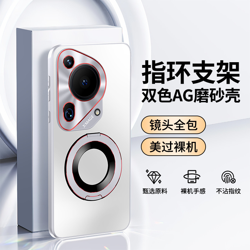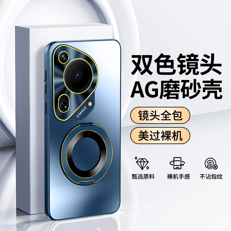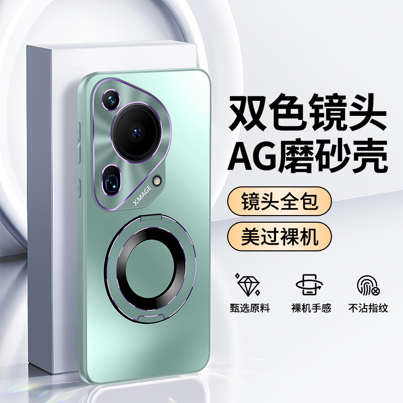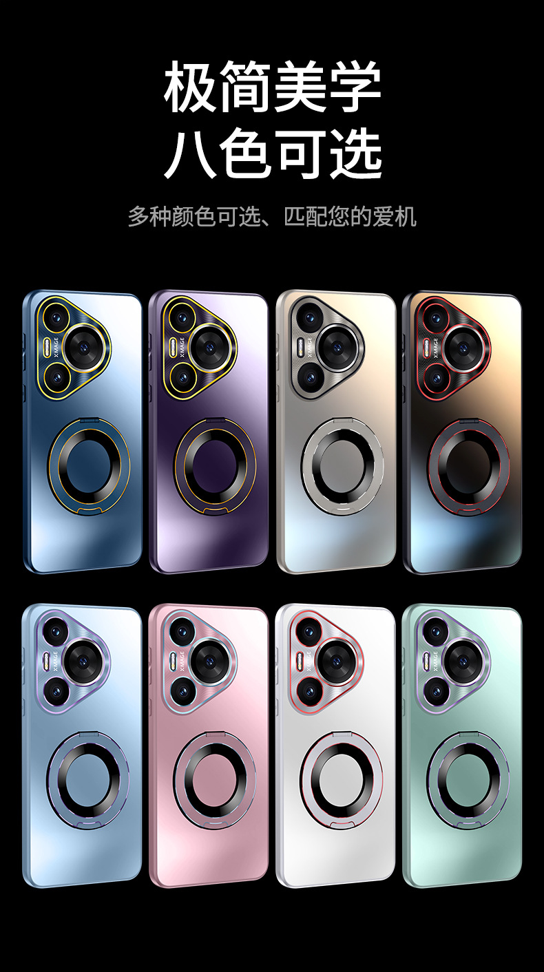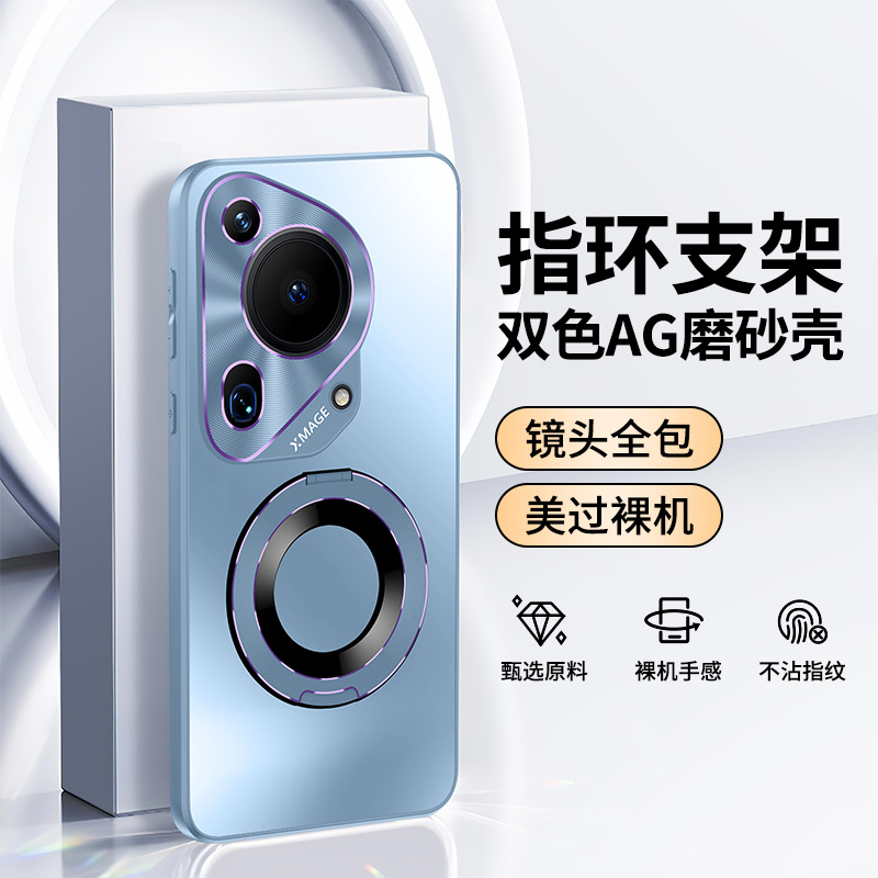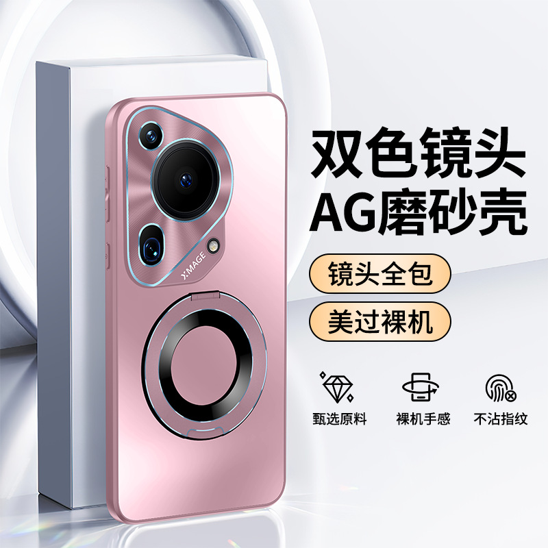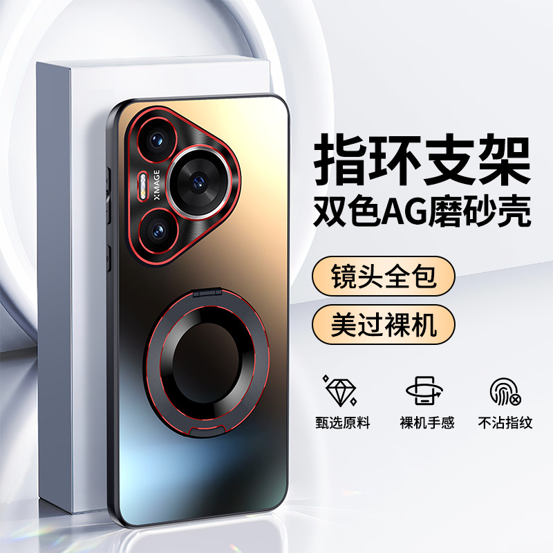화웨이 Pura70 휴대 전화 케이스 Mate60 브래킷 링 마그네틱 흡입 더블 컬러 AG 프로스트 Nova12 보호 커버에 적합