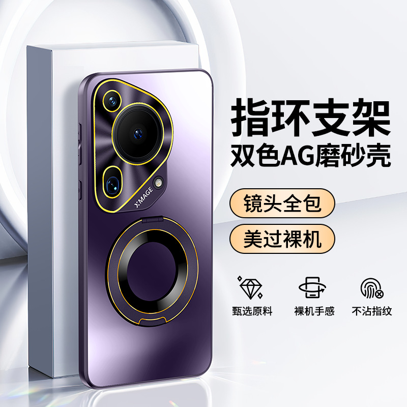 화웨이 Pura70 휴대 전화 케이스 Mate60 브래킷 링 마그네틱 흡입 더블 컬러 AG 프로스트 Nova12 보호 커버에 적합스토어 가기