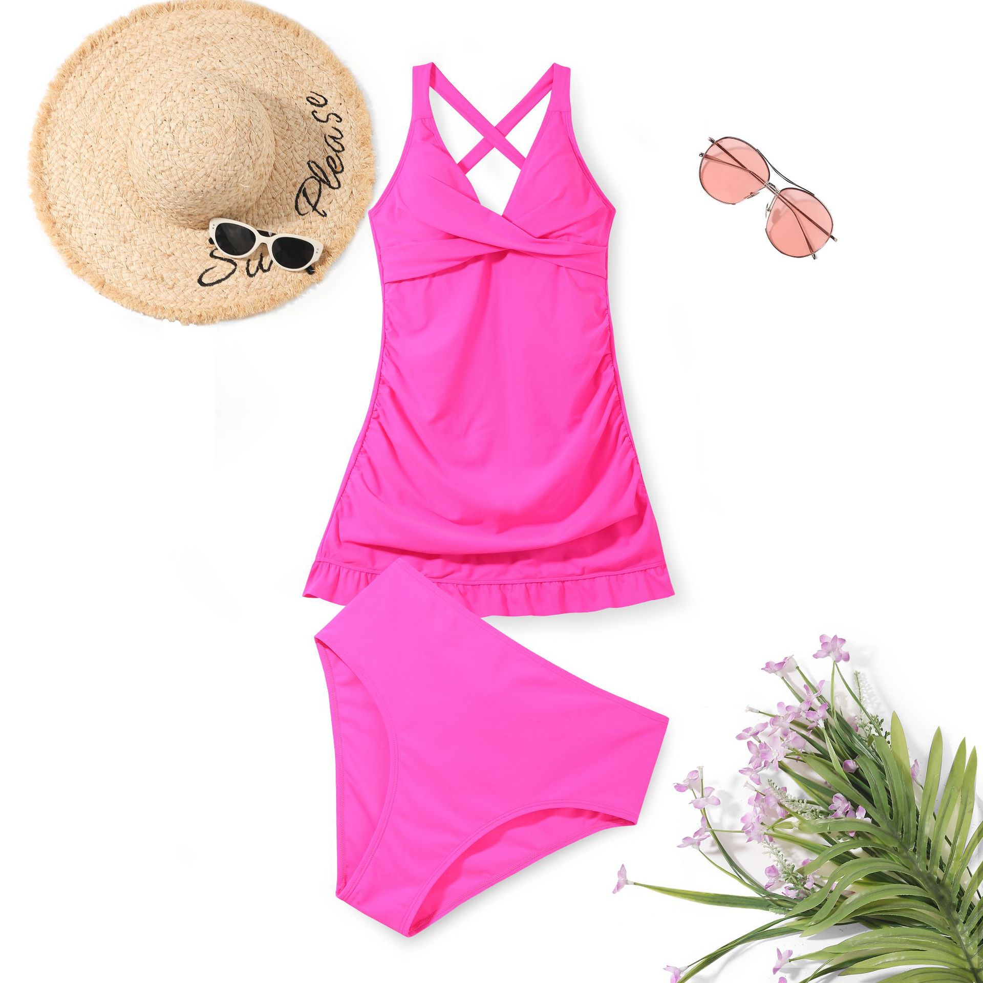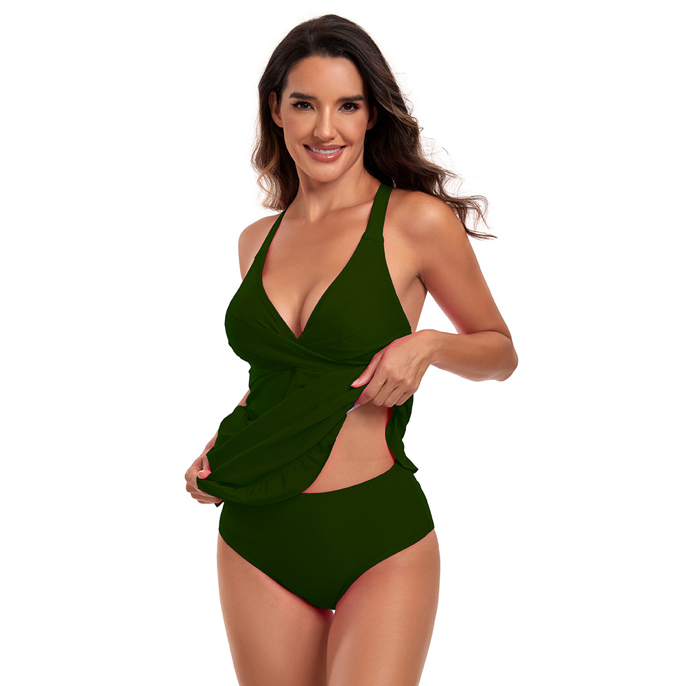 아마존 대외 무역 2024 유럽과 미국의 여름 스커트 Tankini 딥 V 솔리드 컬러 스트랩 코드 분할 수영복 여성스토어 가기
