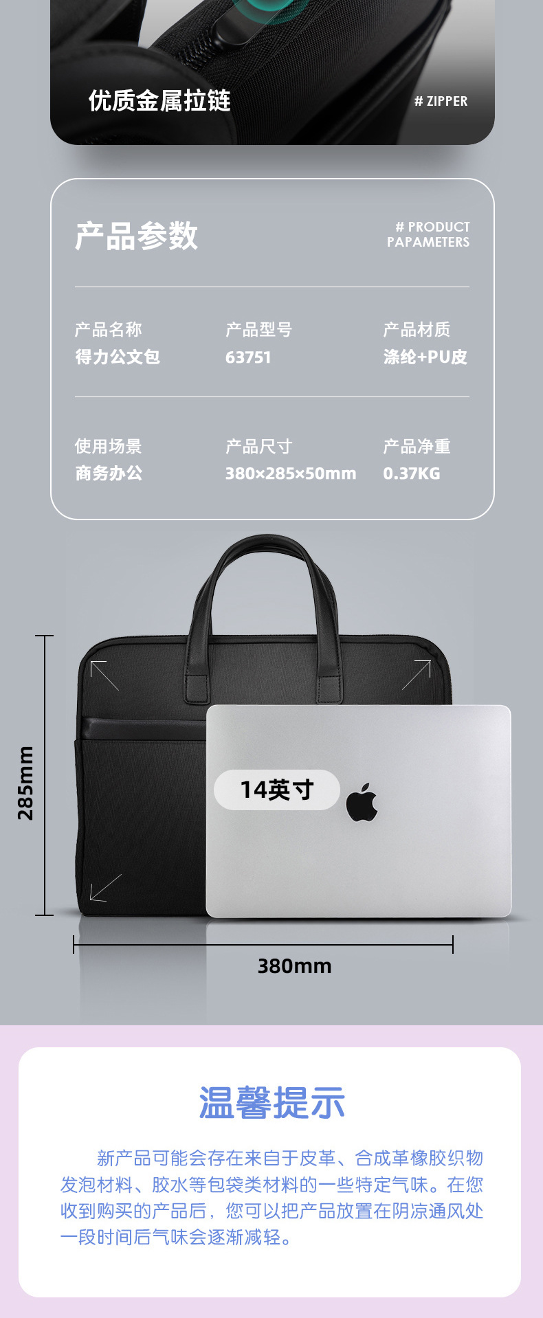 델리 63751 서류 가방 사무실 핸드백 대용량 문서 가방 정보 가방 회의 가방 간단한 컴퓨터 가방