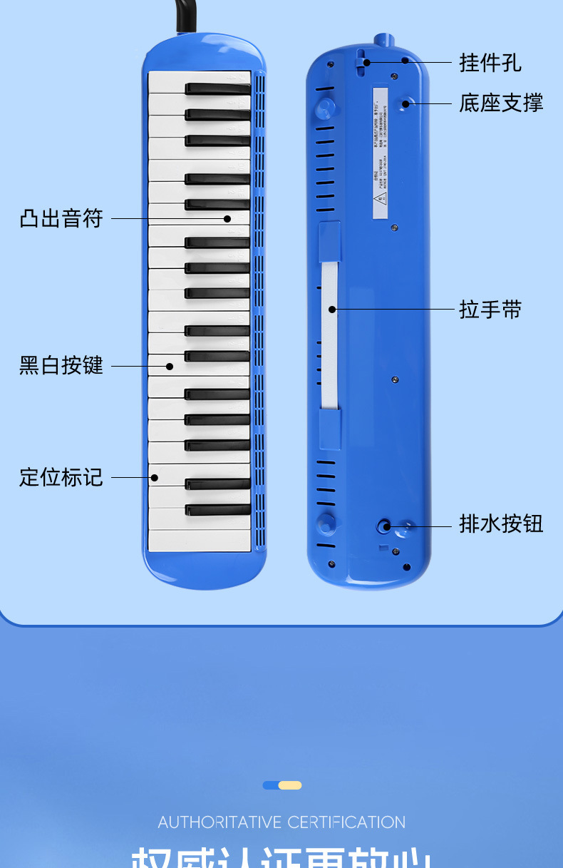 • 라벨이 없는 검정색 키 32개(마우스피스 및 블로잉 파이프 포함)