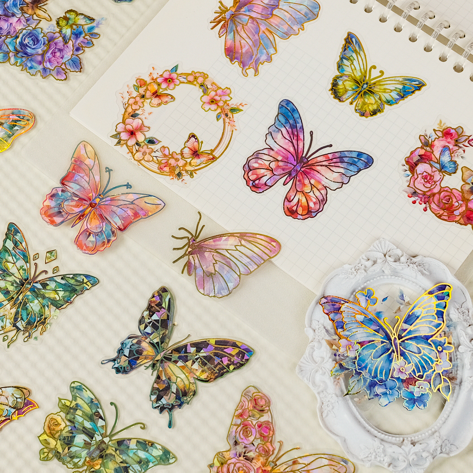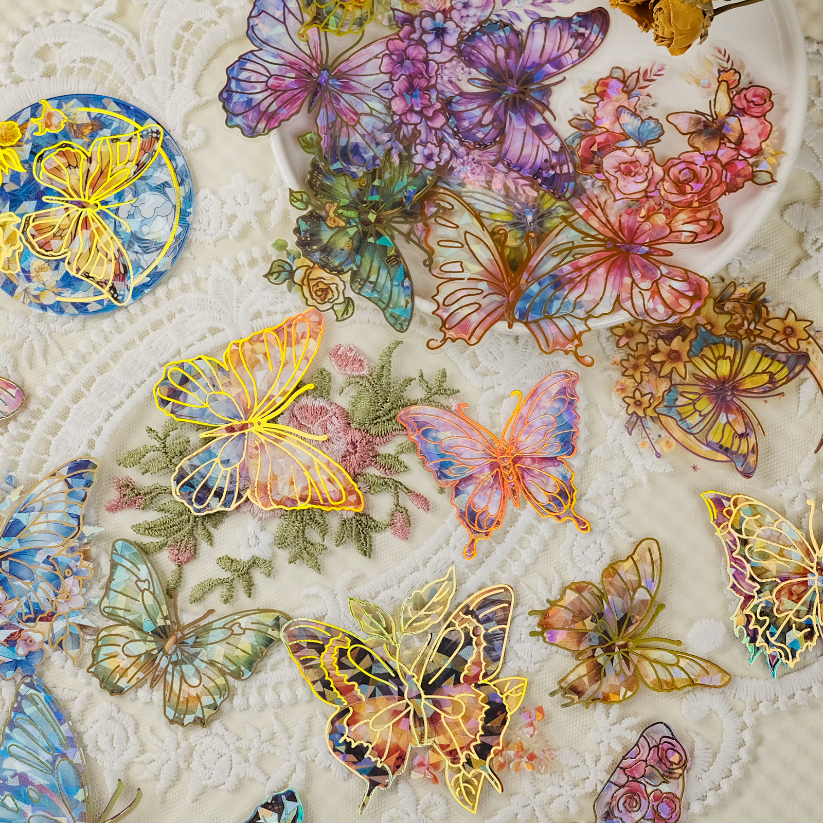 30개의 PET 입체 금박 레이저 스티커, 크로스보더 핸드메이드 DIY 창의적인 장식 스티커