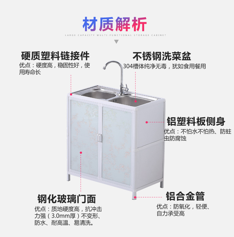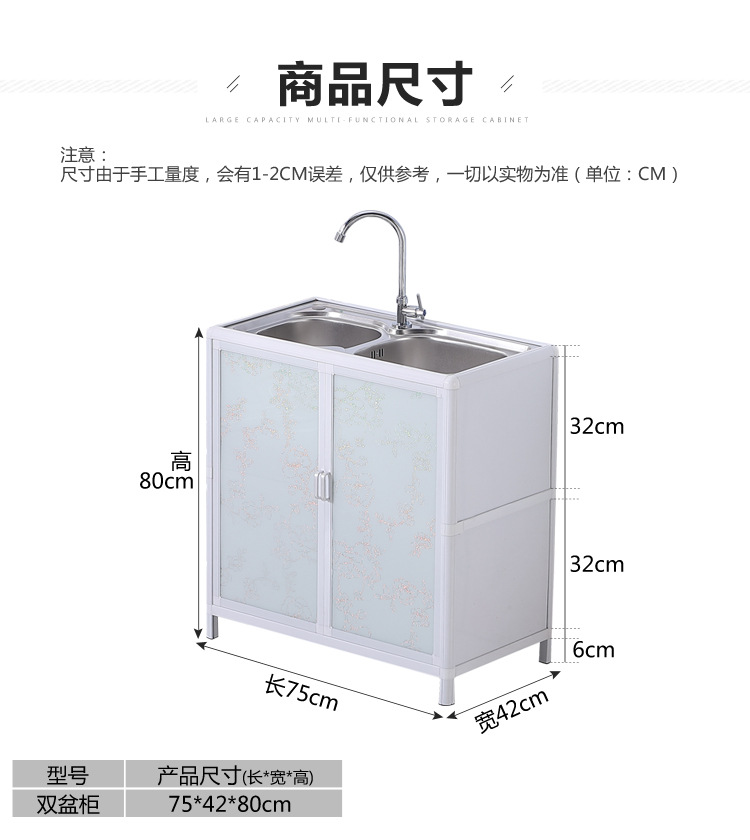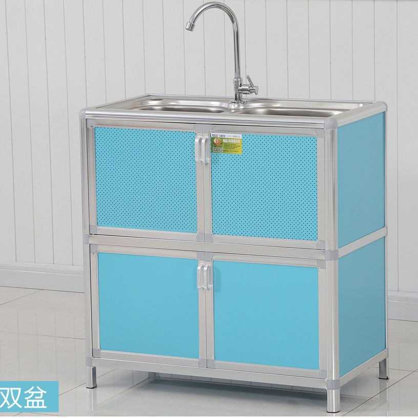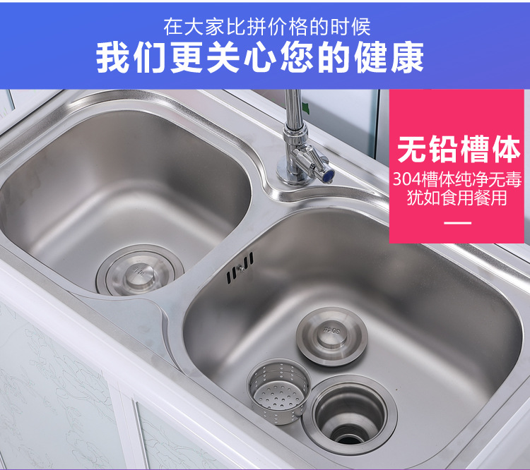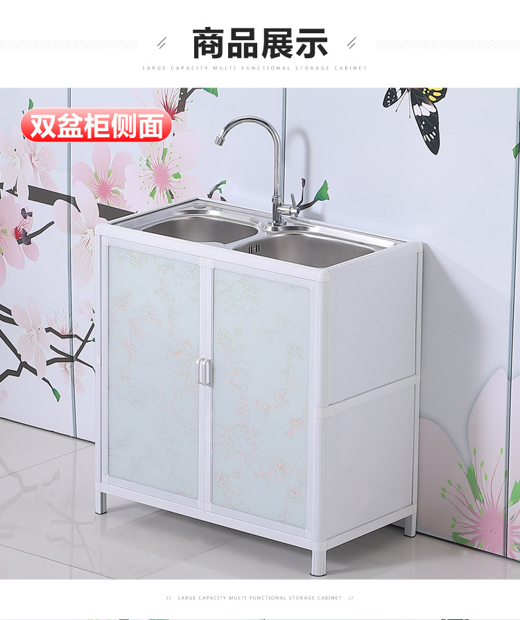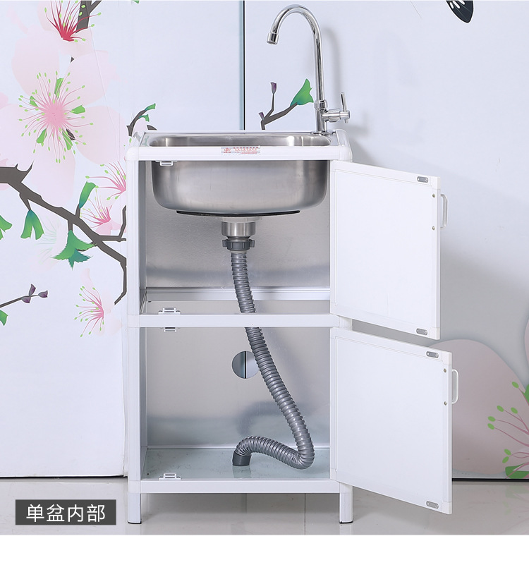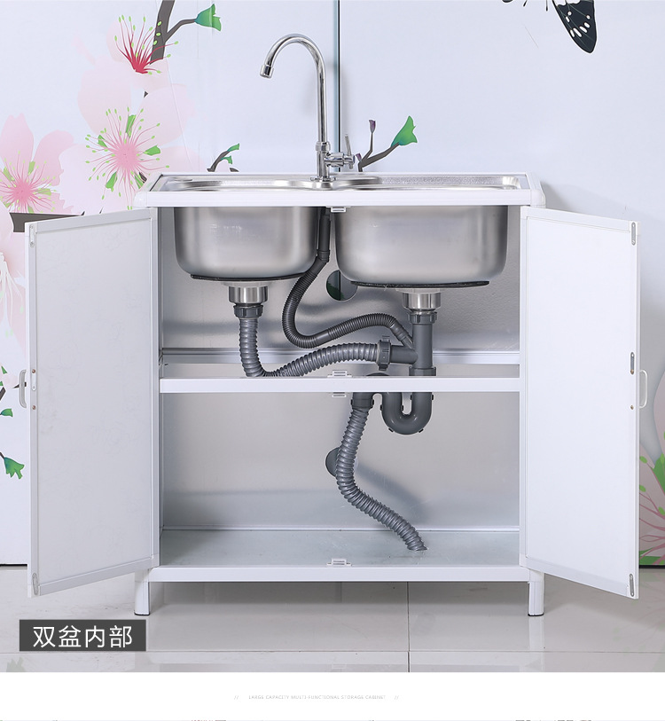 주방 스테인레스 스틸 싱크 캐비닛 야채 세척 그릇 및 대야 더블 슬롯 브래킷 다기능 수영장 저장 통합 캐비닛