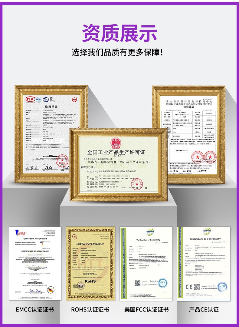 答:本厂所有产品都可按欧盟和美国相关标准进行测试,主要功能部件可提供CE、FCC、ROHS等的测试报告。