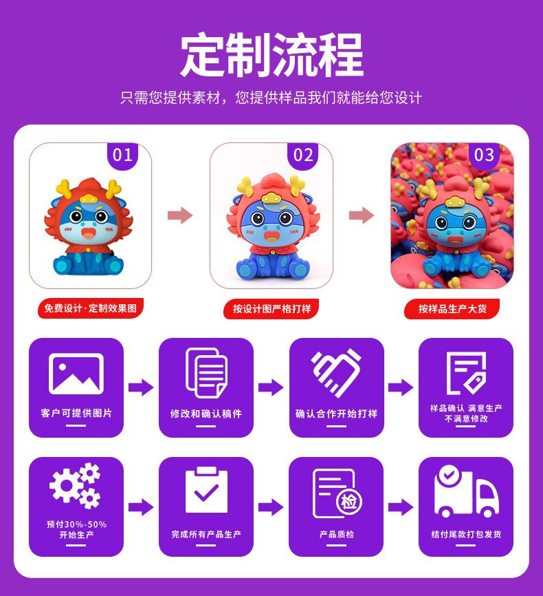 答:您根据需要的产品效果,提供产品资料,以AI、CDR、EPS、PDF、IGS等或平面或立体设计稿的格式文档发我们,然后由本厂专业的3D设计团队根据您提供的资料来设计相应的产品结构和外形。您也可提供产品照片或实物样品,由本厂专业设计工程师抄版设计达到基本一致的外观和质量效果。