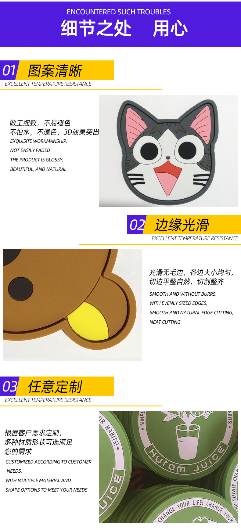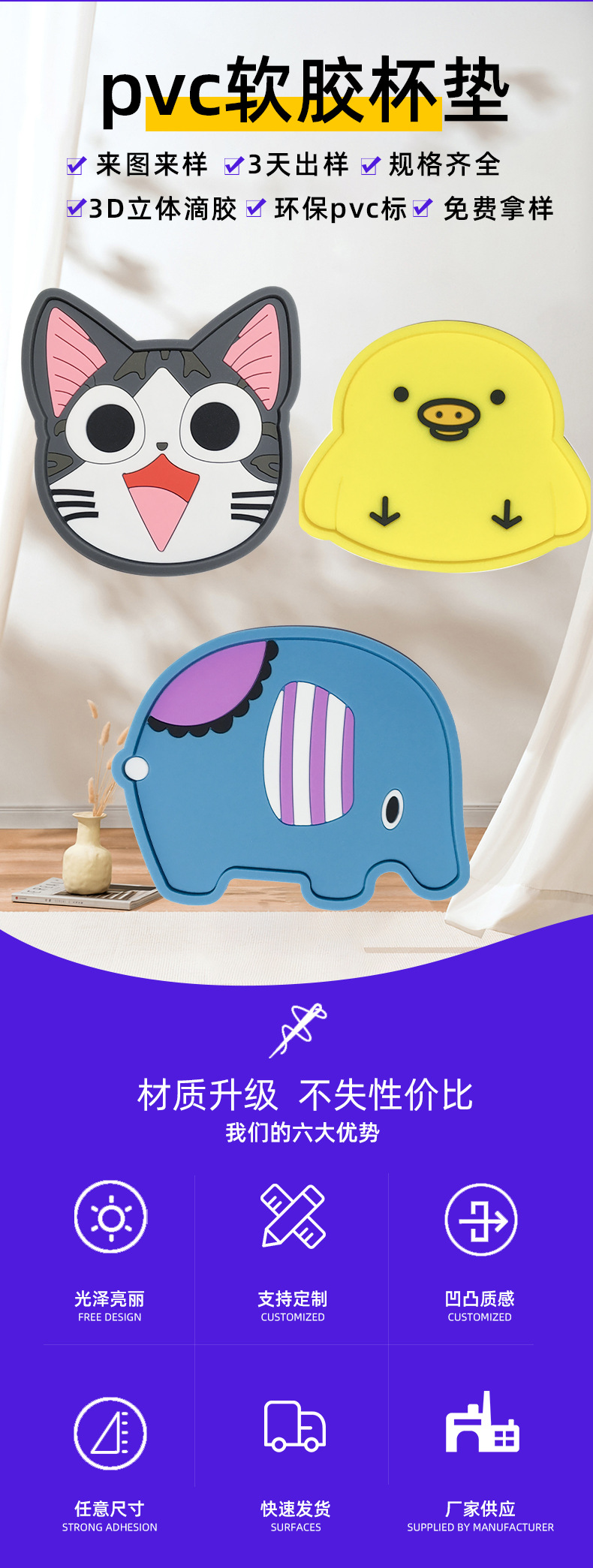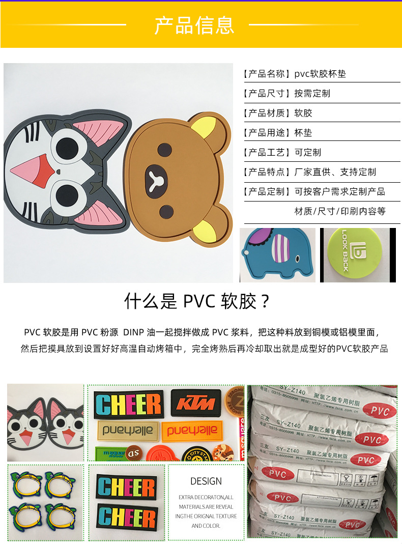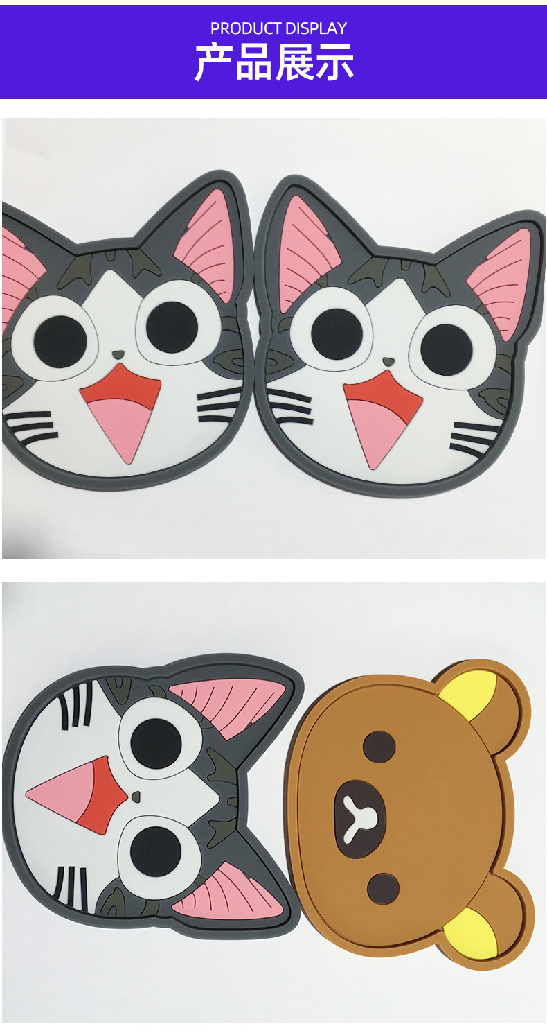 창조적 인 모양의 부드러운 고무 절연 컵 매트 PVC 컵 매트 만화 애니메이션 안티 스케일 미끄럼 방지 컵 매트 사용자 정의스토어 가기