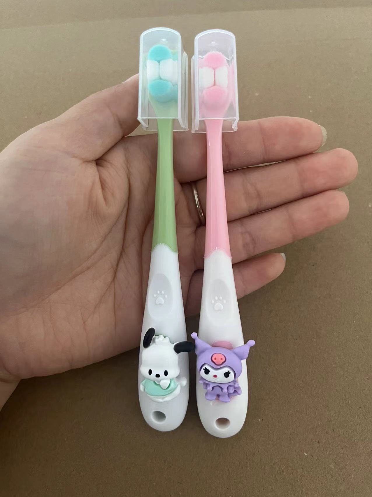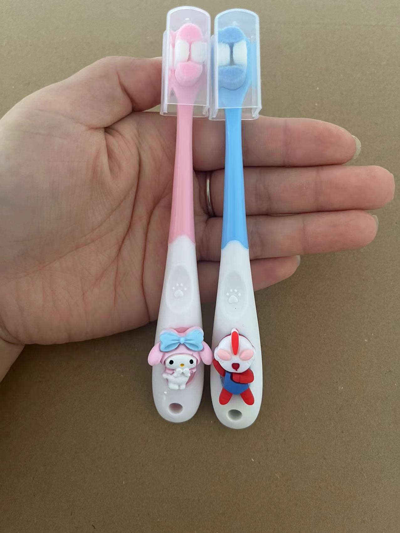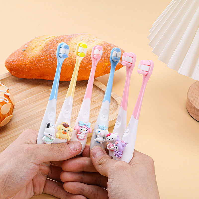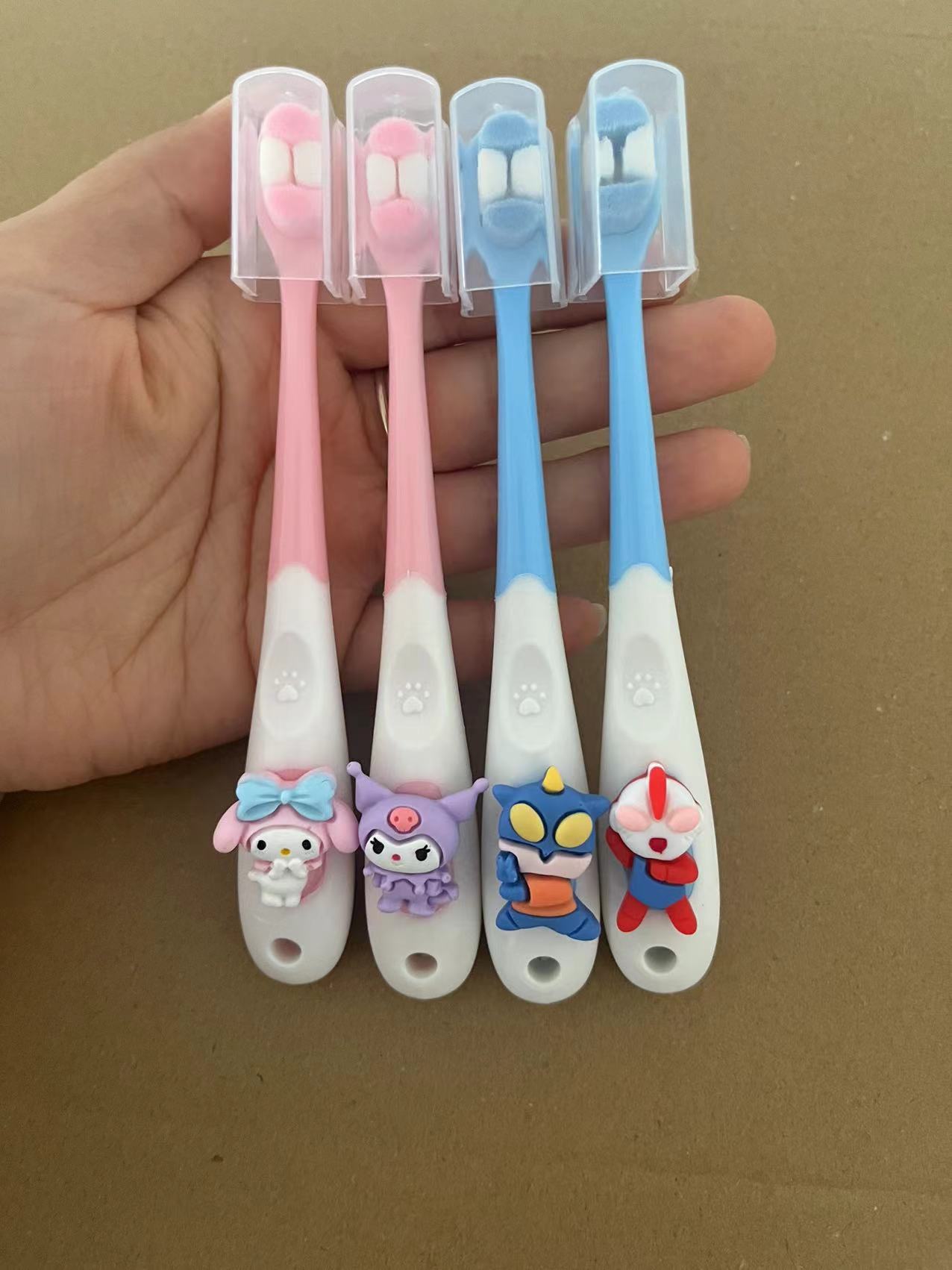 귀여운 산리오 어린이 칫솔 3-6-12 세 초보자 어린이 칫솔 만화 유구이 개 울트라 맨 소프트 브러쉬