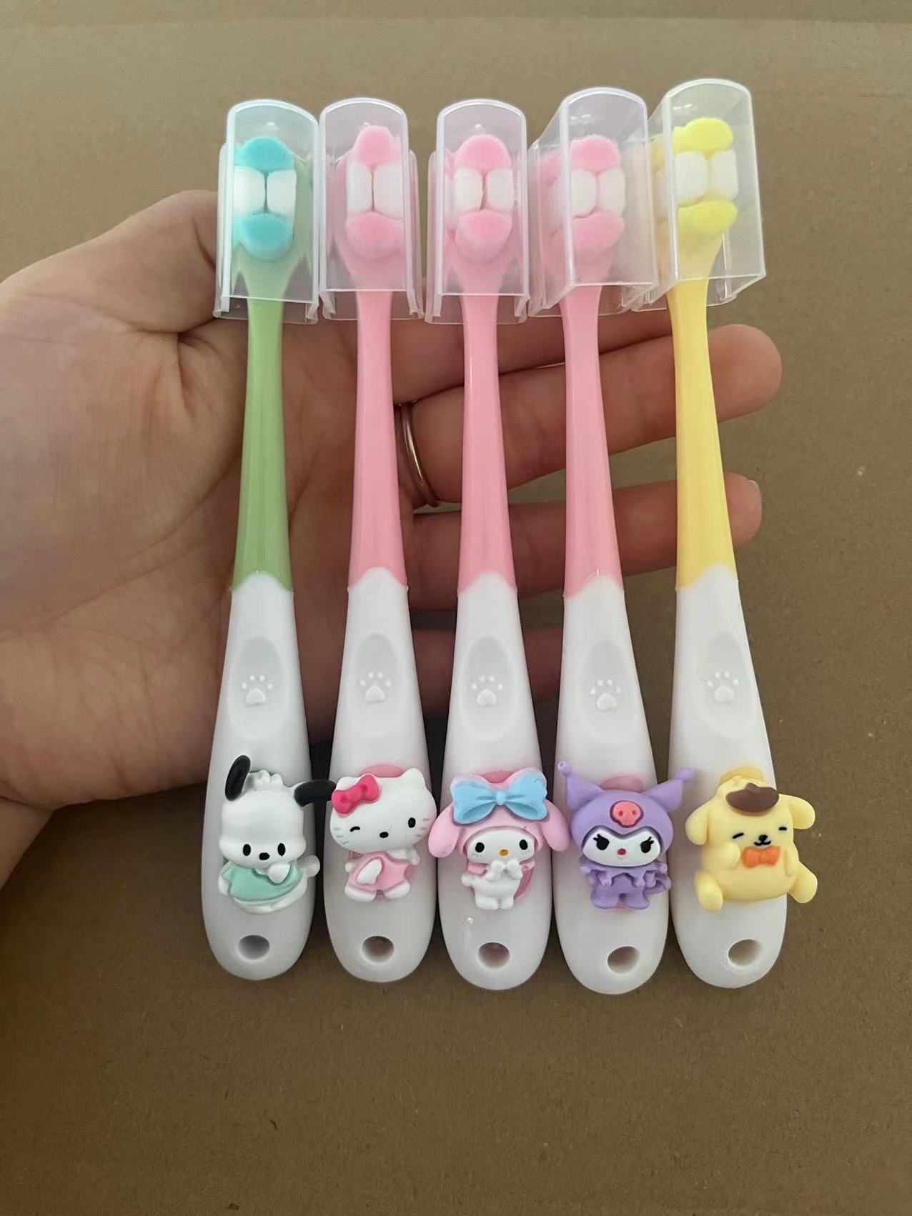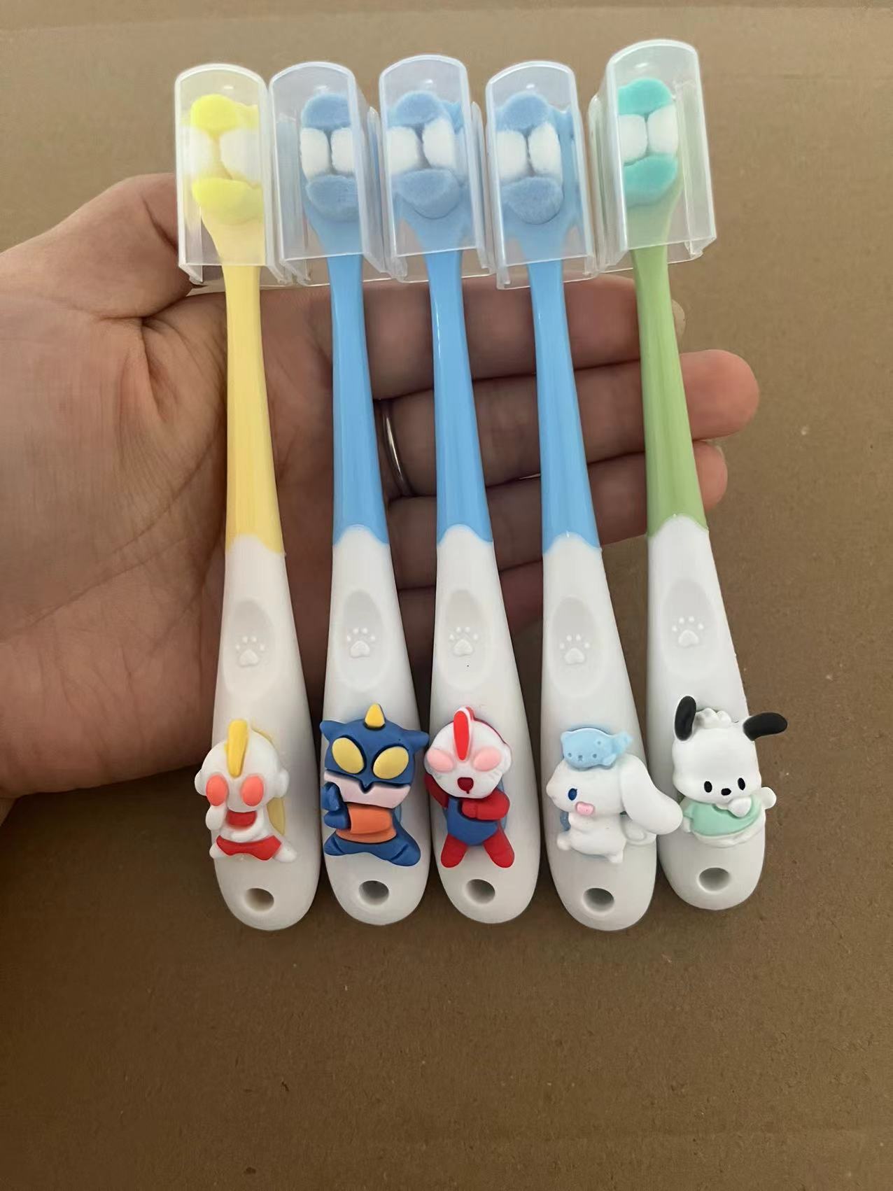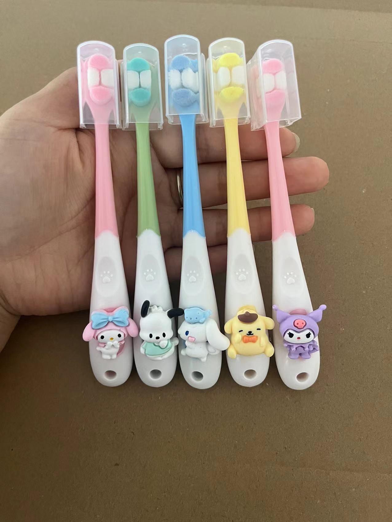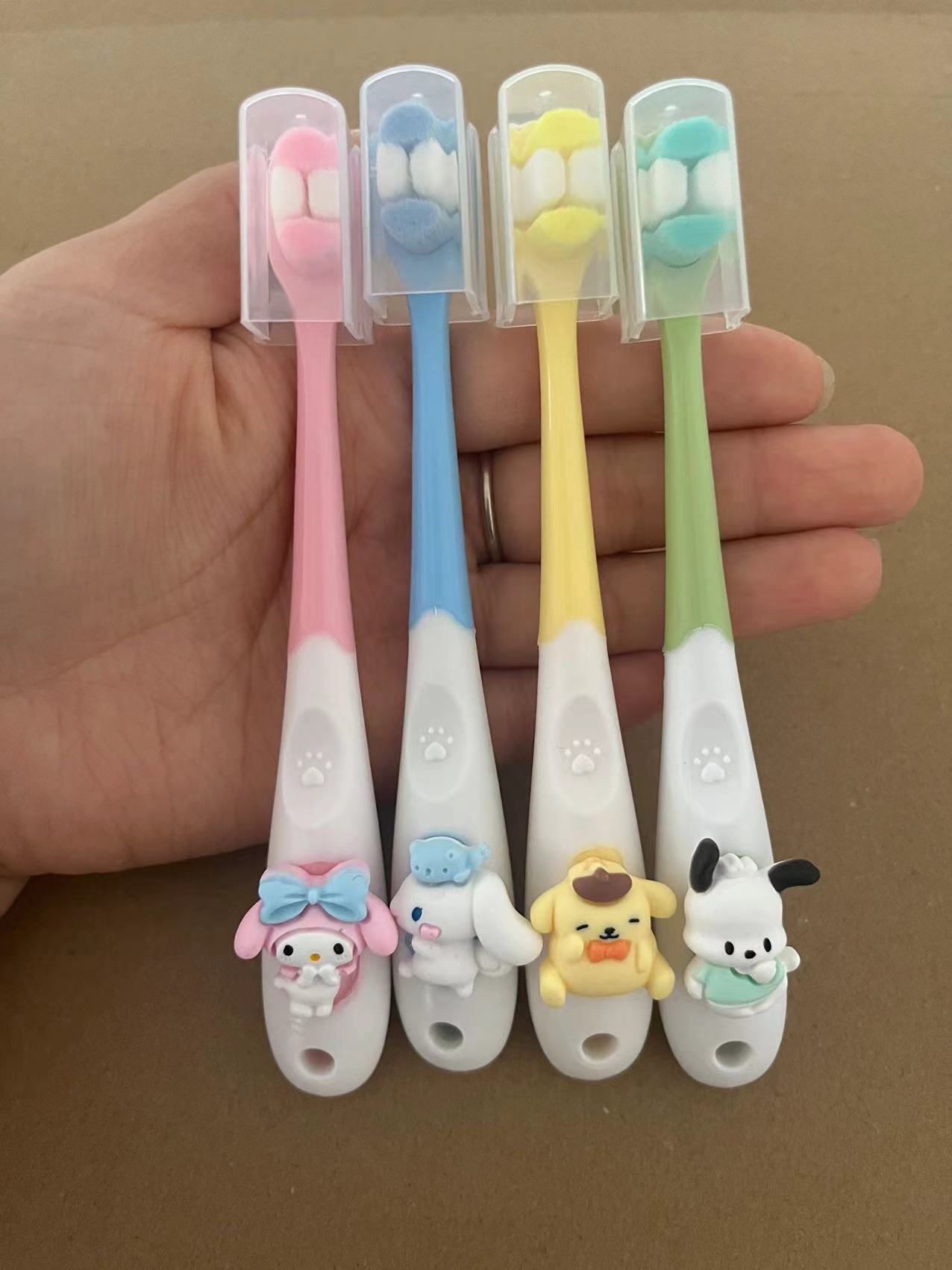 귀여운 산리오 어린이 칫솔 3-6-12 세 초보자 어린이 칫솔 만화 유구이 개 울트라 맨 소프트 브러쉬