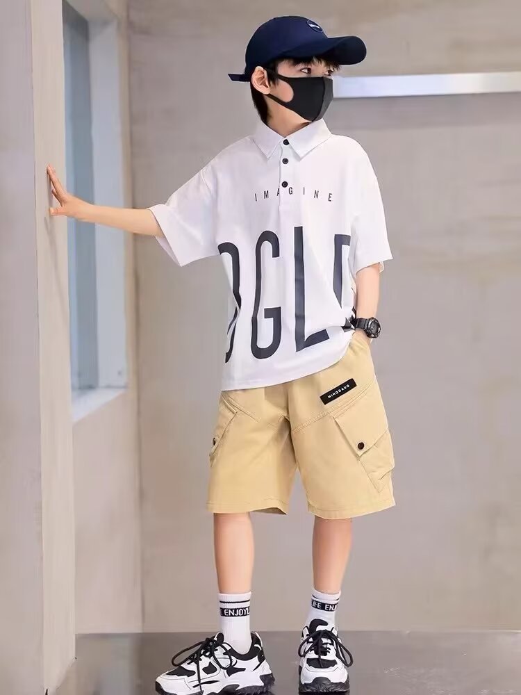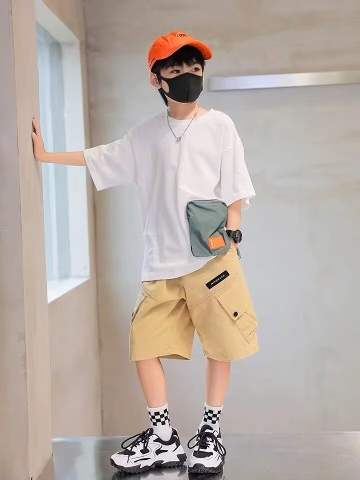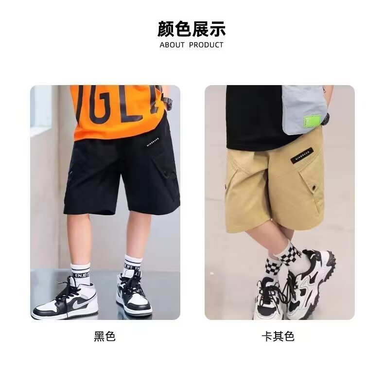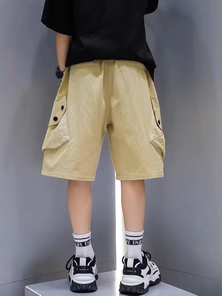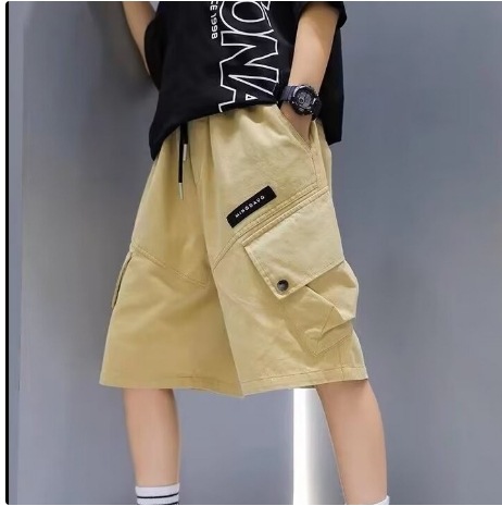 일본 카키 툴링 반바지 남학생의 여름 느슨한 5 점 바지 소년의 트렌디 한 브랜드 와이드 레그 캐주얼 미드 길이 바지스토어 가기