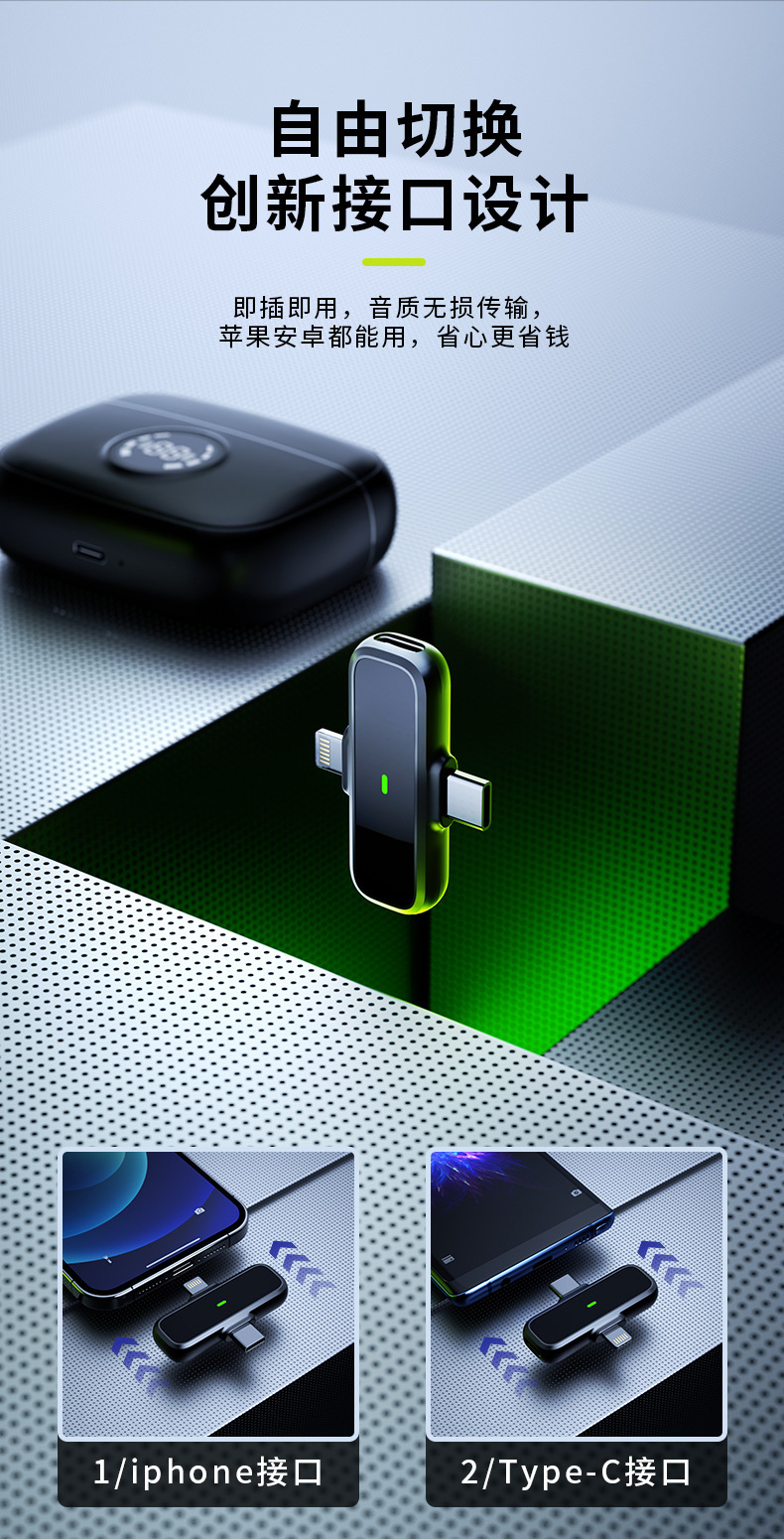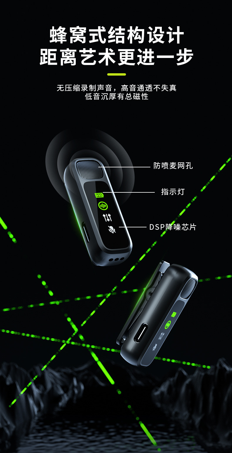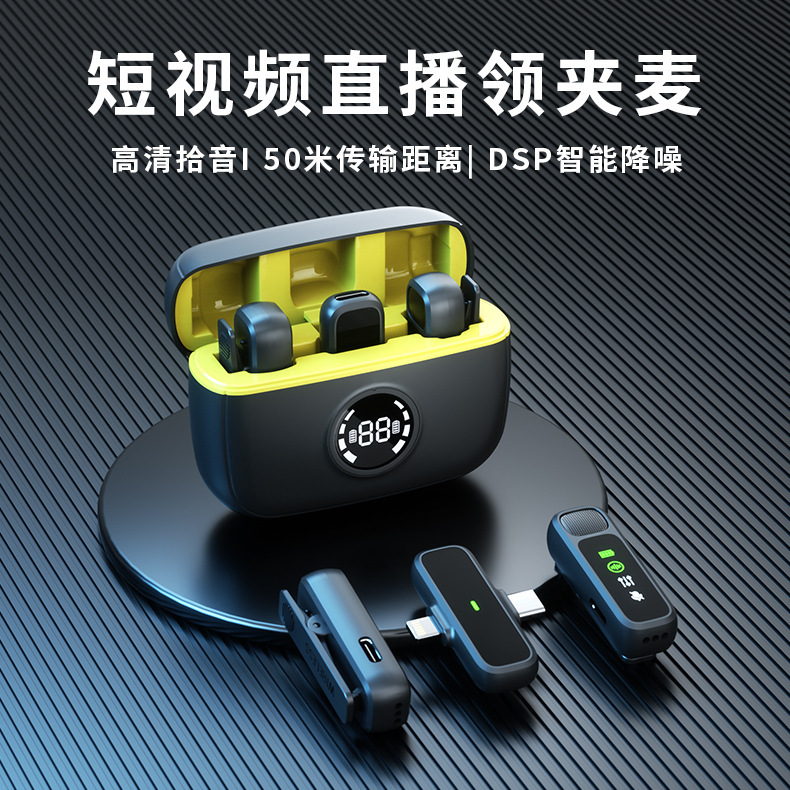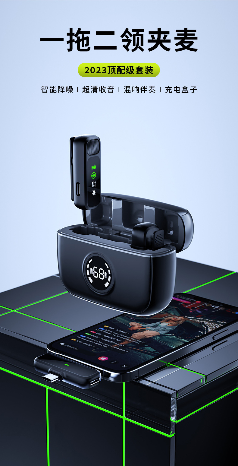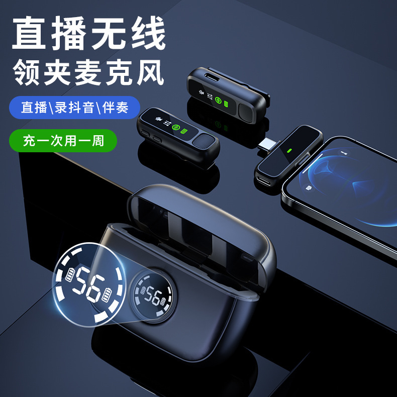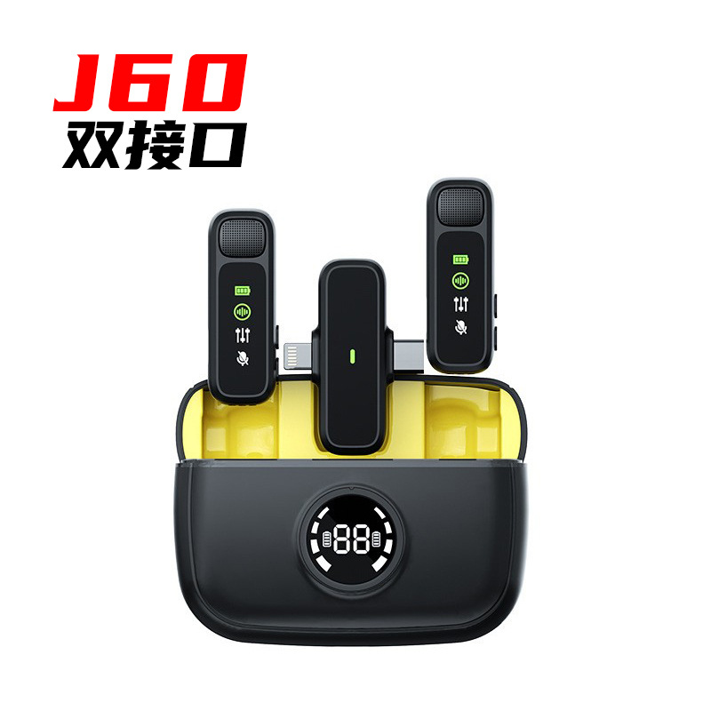 J60 개인 모드 듀얼 인터페이스 무선 칼라 클립 마이크 디지털 디스플레이 Vlog 녹화 라이브 비디오 작은 마이크