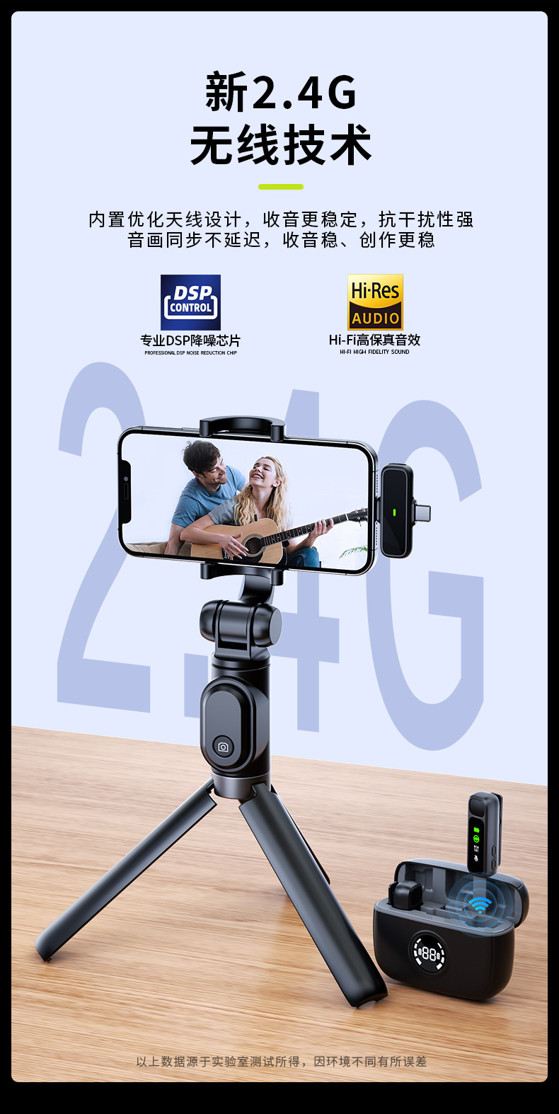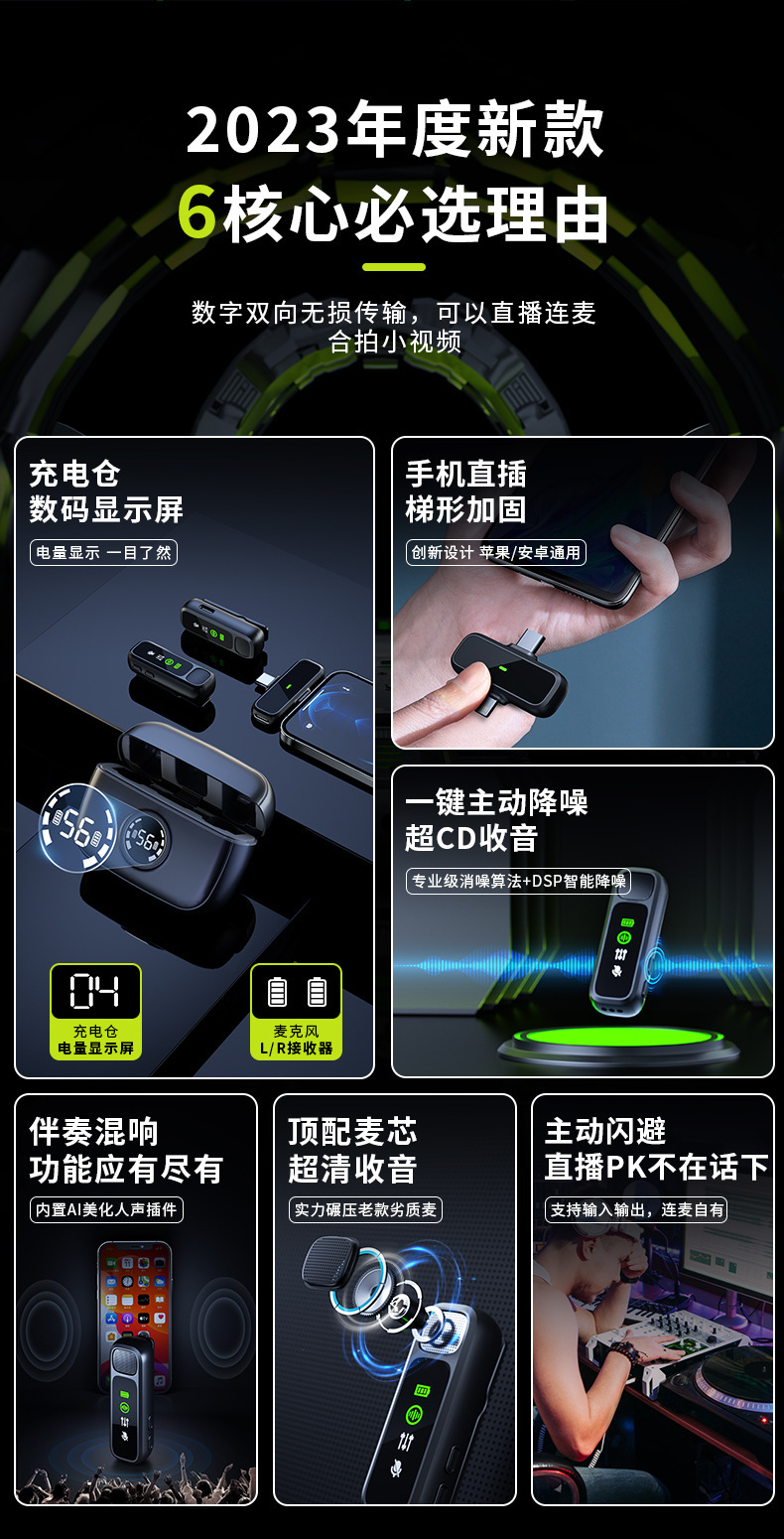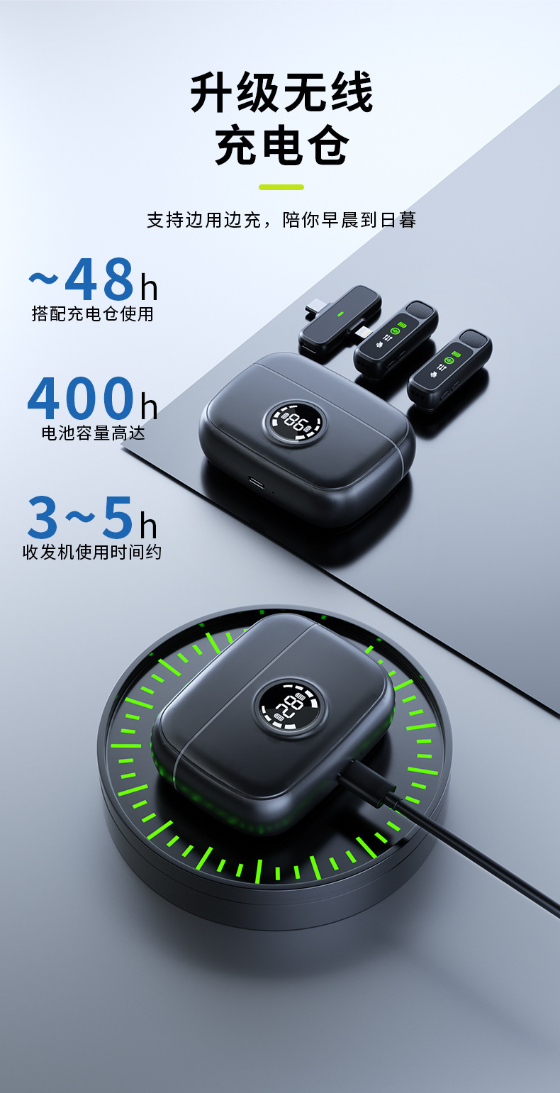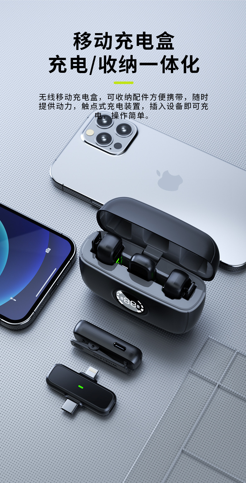 J60 개인 모드 듀얼 인터페이스 무선 칼라 클립 마이크 디지털 디스플레이 Vlog 녹화 라이브 비디오 작은 마이크