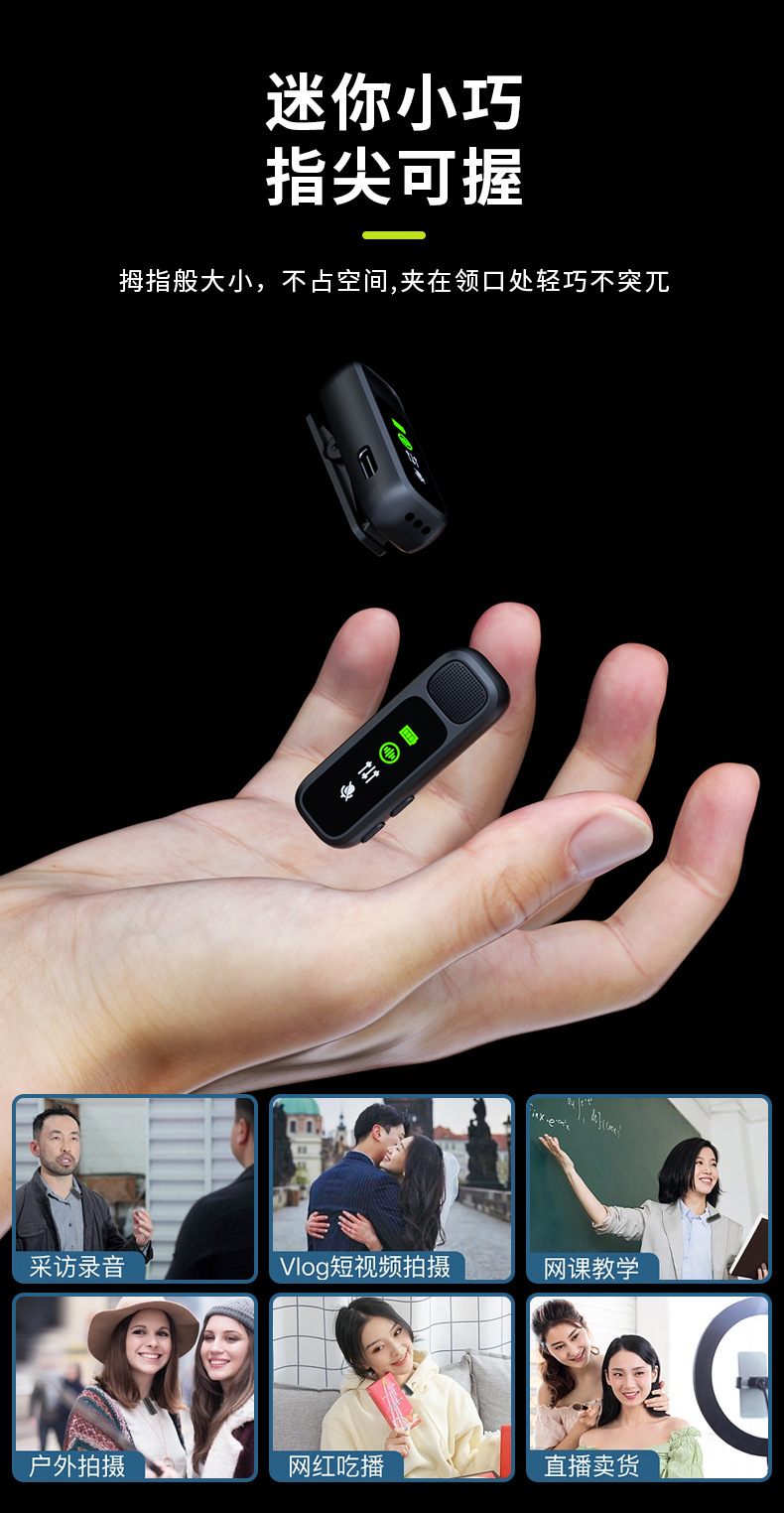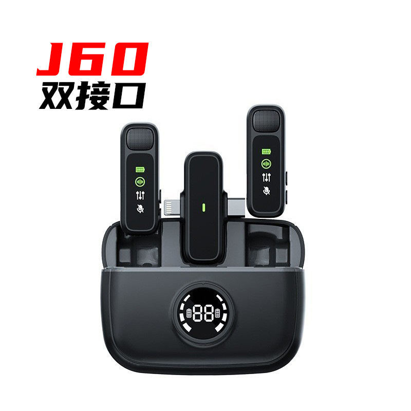 J60 개인 모드 듀얼 인터페이스 무선 칼라 클립 마이크 디지털 디스플레이 Vlog 녹화 라이브 비디오 작은 마이크스토어 가기