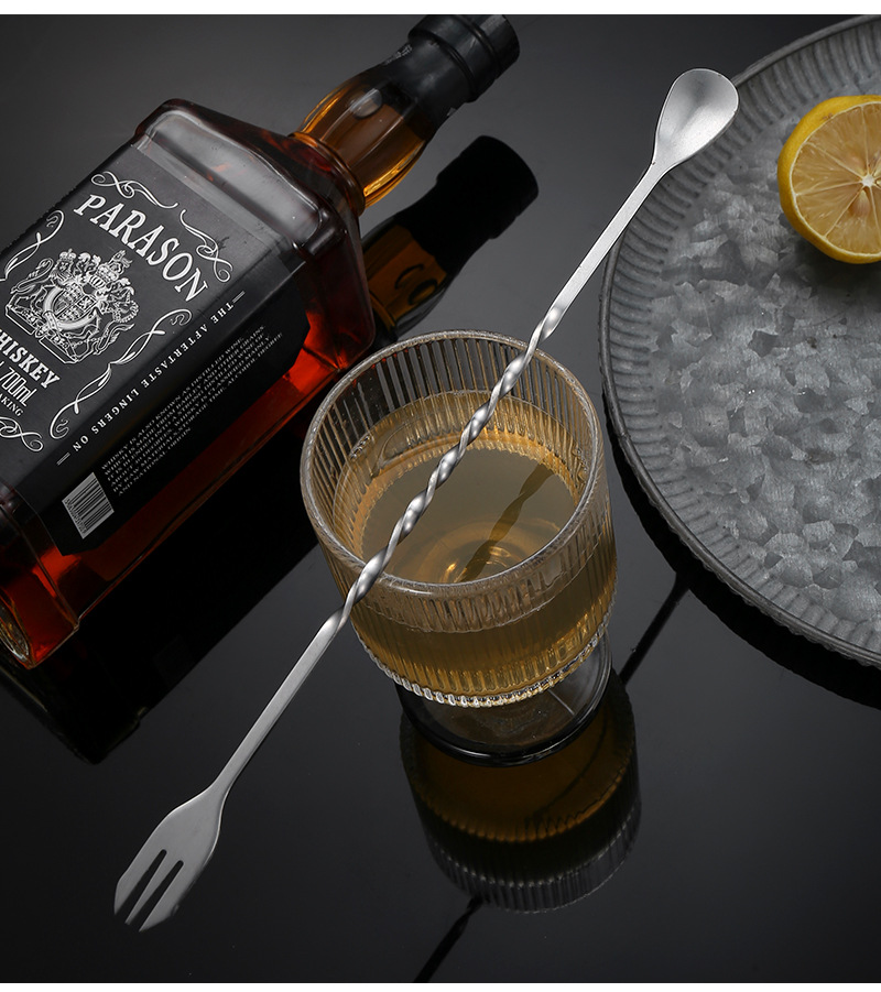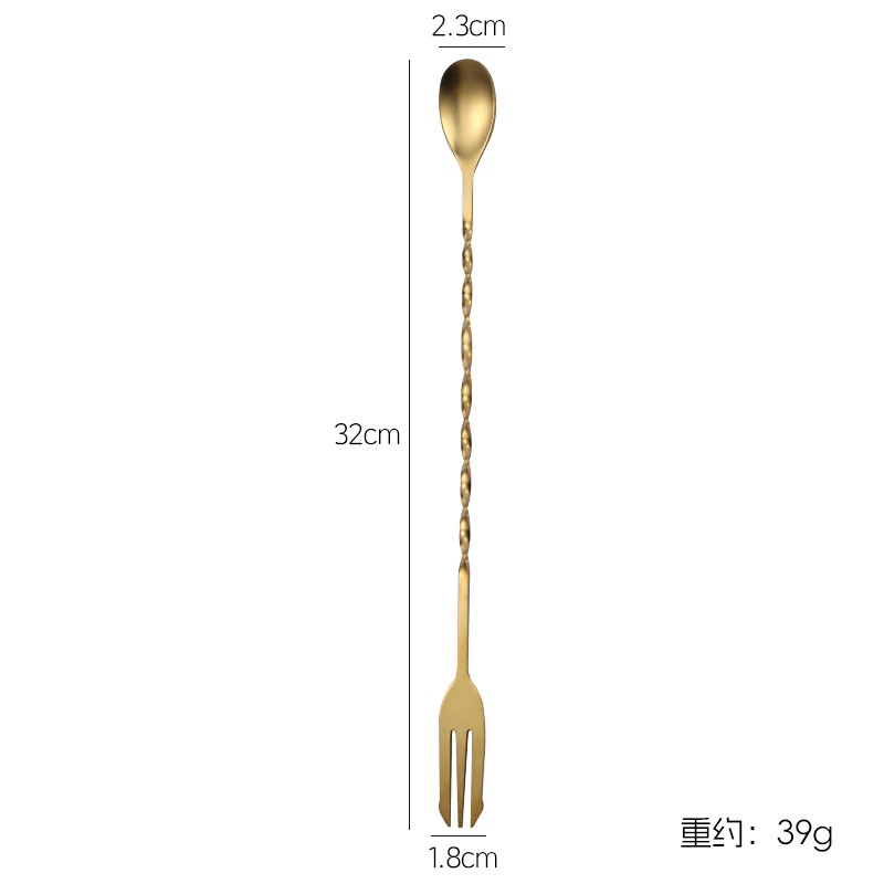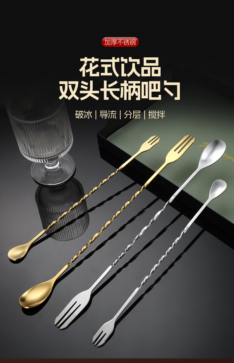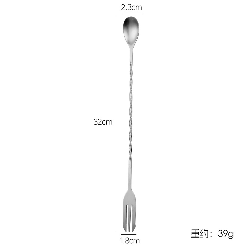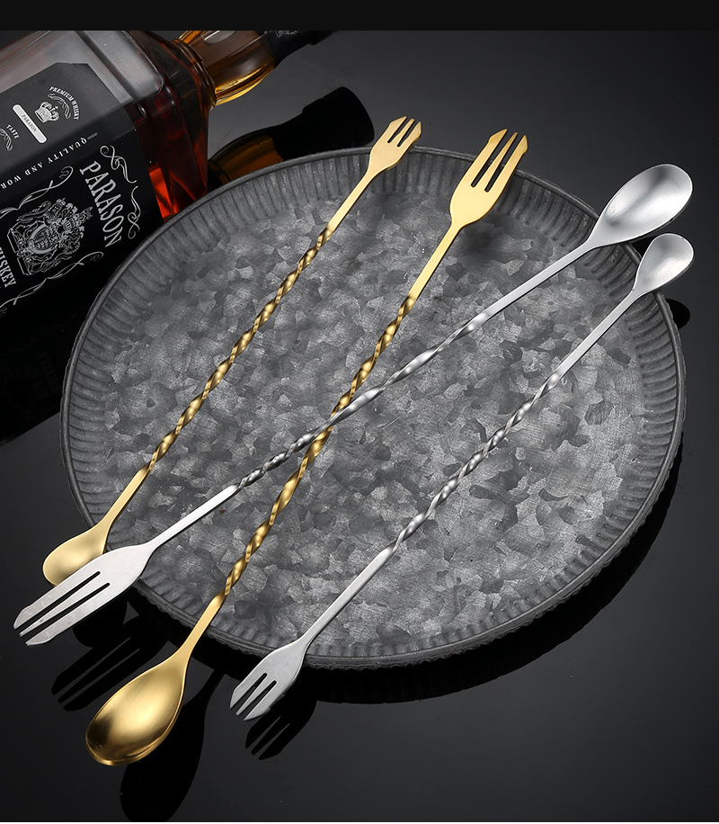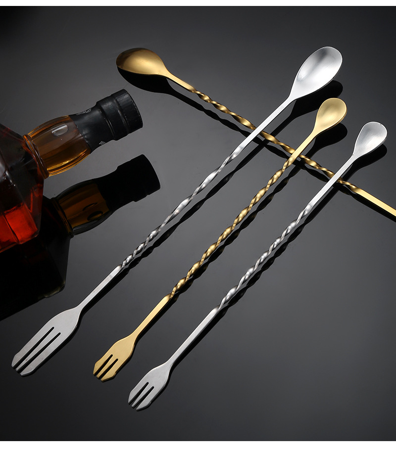 스테인레스 스틸 긴 핸들 바 숟가락 변조 칵테일 우유 차 커피 혼합 숟가락 나선형 더블 스푼 포크 이중 목적 혼합 숟가락