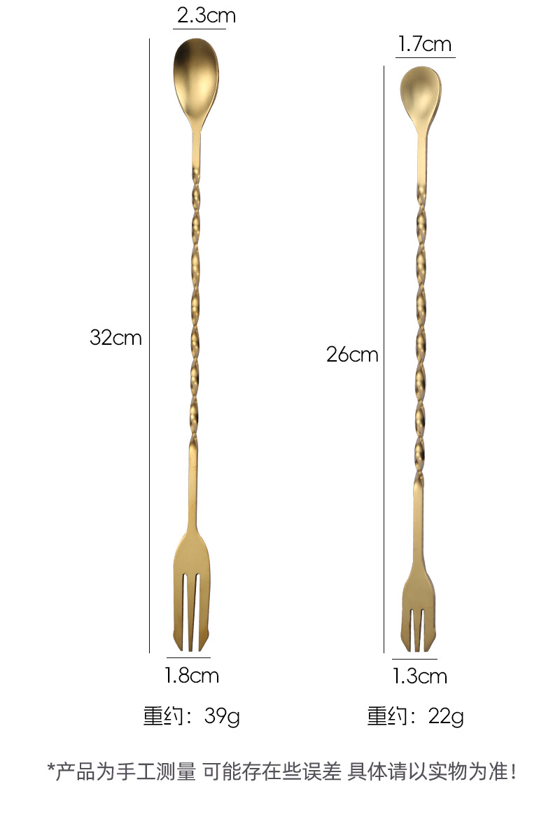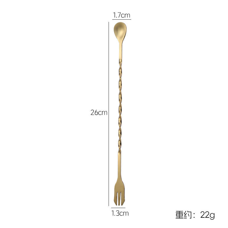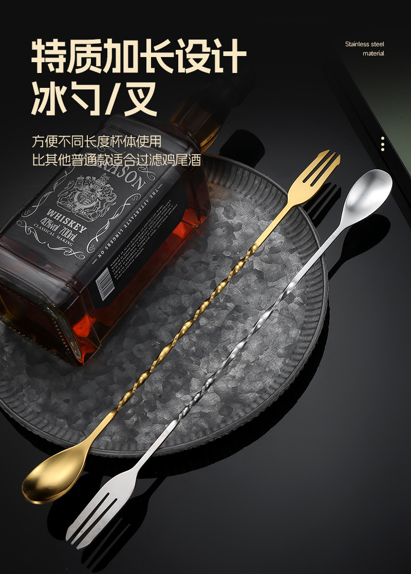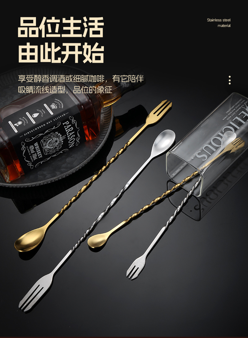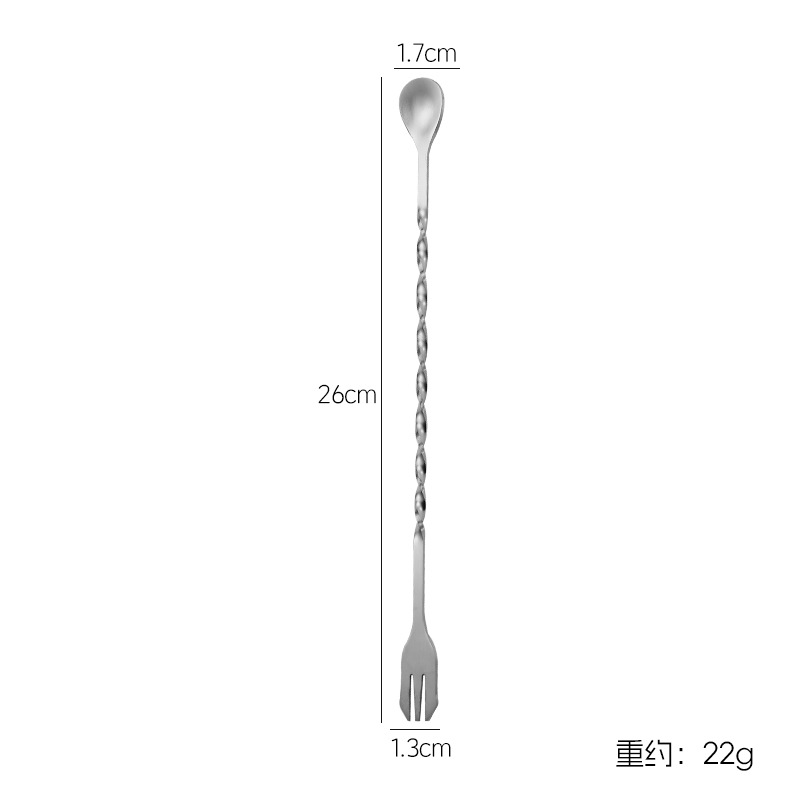스테인레스 스틸 긴 핸들 바 숟가락 변조 칵테일 우유 차 커피 혼합 숟가락 나선형 더블 스푼 포크 이중 목적 혼합 숟가락