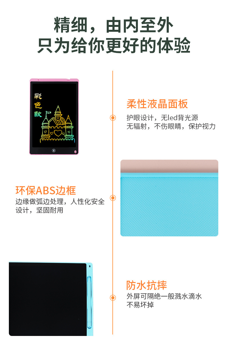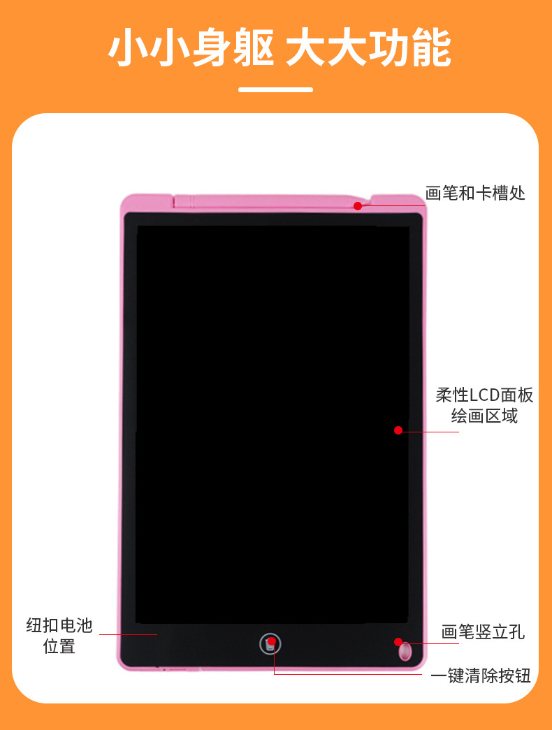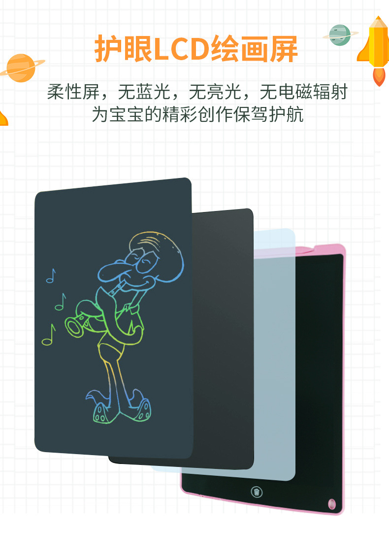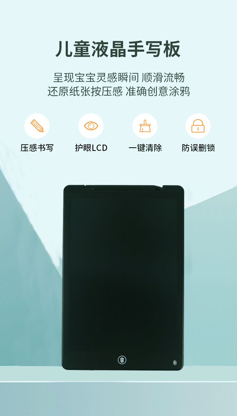 12inch LCD 어린이 그림판 PVC 필기판 전자 단색 필기 LCD 낙서판 크로스보더 교육용스토어 가기