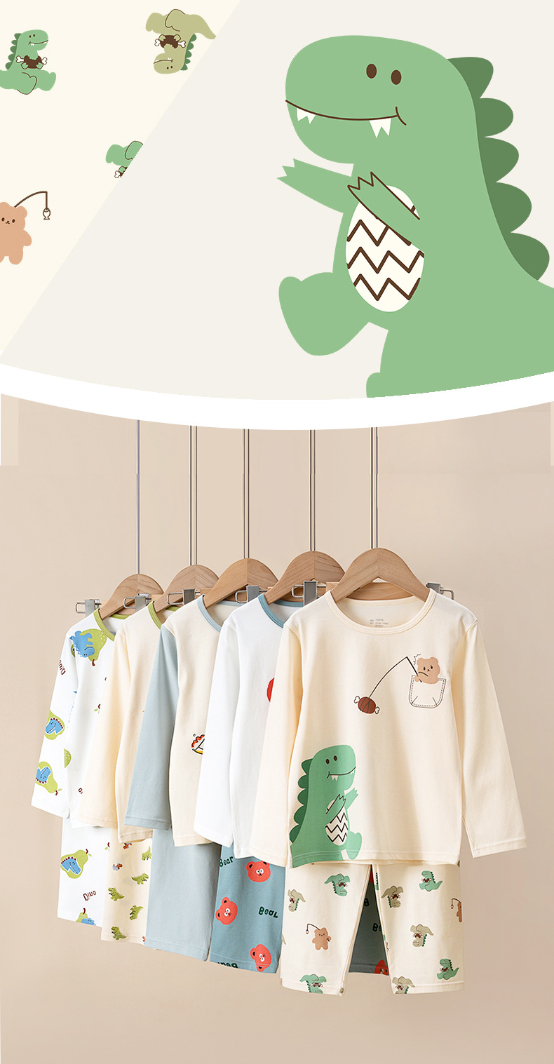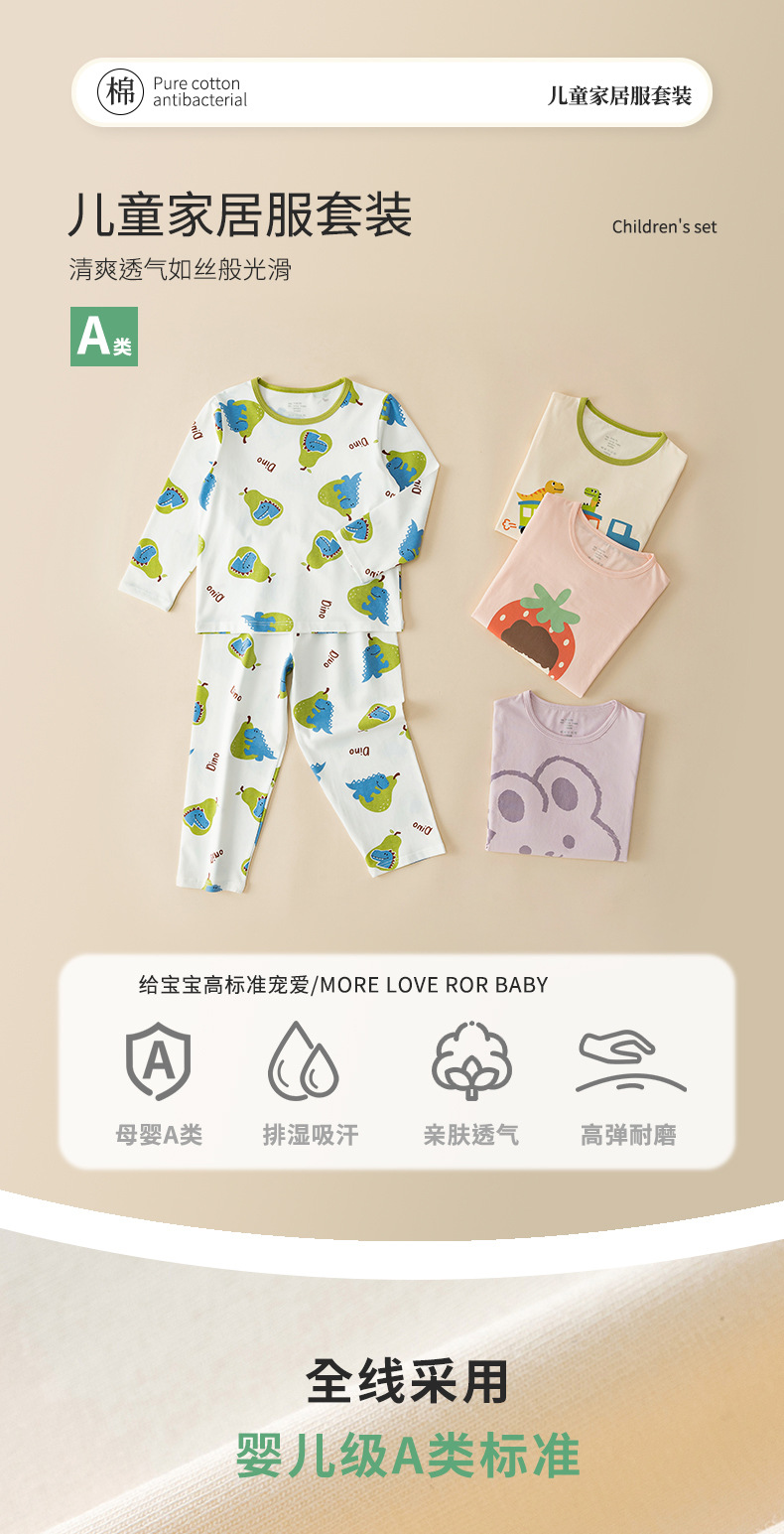어린이 순면 잠옷, 남아용 A급 홈웨어, 아동복 세트, 여아용 한국식 얇은 에어컨 의류스토어 가기