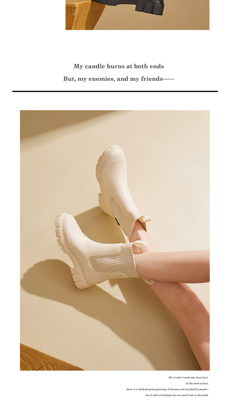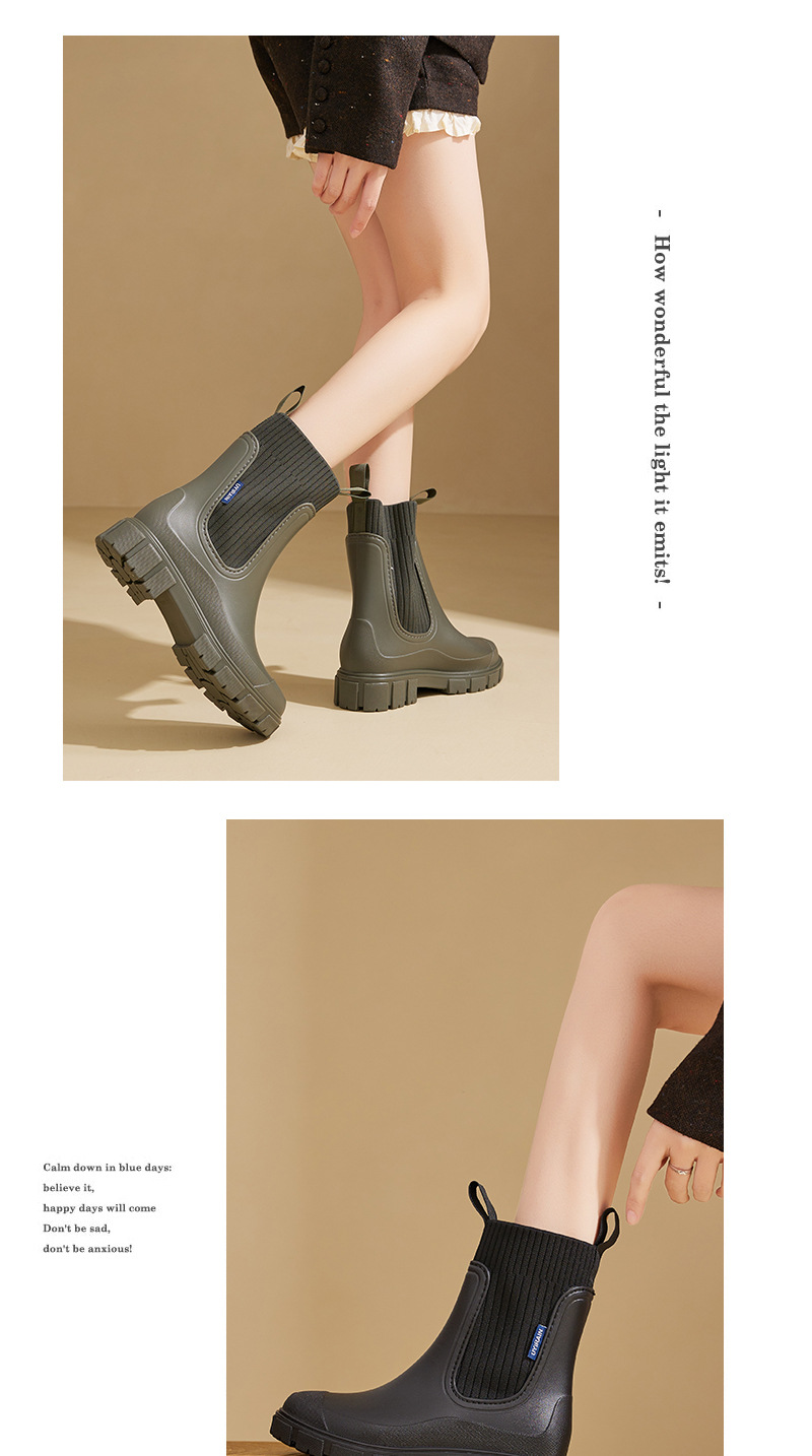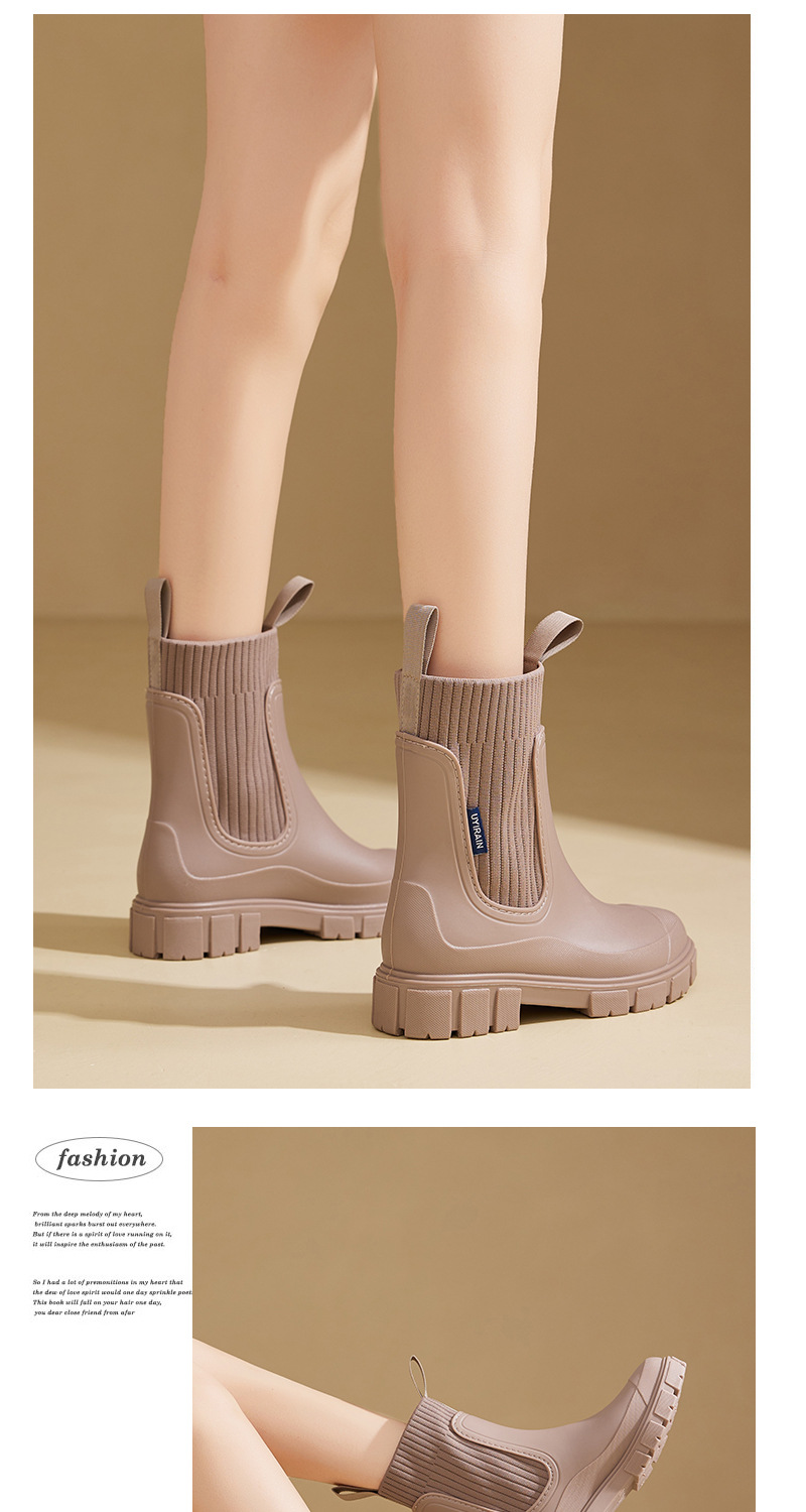 여성용 탄성 밴드 레인 부츠 미드 튜브 레인 부츠 내마모성 방수 미끄럼 방지 비 레인 실외는 미드 튜브 부츠를 착용 할 수 있습니다.