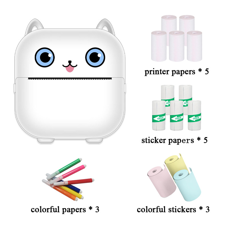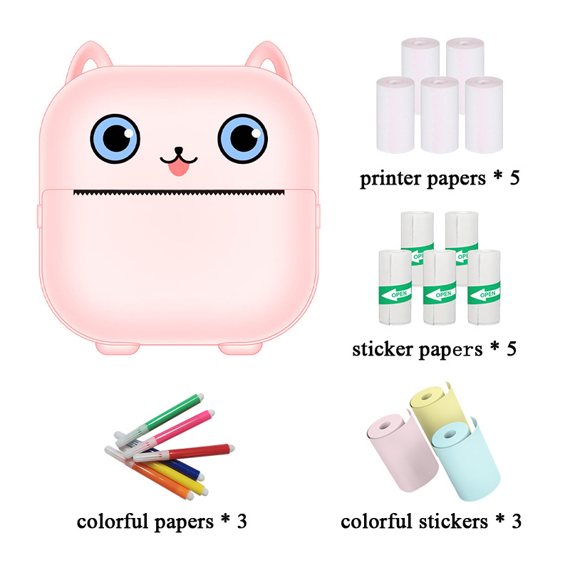 • 핑크 (인쇄 용지 5 롤, 접착 용지 5 롤, 컬러 용지 3 롤) 컬러 펜 제공