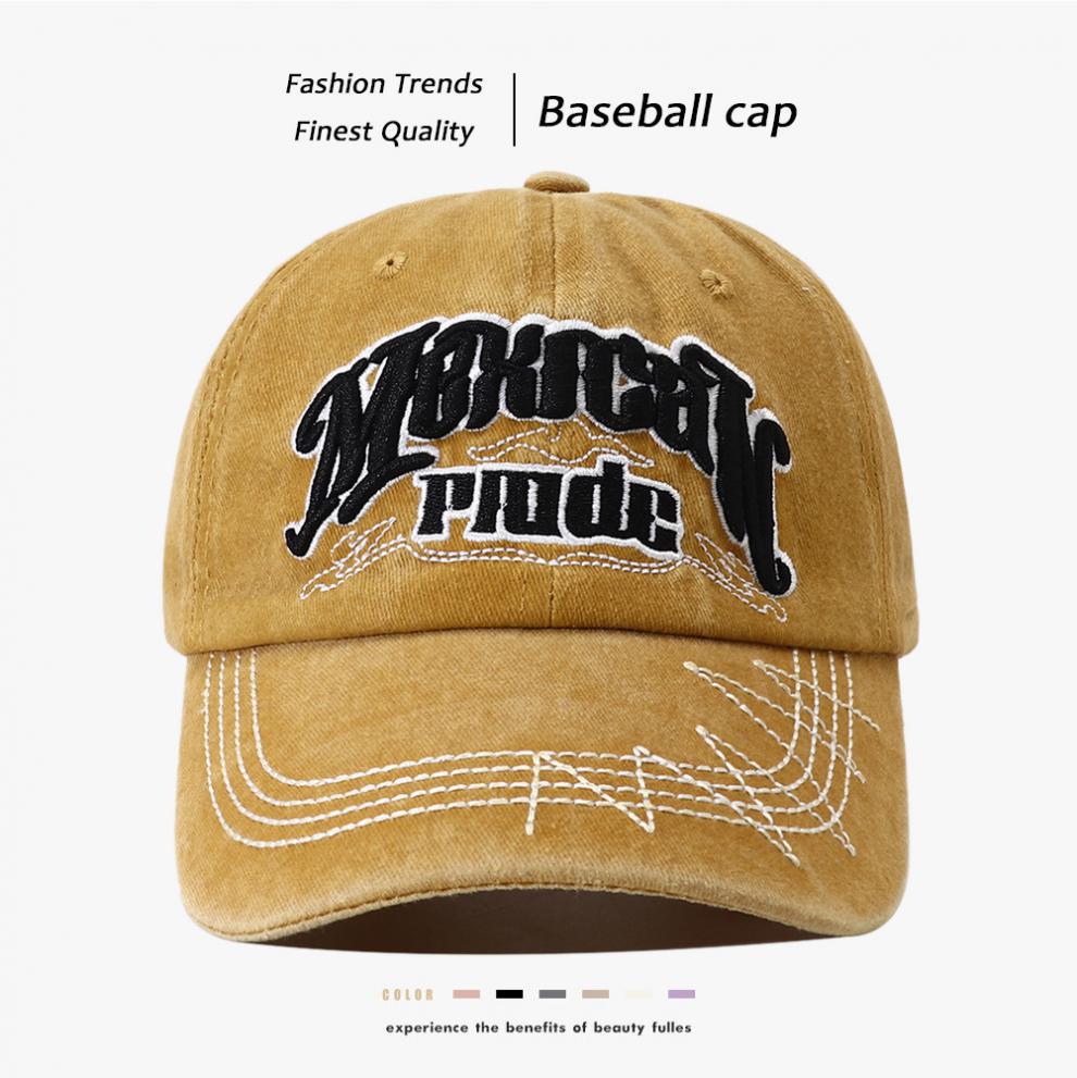 Jichu Hat 남자 트렌디 한 남자 올매치 복고풍 낡은 모자 여자 하이 엔드 얼굴 쇼페이스 작은 편지 야구