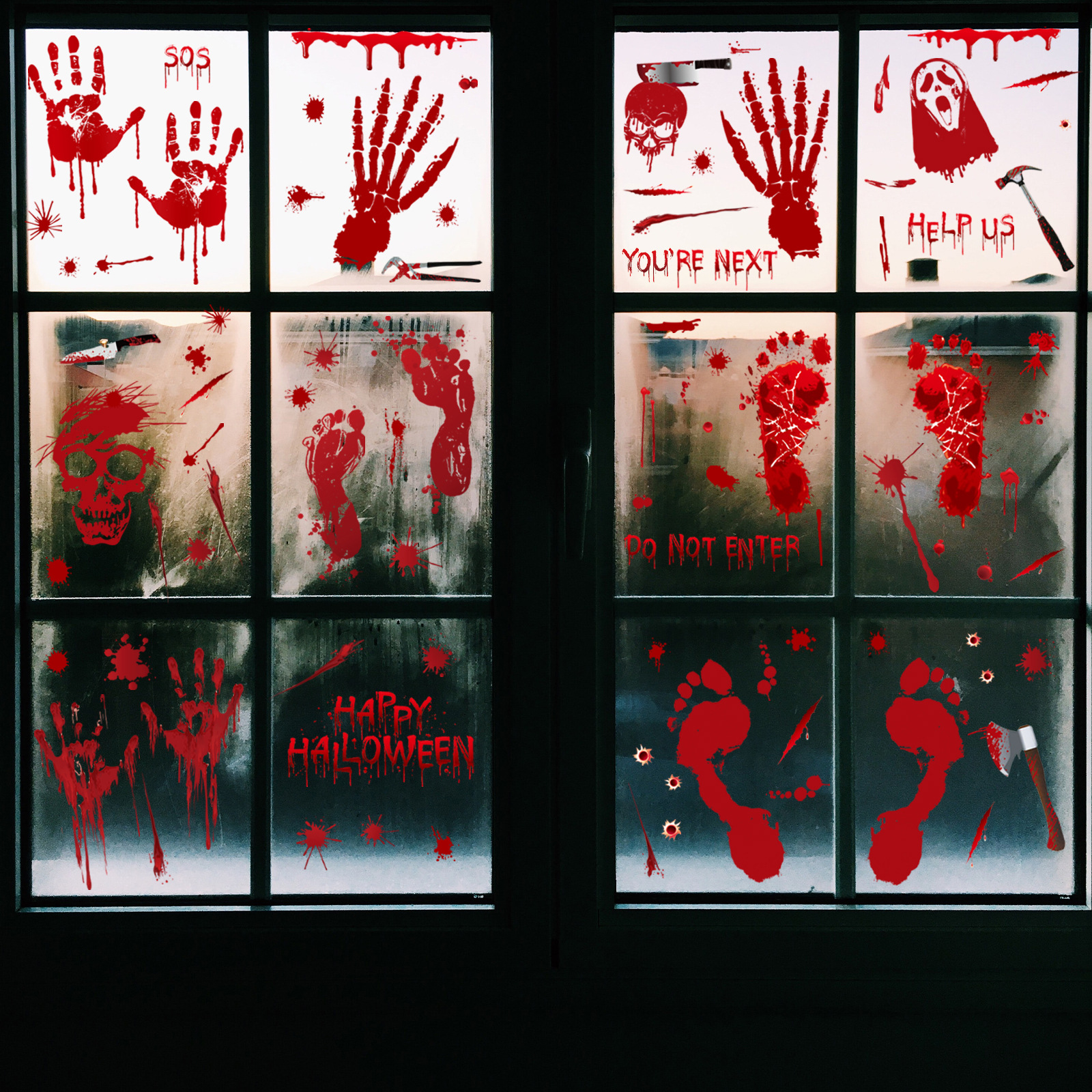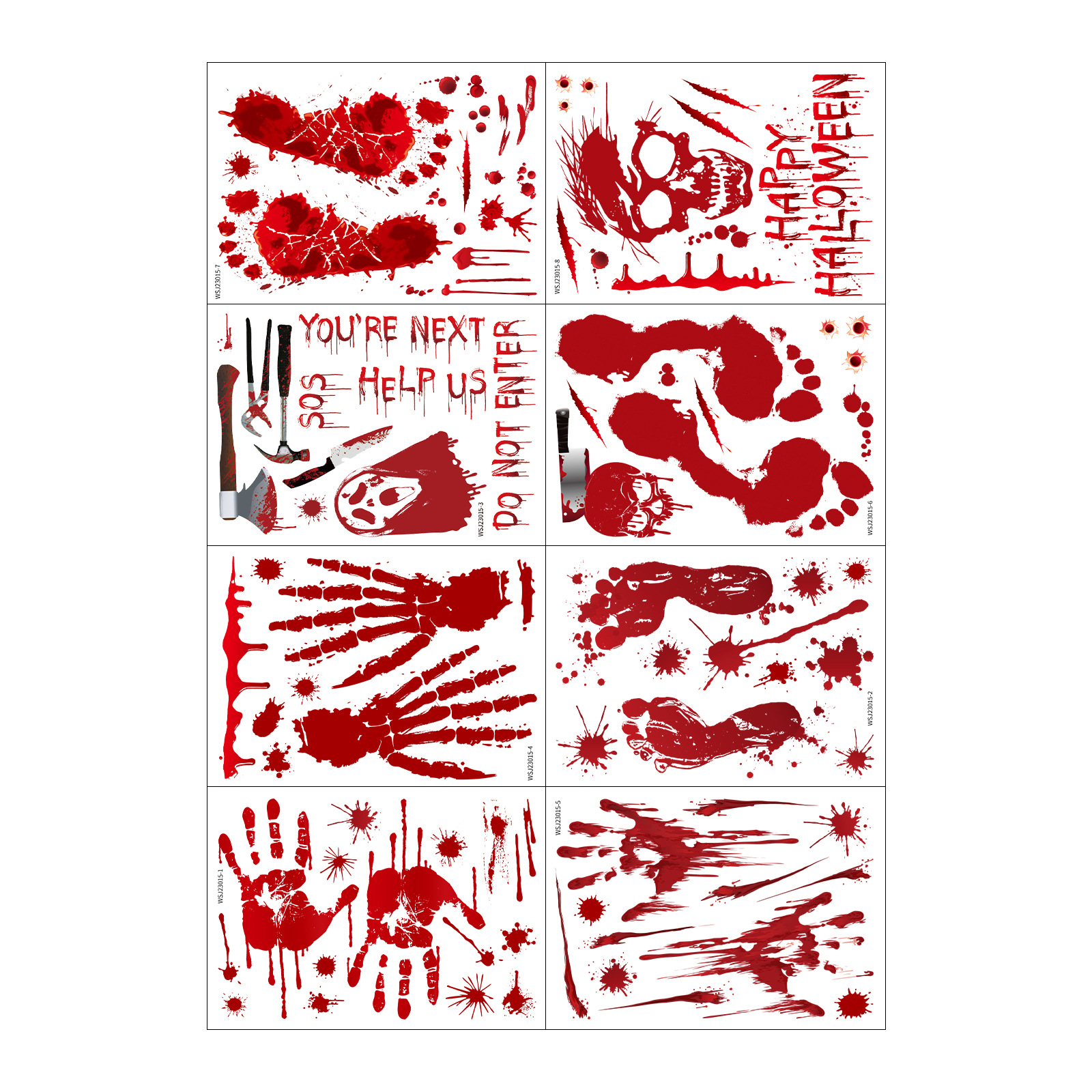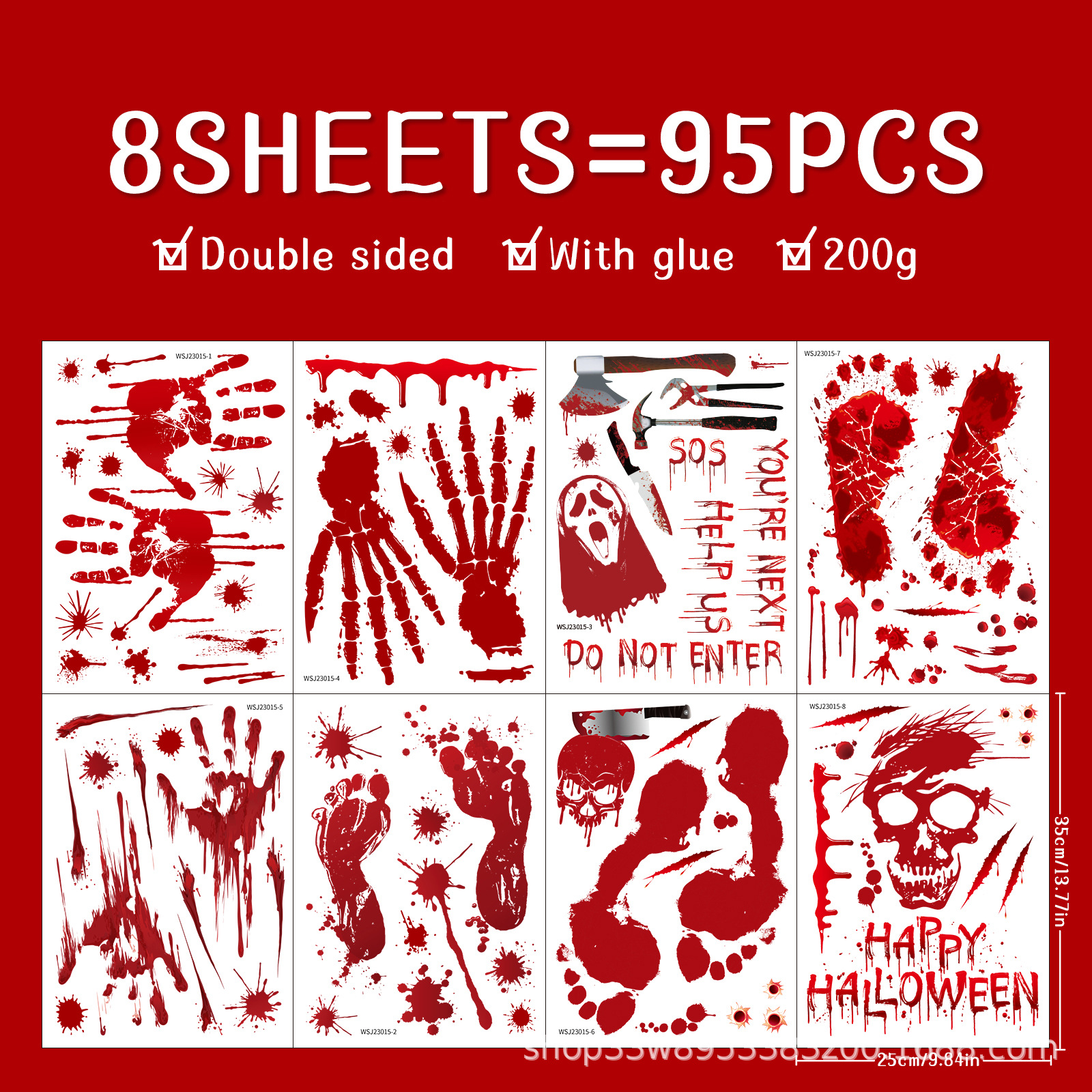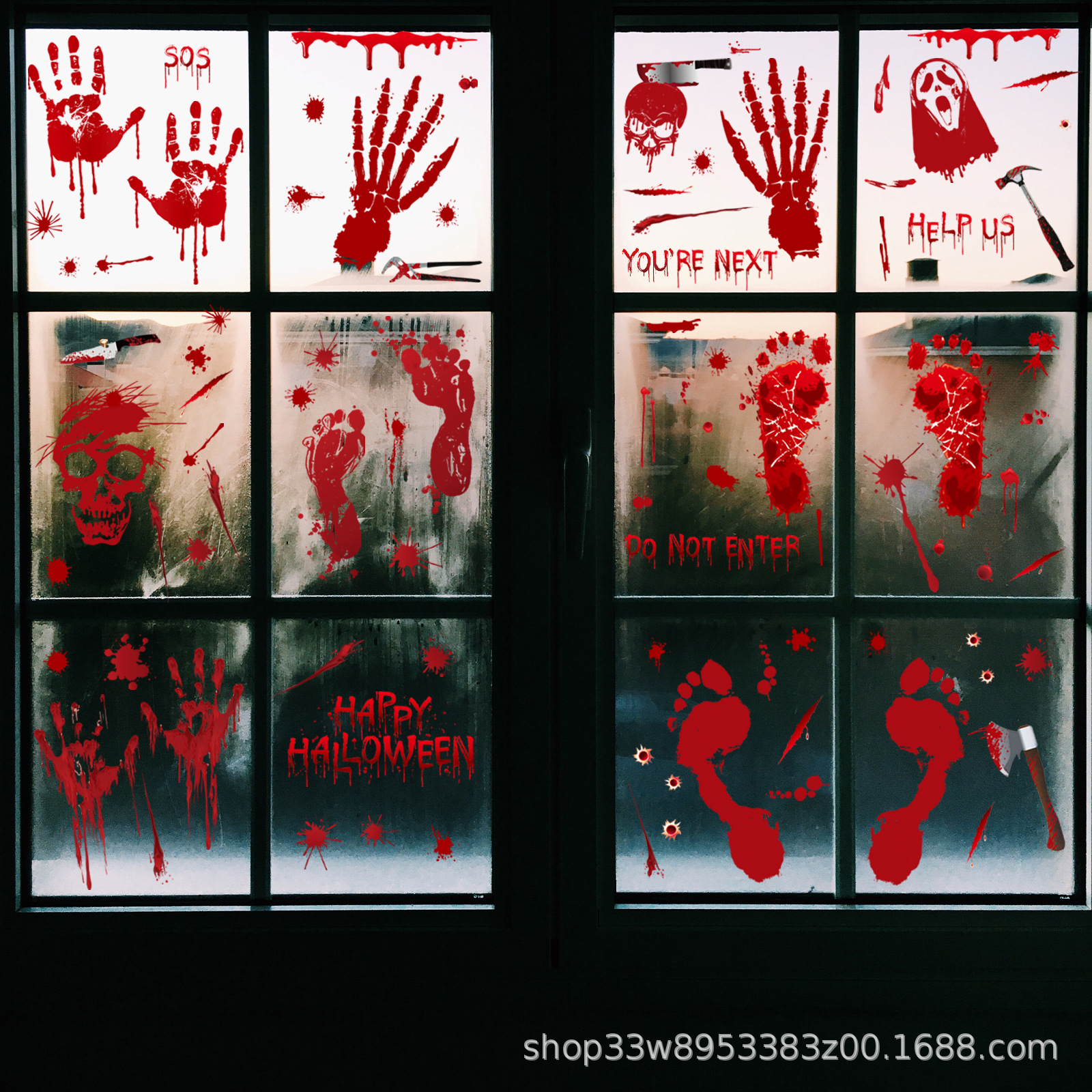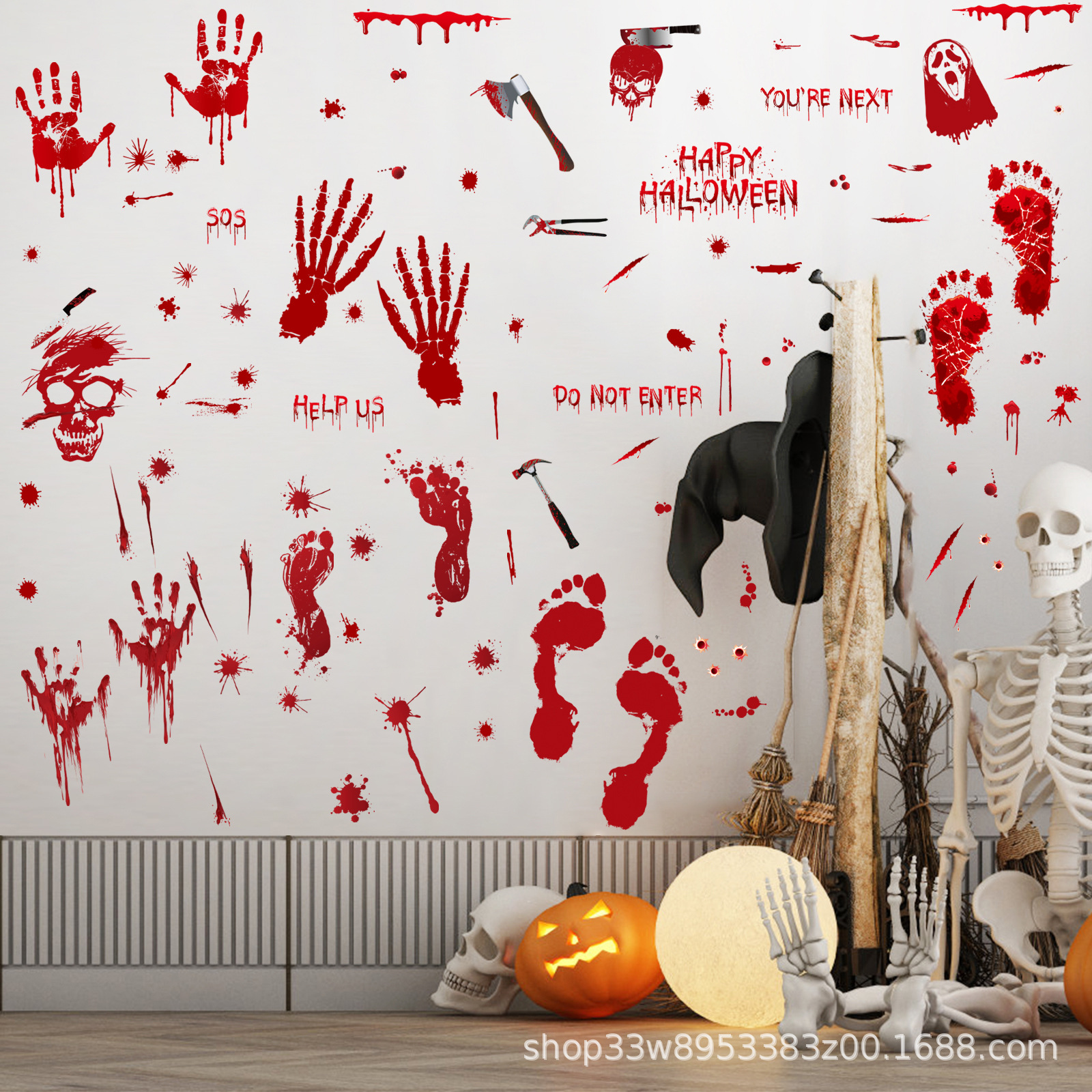 할로윈 장식 용품 혈액 손자국 발자국 자체 접착 벽 스티커 두개골 도끼 공포 장면 장식 스티커스토어 가기
