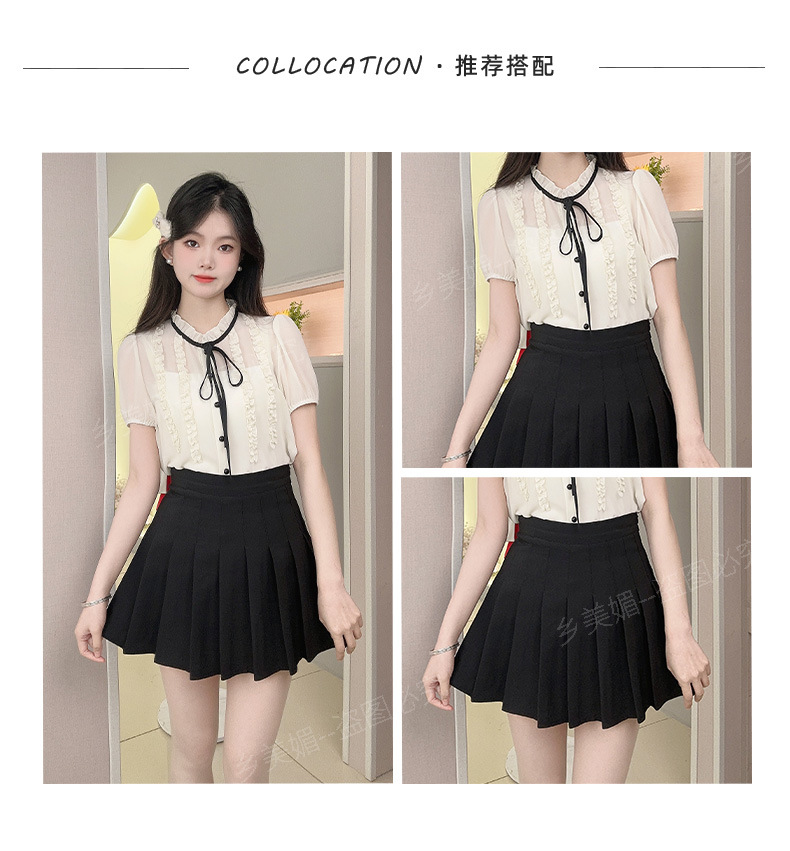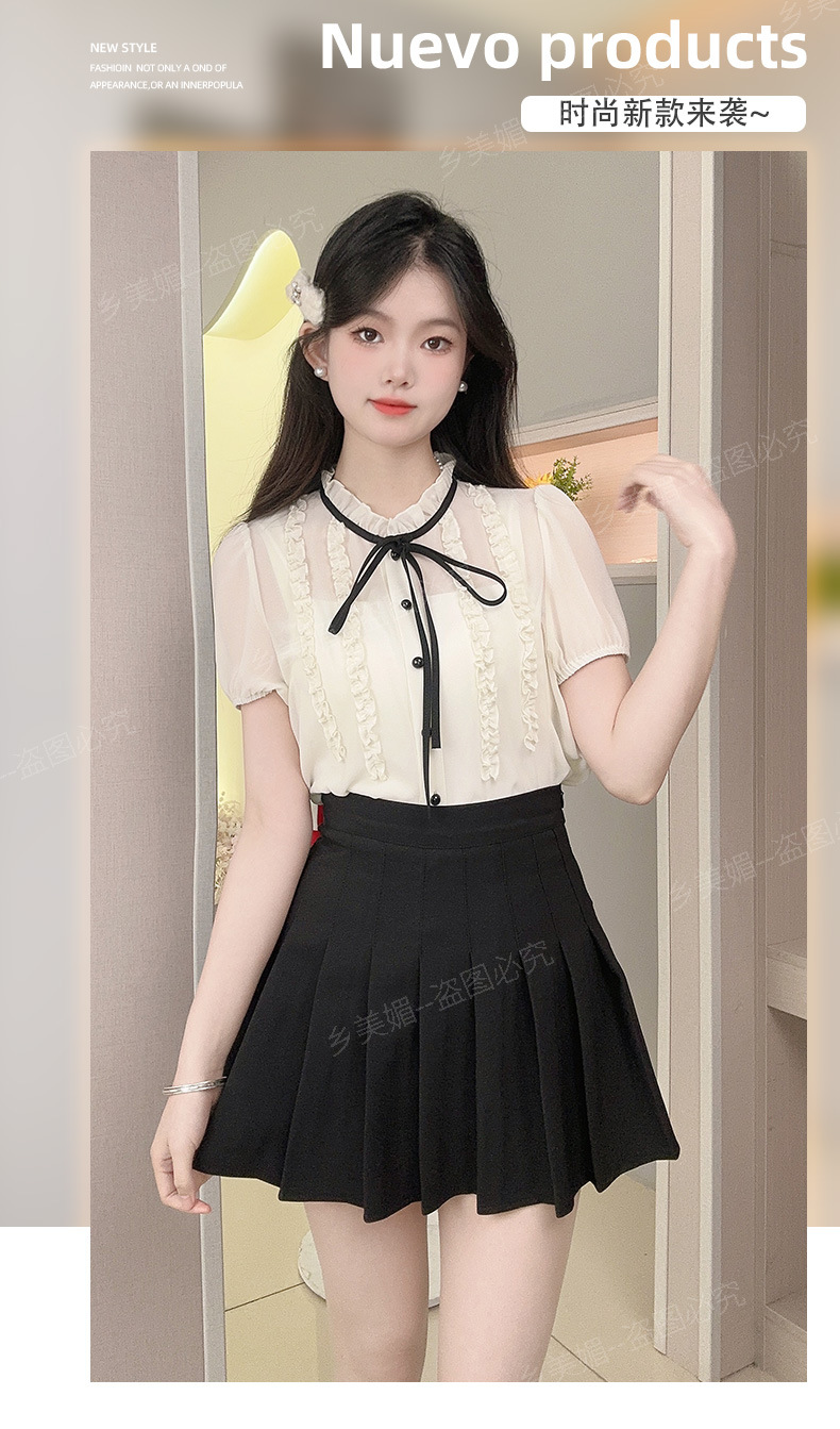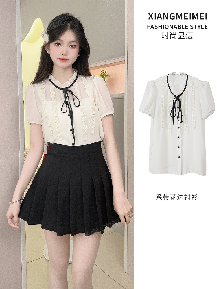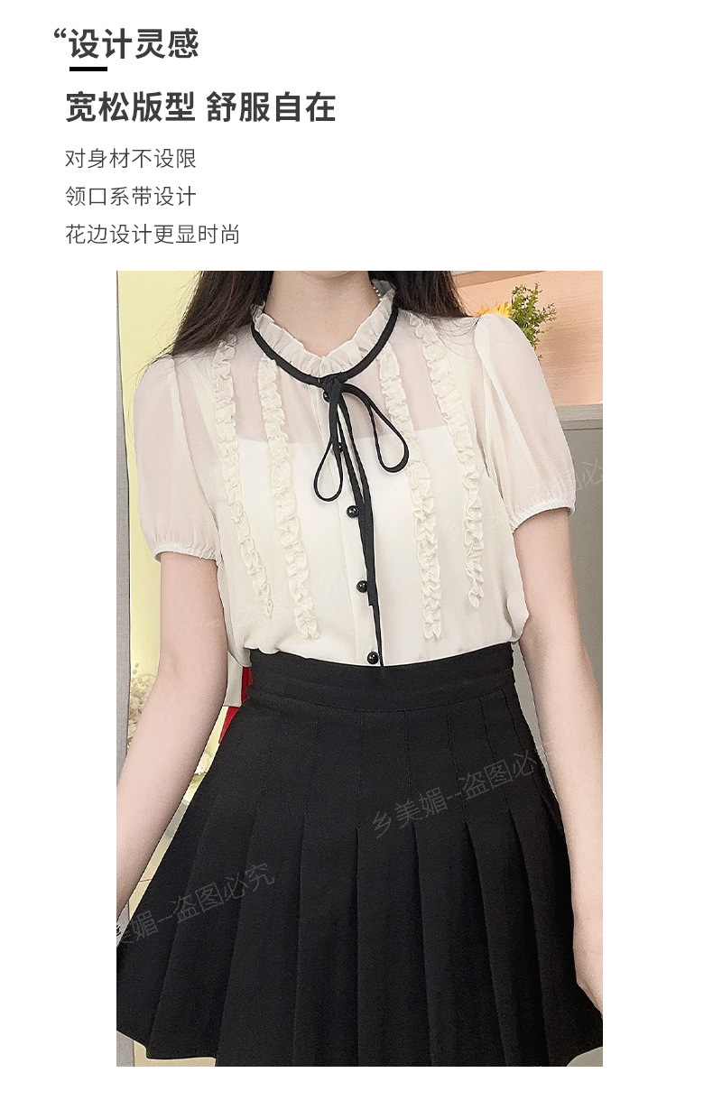 샹 메이 메이 우드 이어 엣지 쉬폰 셔츠 여성용 새 퍼프 슬리브 쉬폰 탑 여자 여름 스위트 칙 3004 셔츠스토어 가기