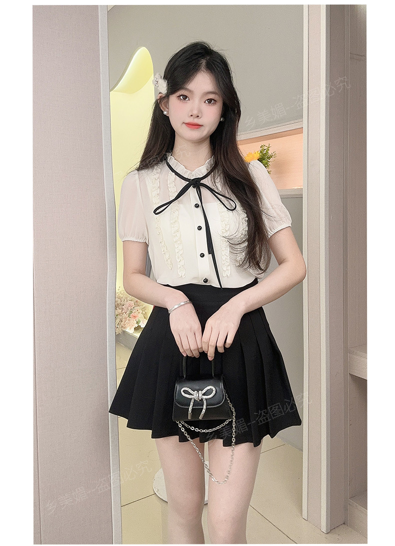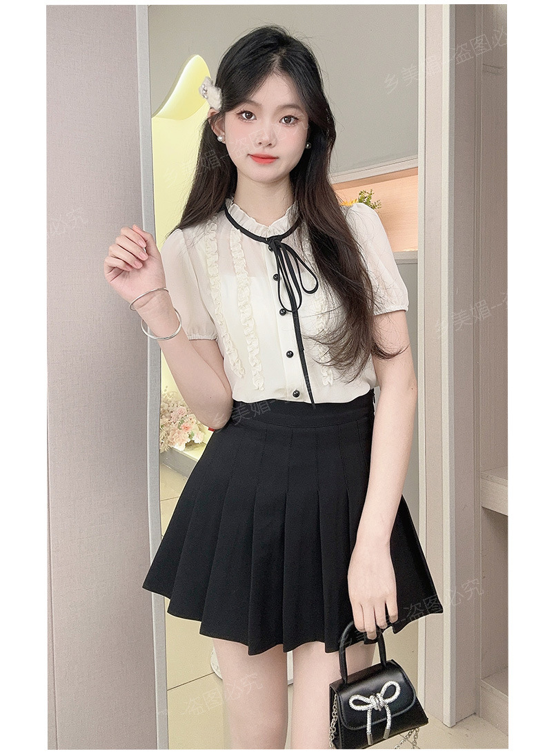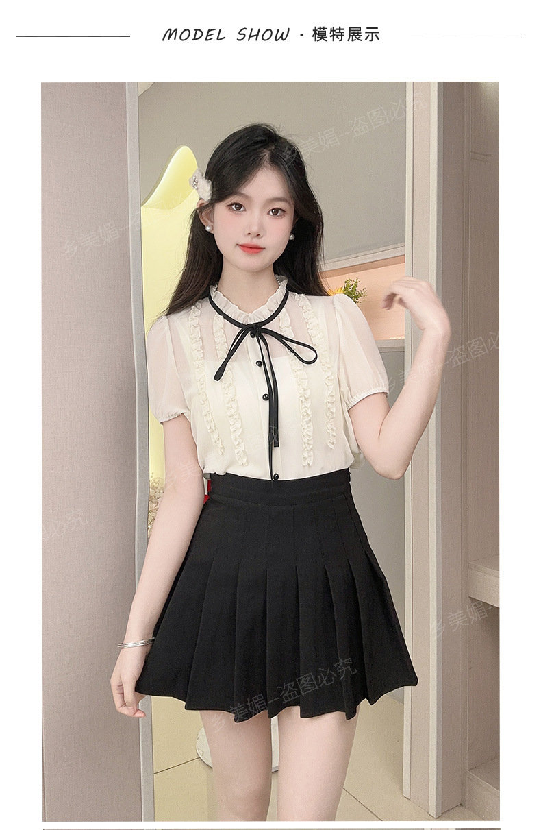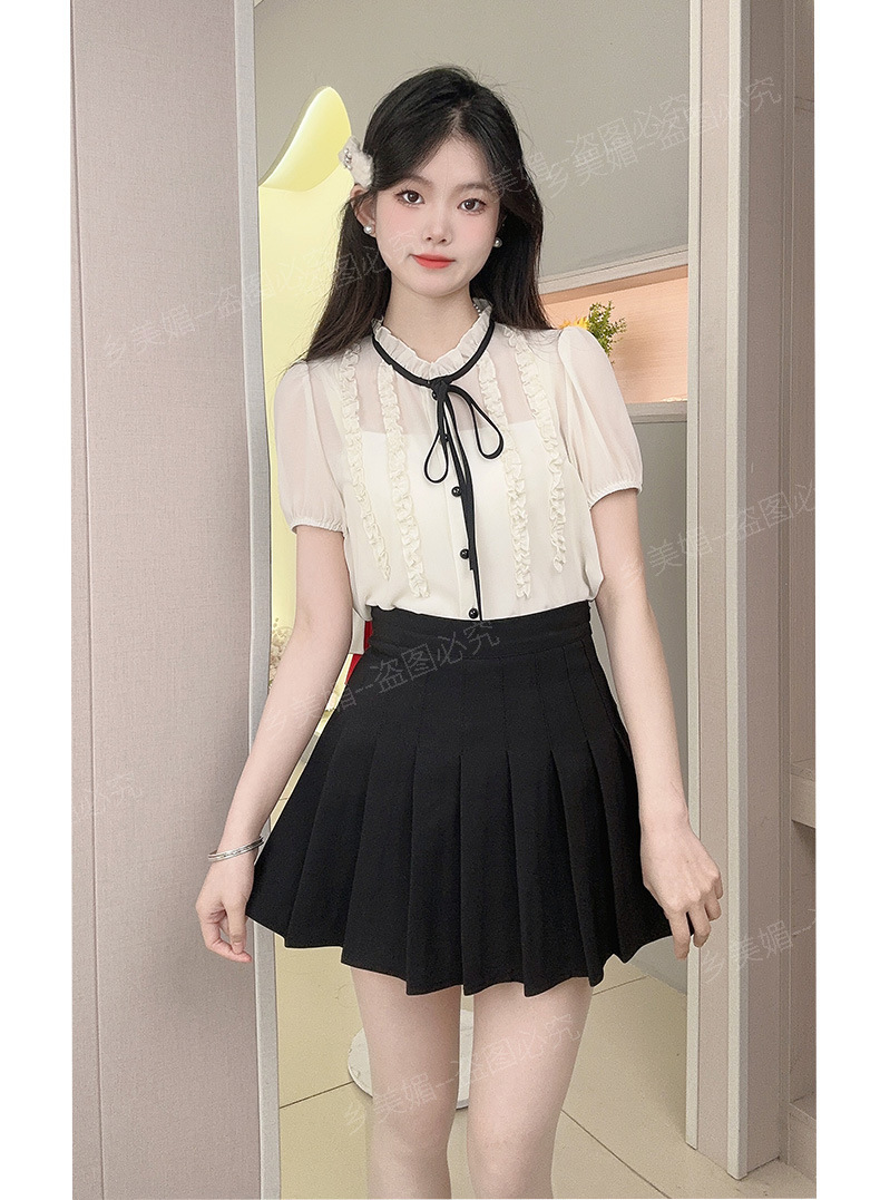 샹 메이 메이 우드 이어 엣지 쉬폰 셔츠 여성용 새 퍼프 슬리브 쉬폰 탑 여자 여름 스위트 칙 3004 셔츠스토어 가기