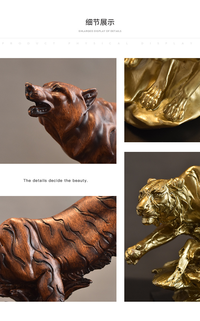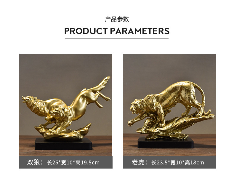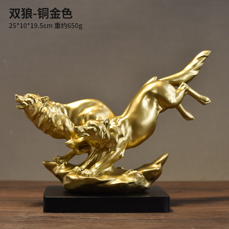 국경 간 미국 더블 늑대 동물 수지 공예 장식품 홈 호랑이 사자 대형 야수 데스크탑 장식