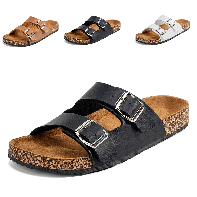남성용 슬리퍼, 여성용 복고풍 하프 슬리퍼, 두꺼운 밑창 야외 착용 더블 버클 버켄스탁 신발, 사이즈 36-45