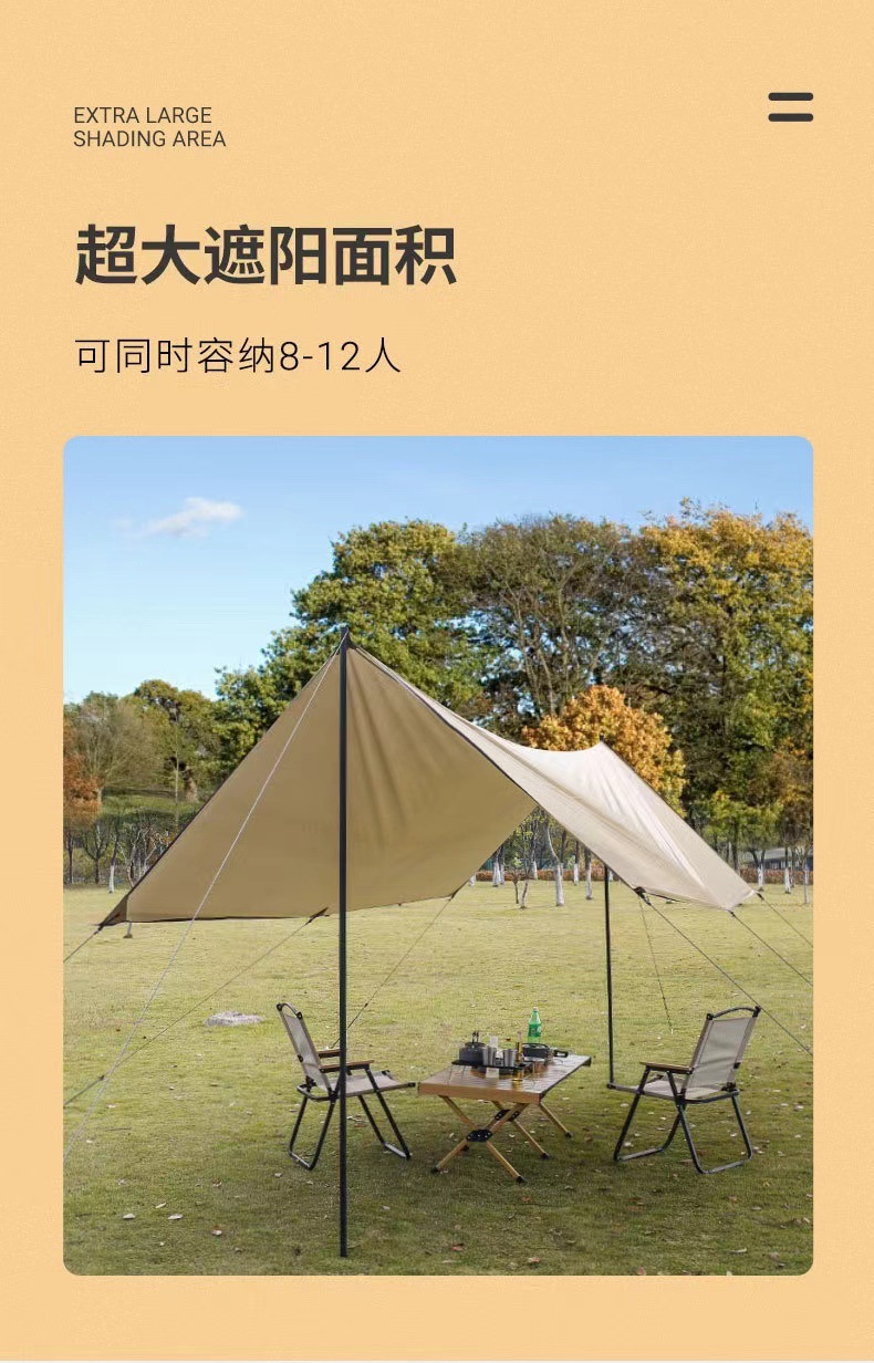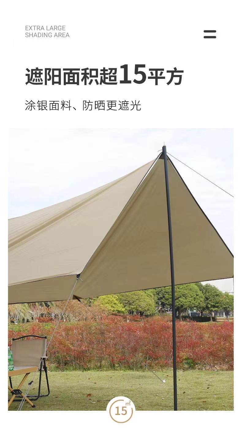 오픈 필드 물고기 실버 접착제 캐노피 야외 휴대용 대형 캠핑 장비 캠핑 피크닉 선 스크린 팔각형 나비 그늘