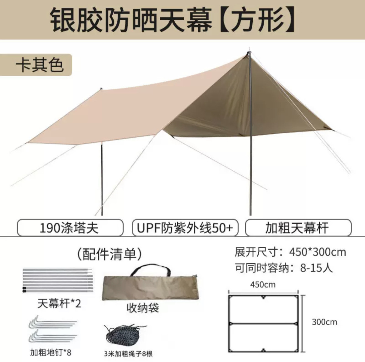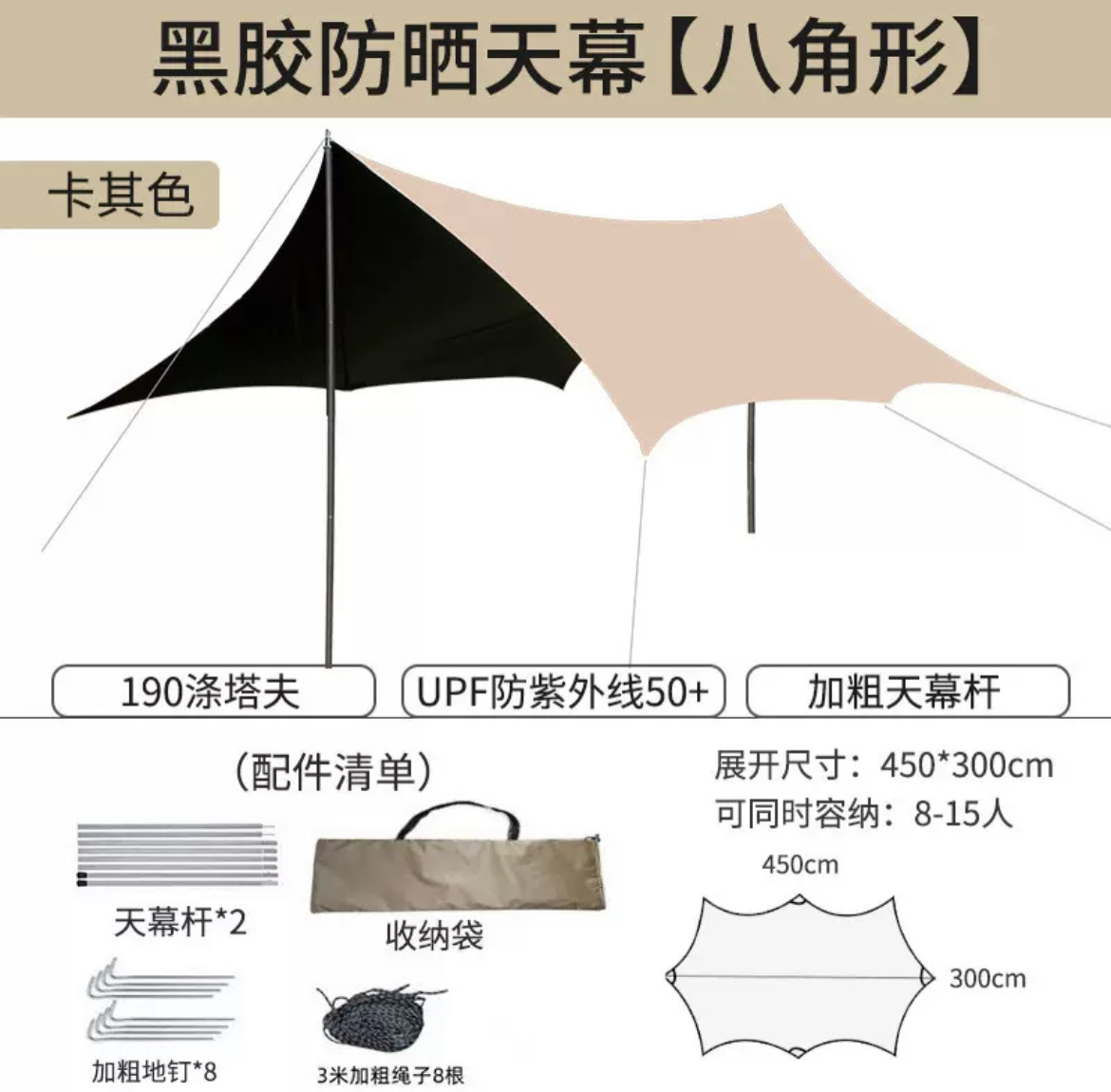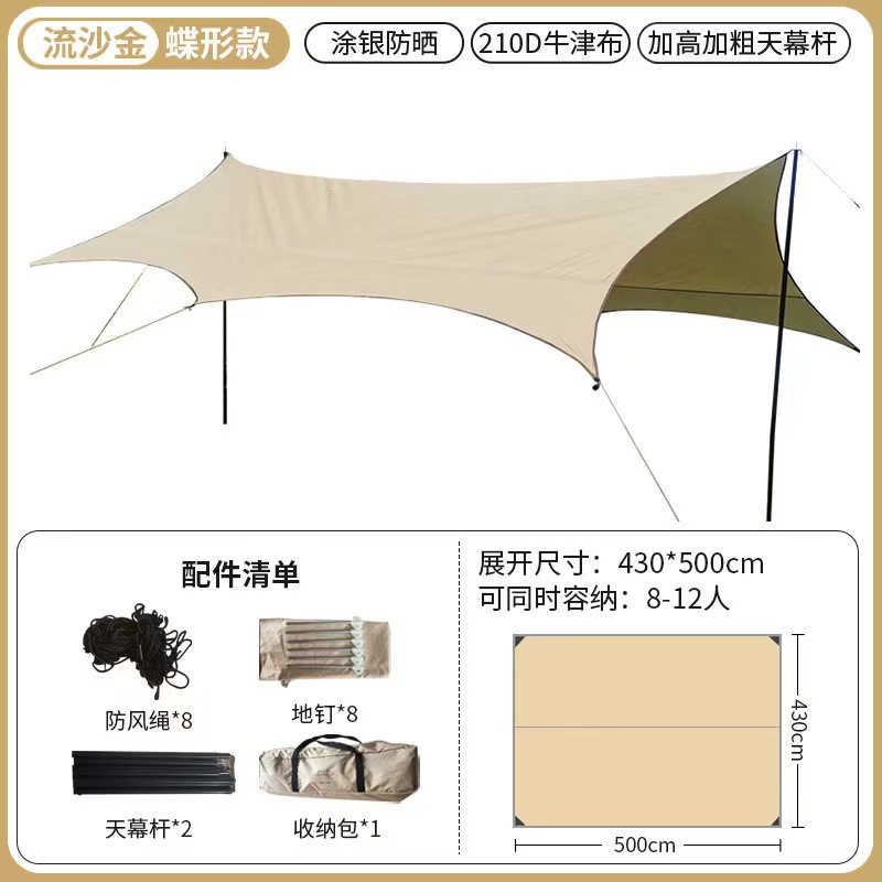 오픈 필드 물고기 야외 캠핑 여행 피크닉 육각형 텐트 두껍게 썬 스크린 팔각형 블랙 접착제 실버 레이어 그늘