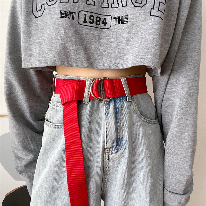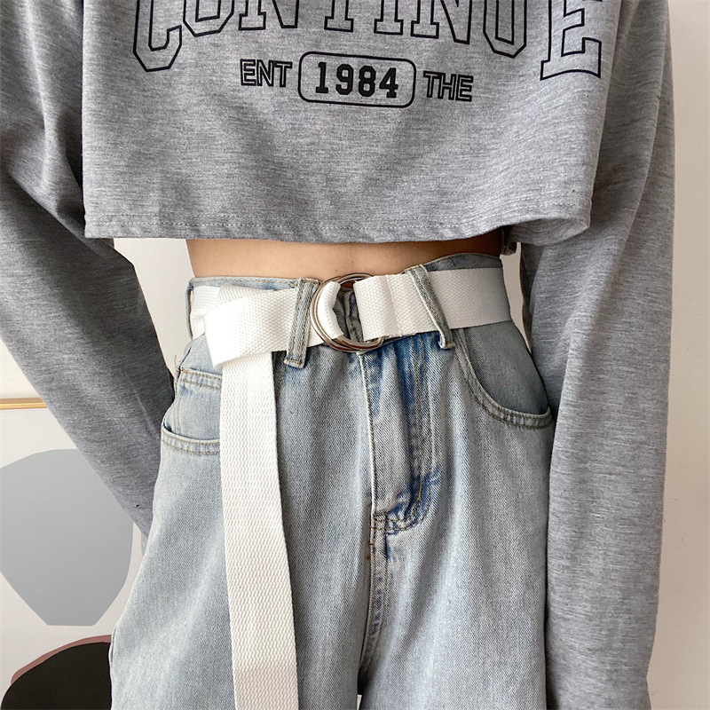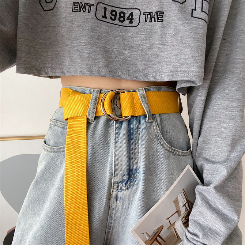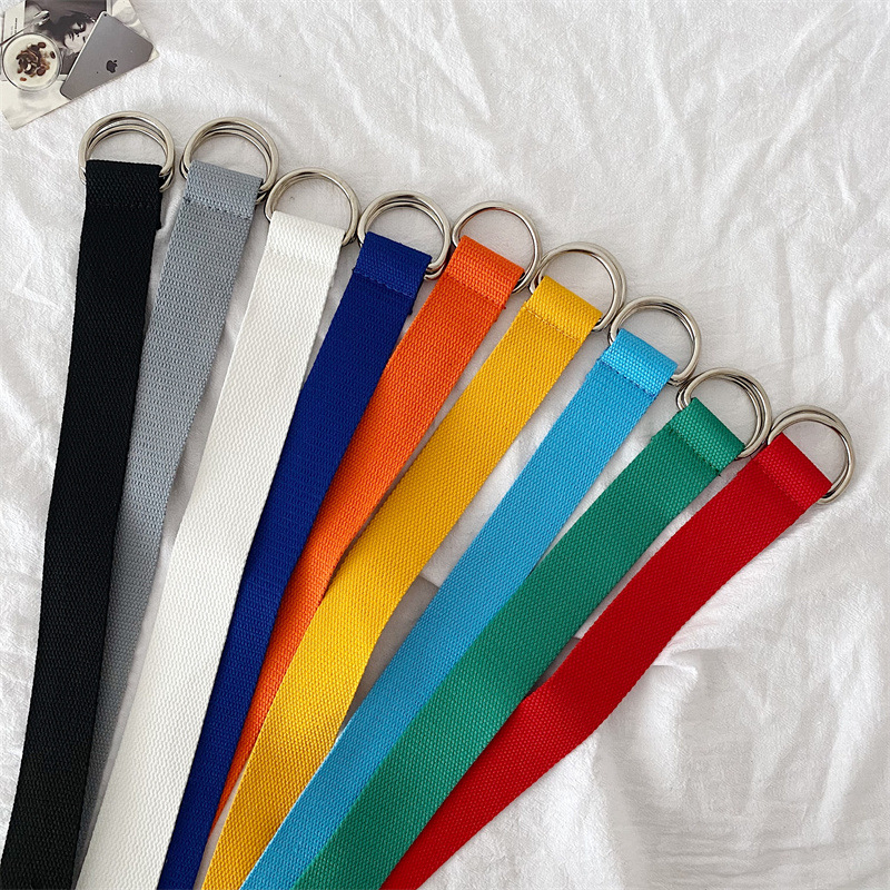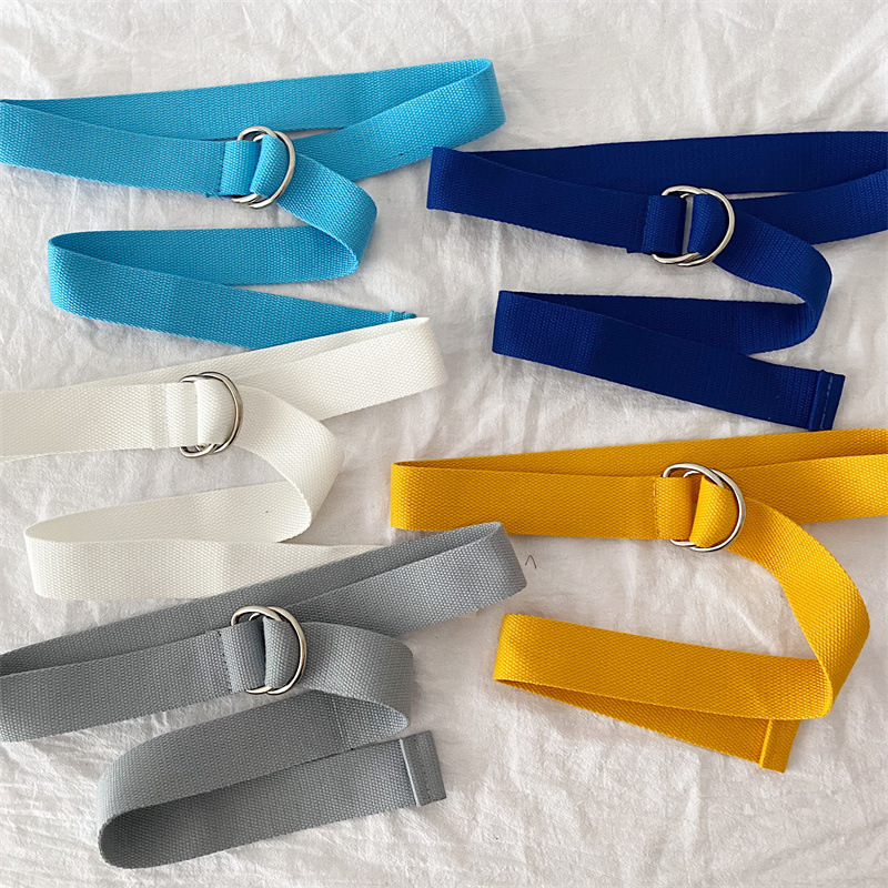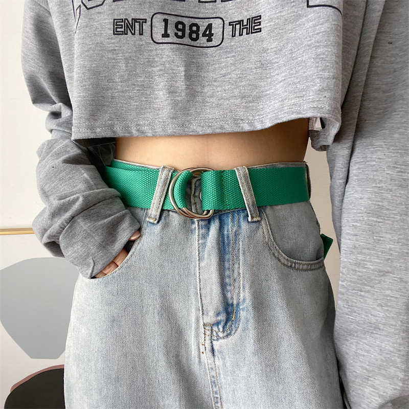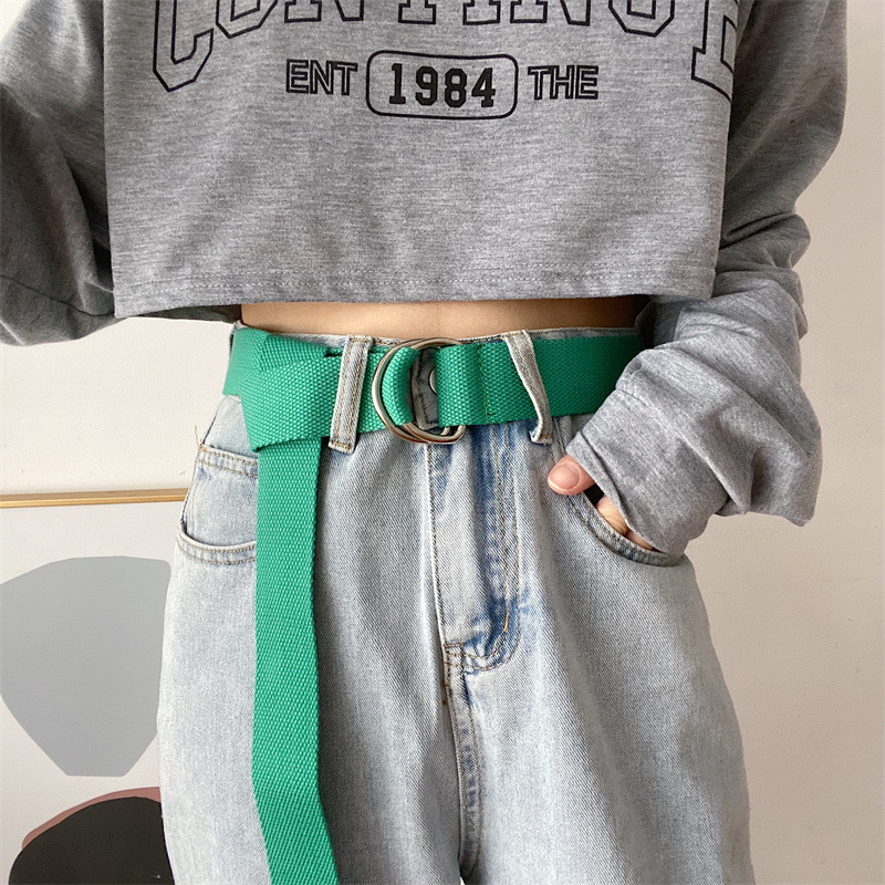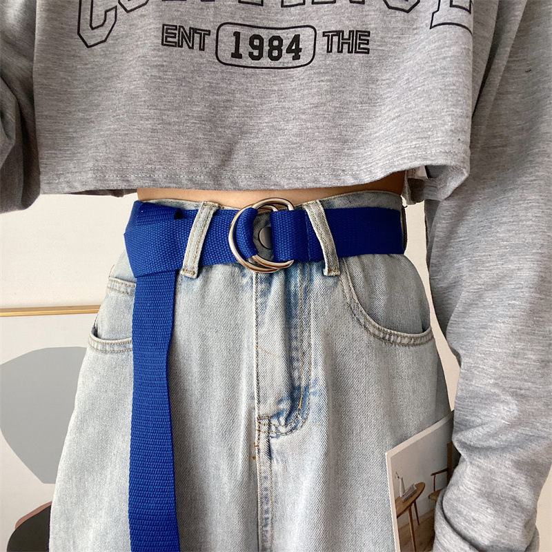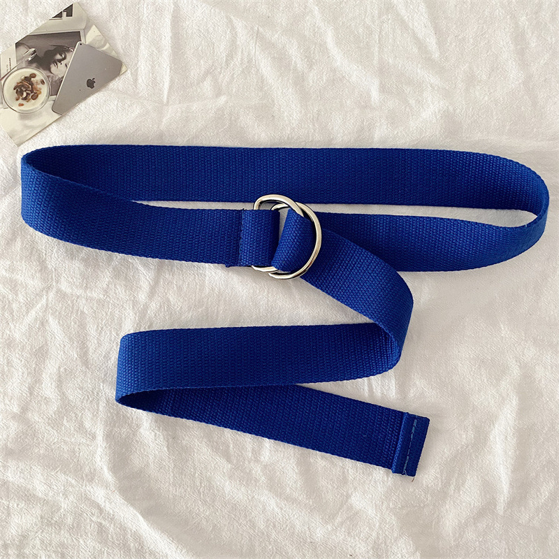 솔리드 컬러 캔버스 벨트 여성 더블 루프 버클 올 매치 청바지 벨트 장식 여름 학생 비 천공 벨트 남성스토어 가기