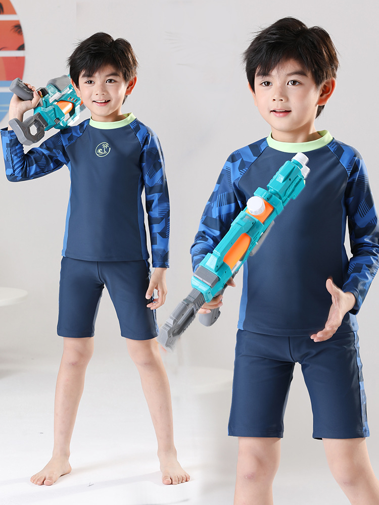남아 수영복 아동용 긴팔 속건 분리형 자외선 차단 2025 유아, 어린이, 중대형 아동 남아 수영복 전문 장비