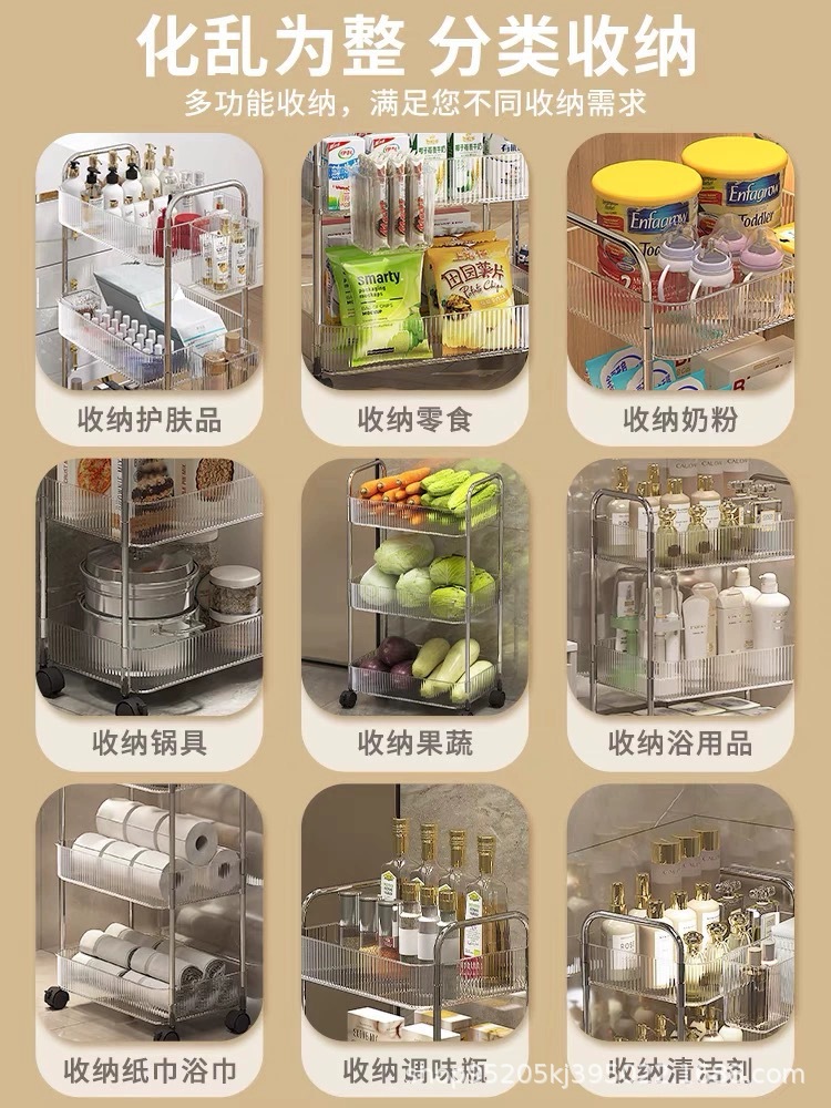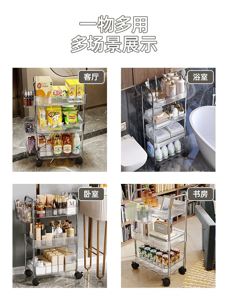 아크릴 카트 욕실 갭 스토리지 랙 거실 스낵 스토리지 랙 다층 모바일 화장품 스토리지 랙