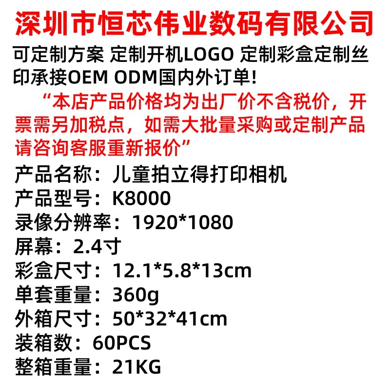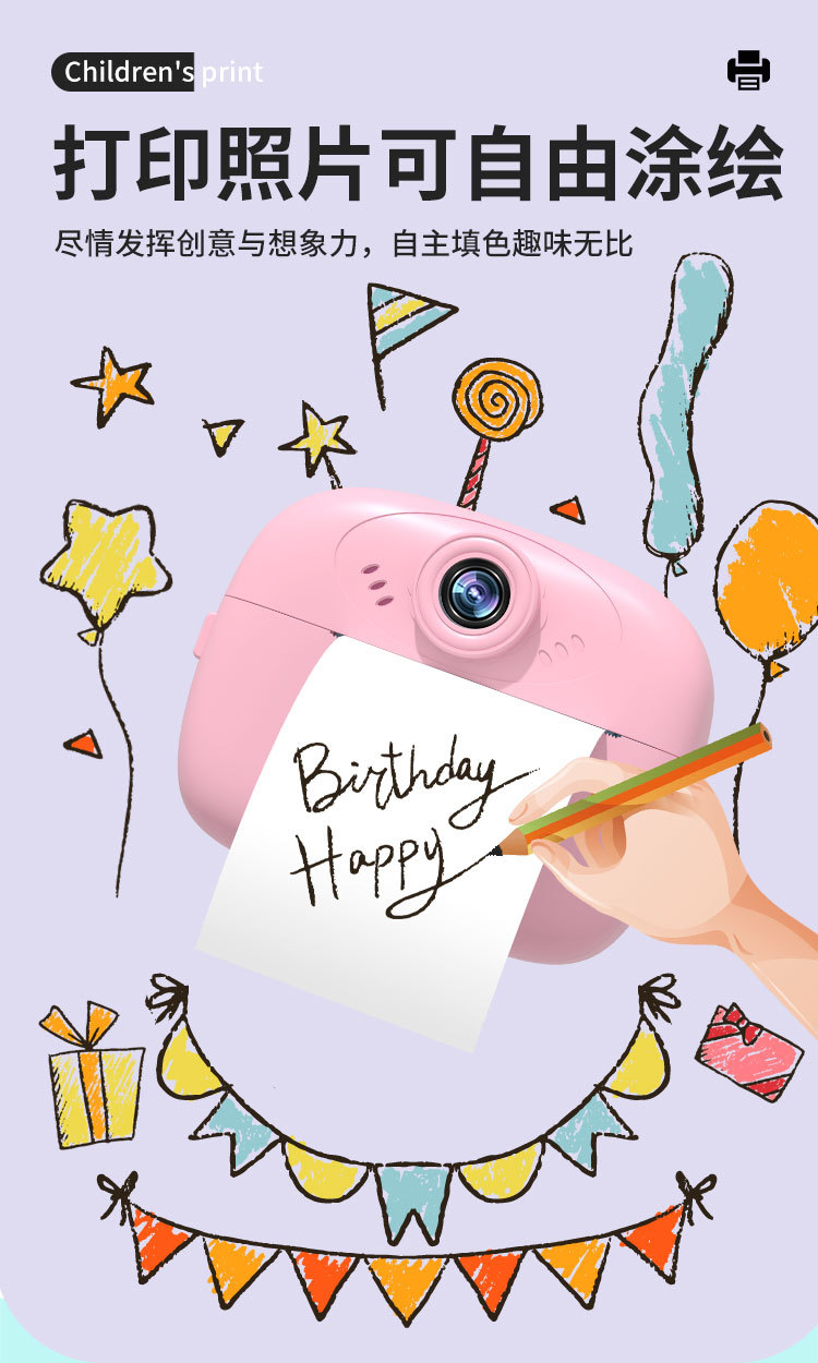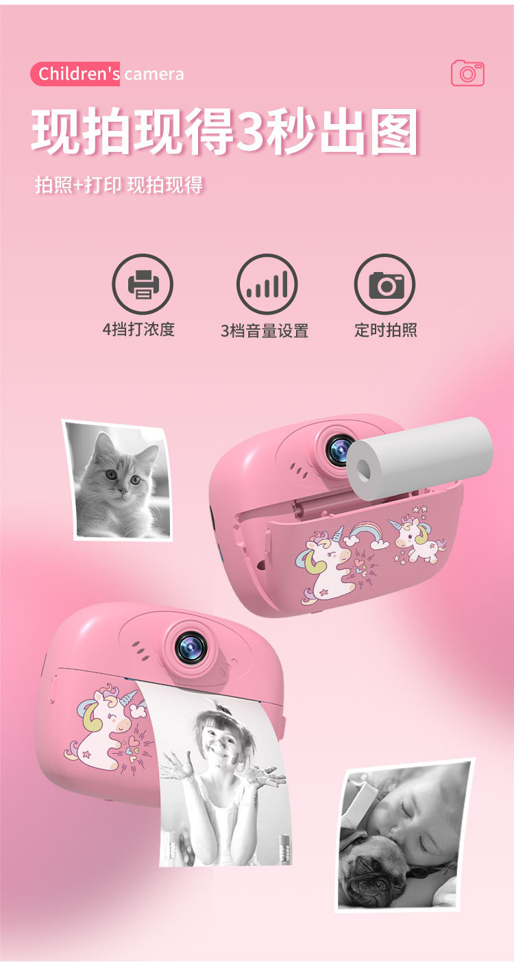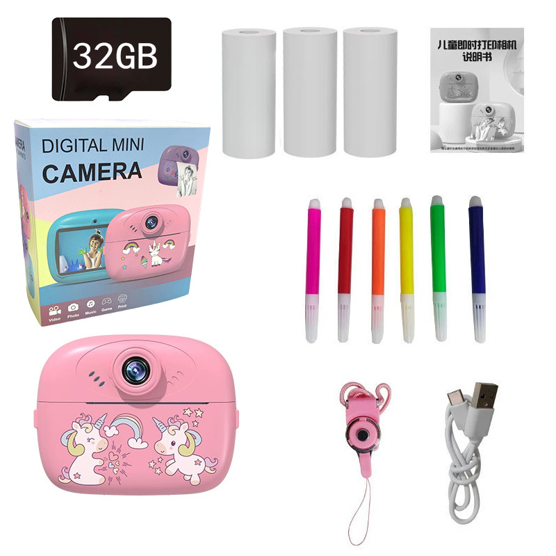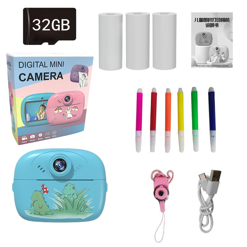 국경을 넘는 다기능 어린이 카메라 즉석 사진기 셀카 촬영 및 인쇄 가능 소형 카메라 휴대용스토어 가기