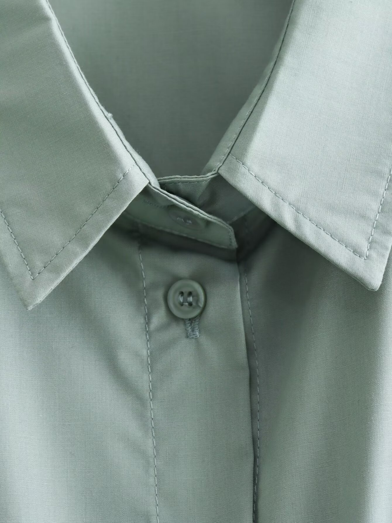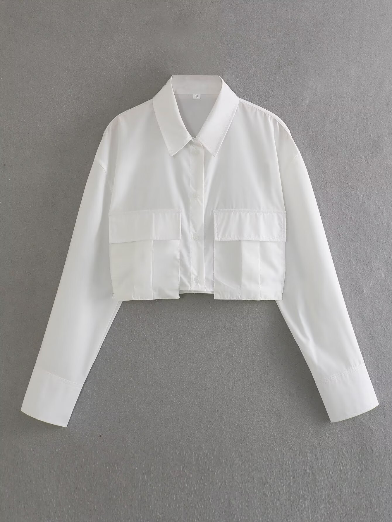 대외 무역 여성 의류 도매 봄과 가을 새로운 유럽과 미국 스타일의 4 색 포켓 장식 짧은 긴 소매 셔츠 최고 여성