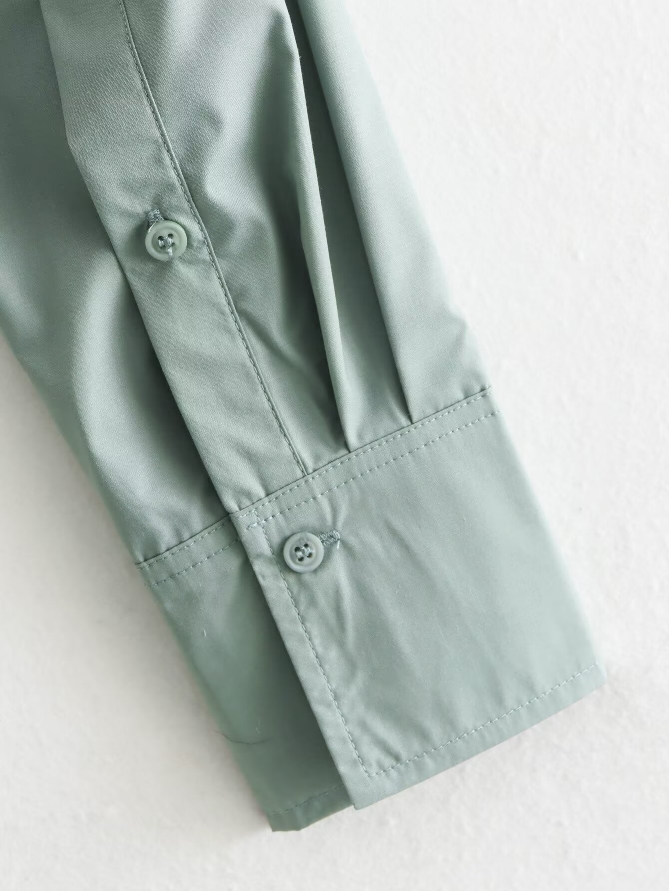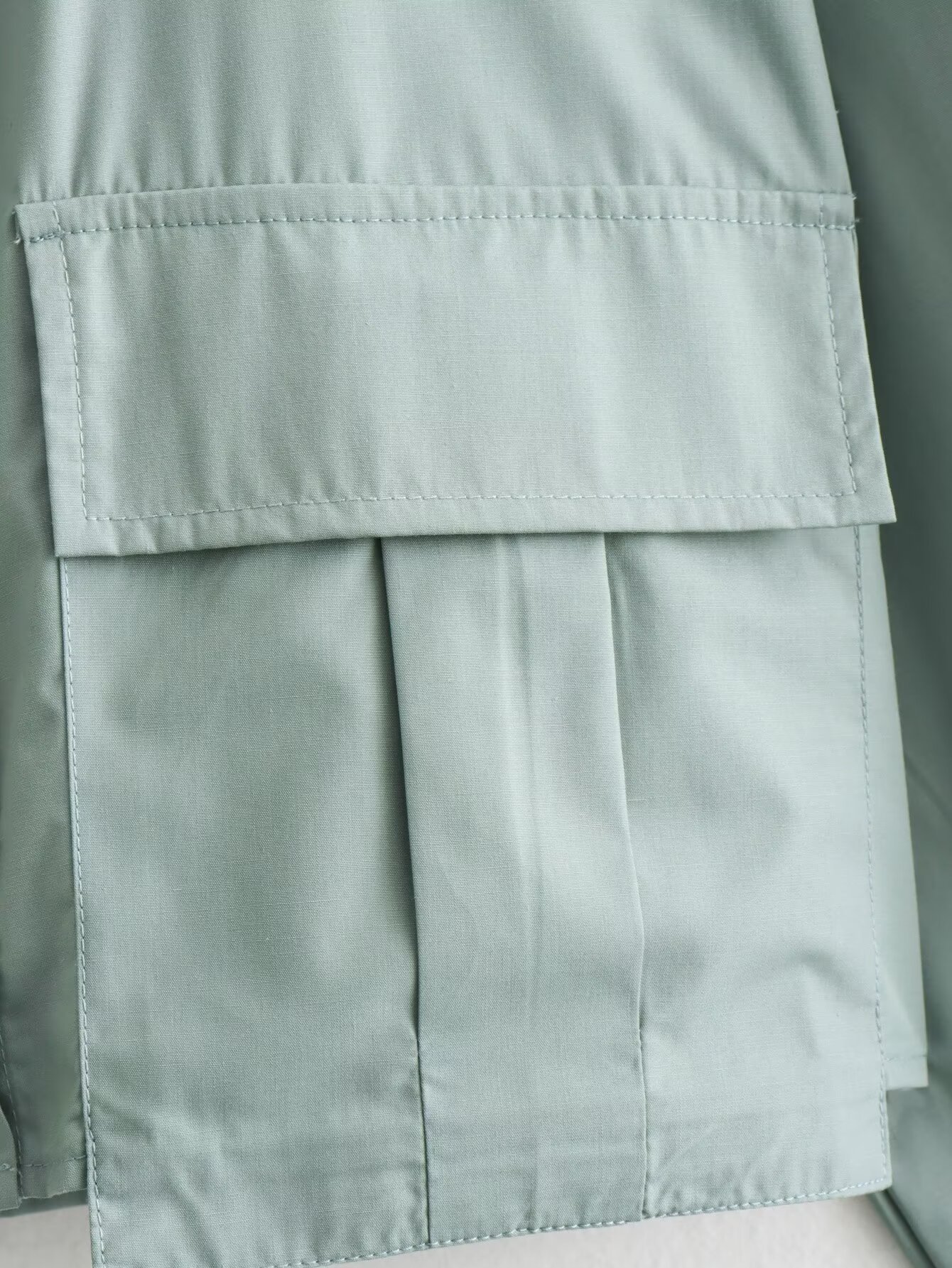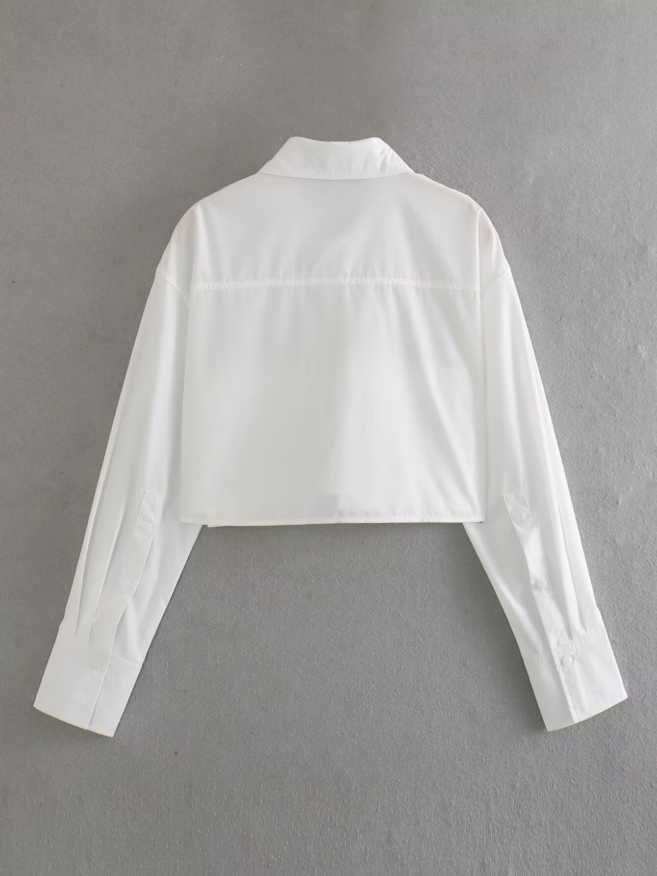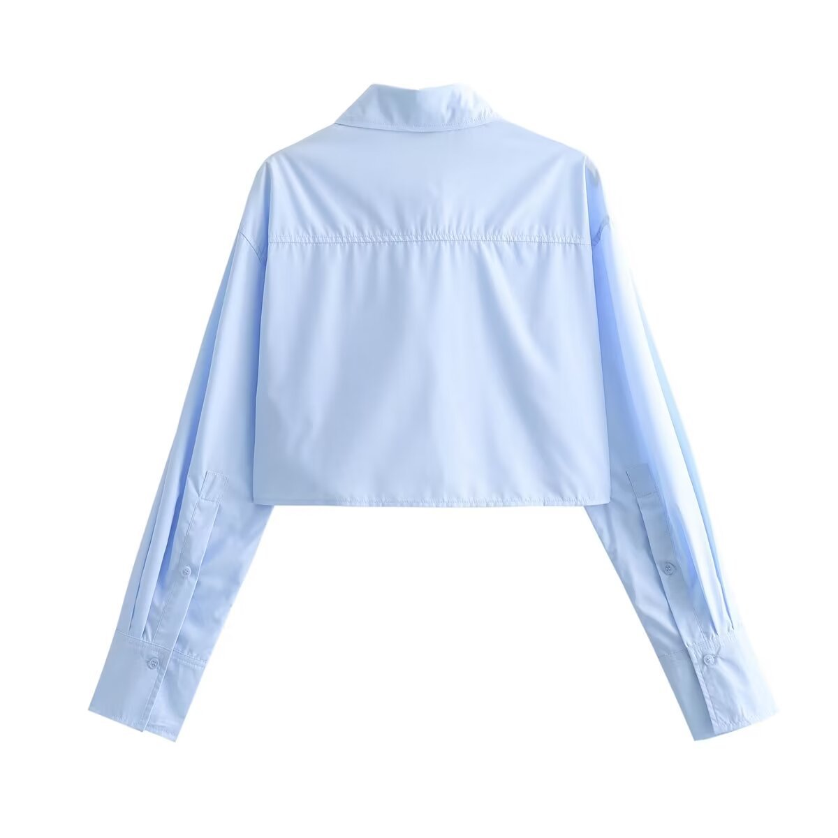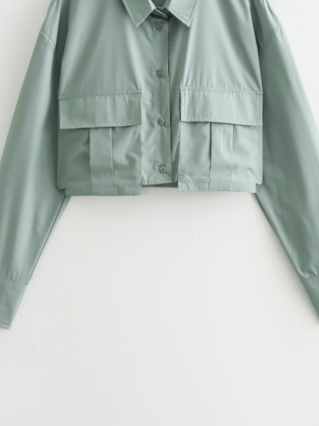 대외 무역 여성 의류 도매 봄과 가을 새로운 유럽과 미국 스타일의 4 색 포켓 장식 짧은 긴 소매 셔츠 최고 여성스토어 가기