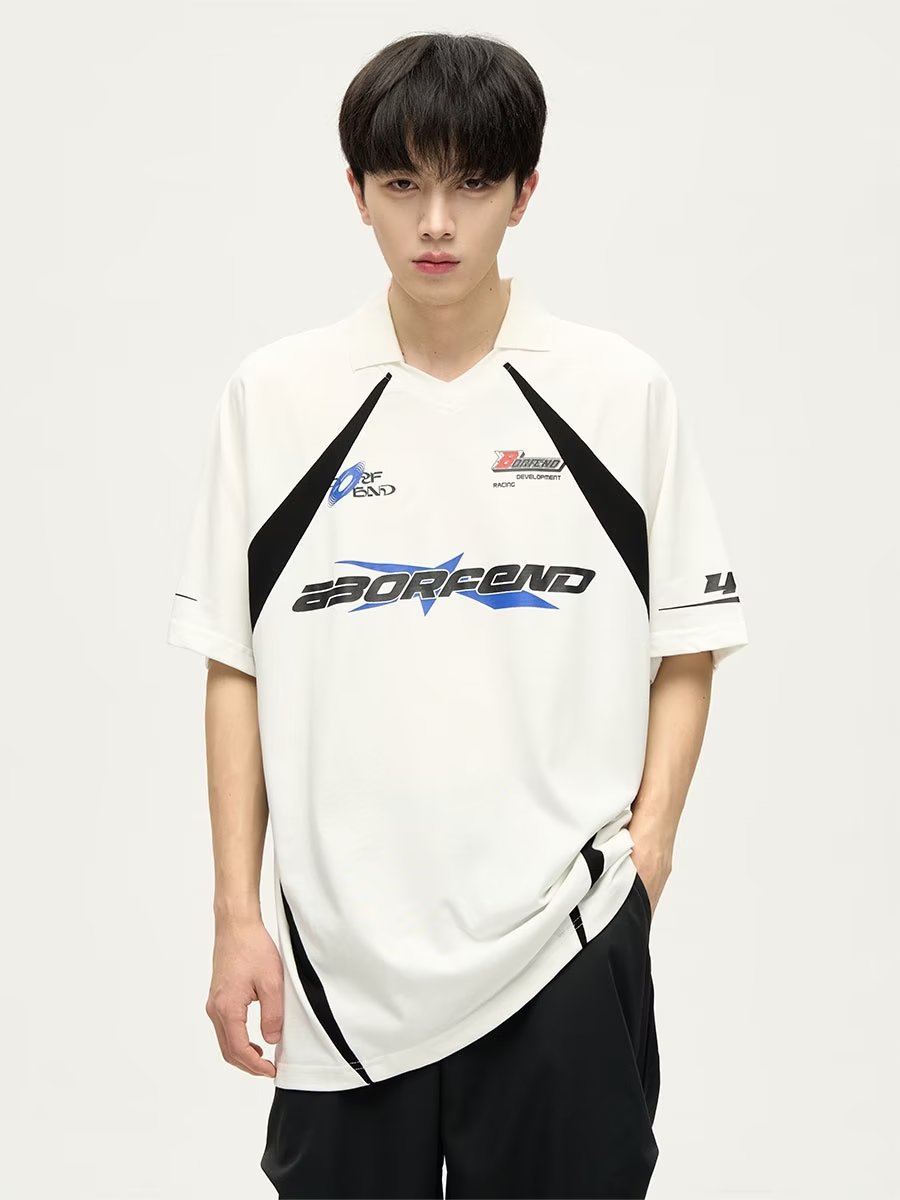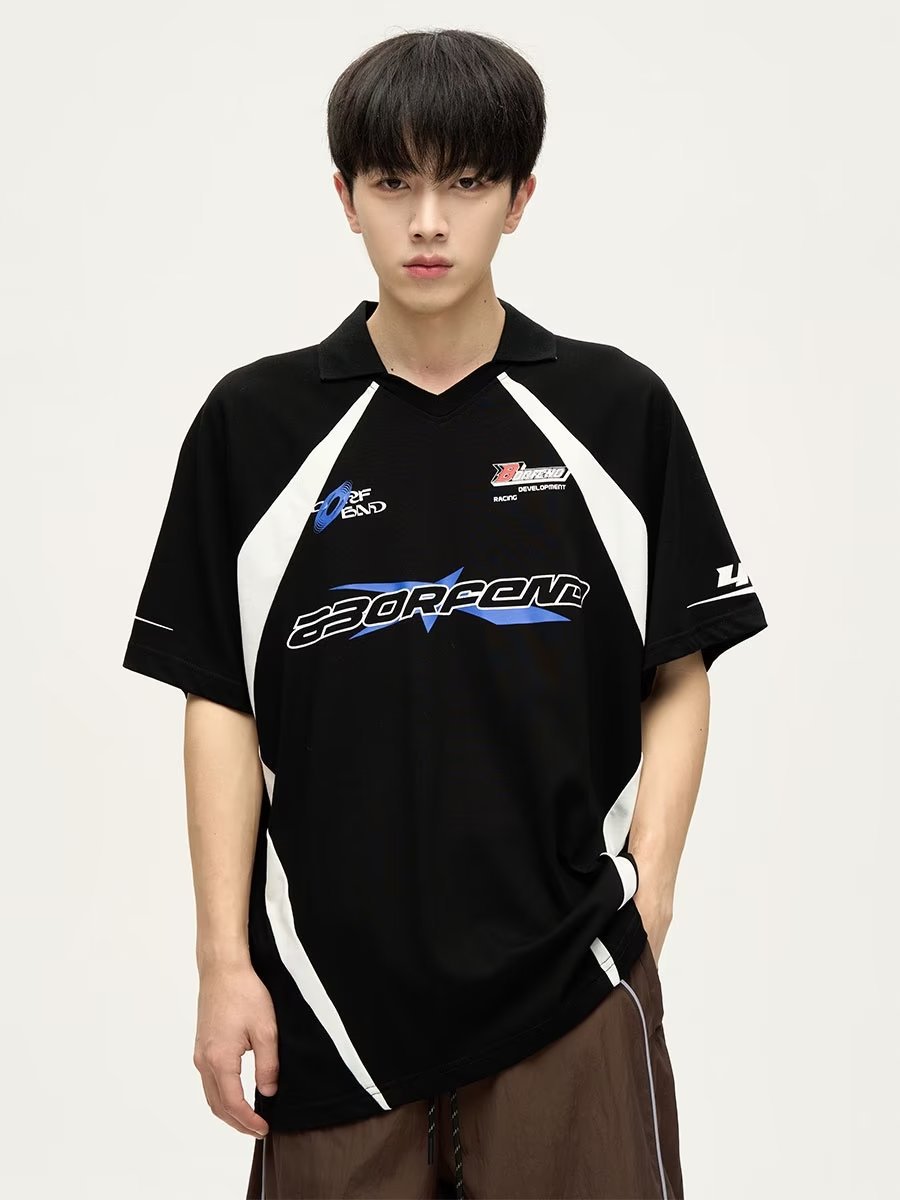 아메리칸 스트리트 오토바이 반팔 폴로 셔츠 소년 여름 빈티지 트렌디 티셔츠 트렌디 브랜드 5 소매 레이싱 세트스토어 가기
