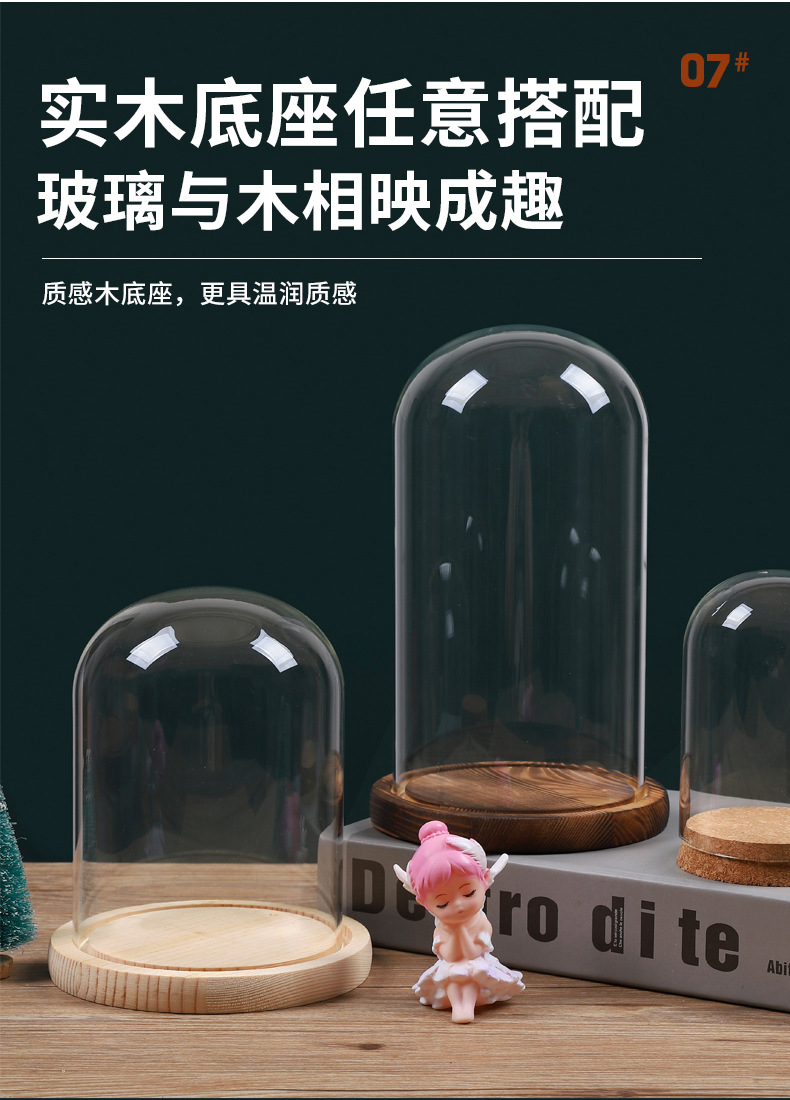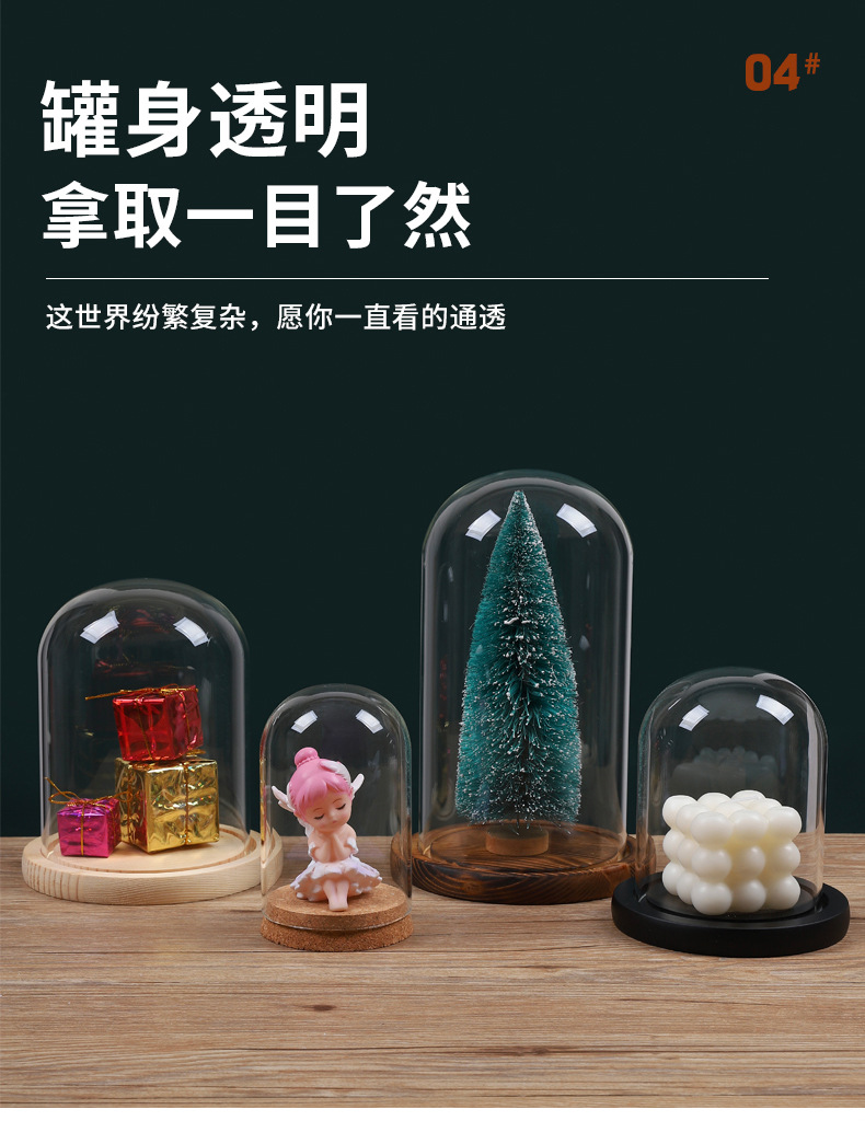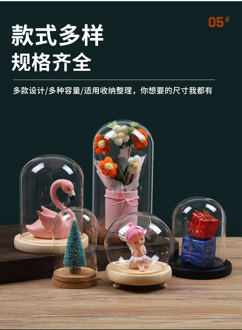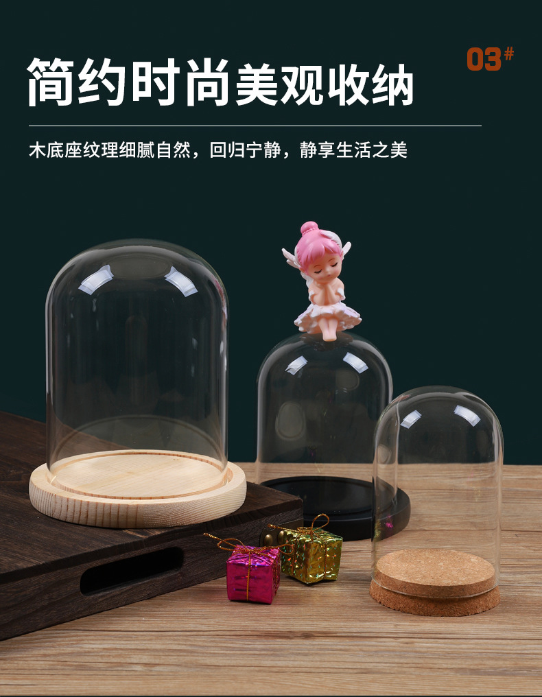 영구꽃 유리 덮개 디스플레이 박스 투명 방진 커버 블록 크리스마스 트리 드라이플라워 피규어 유리 커버
