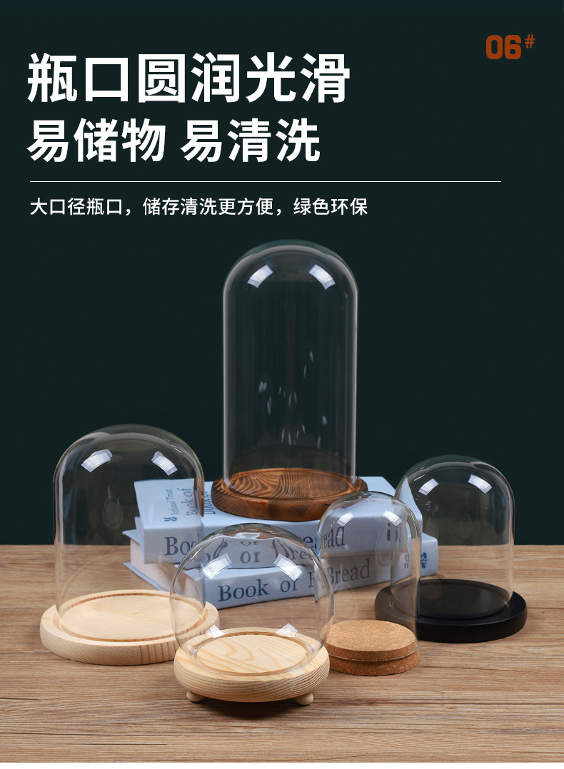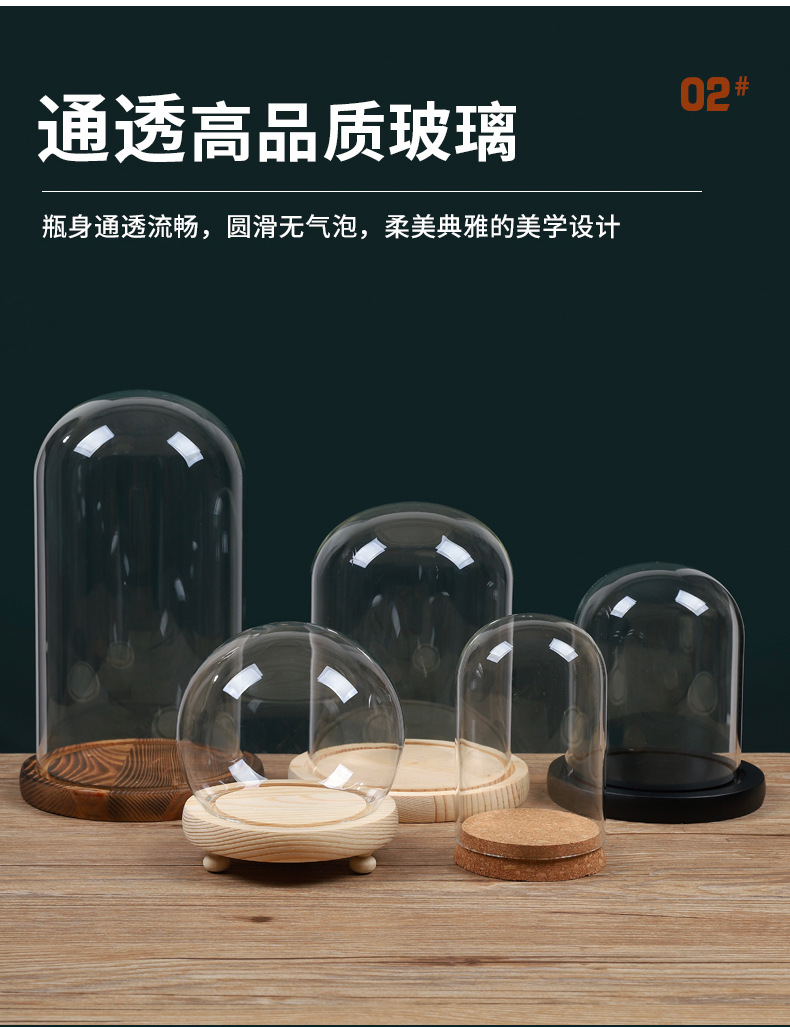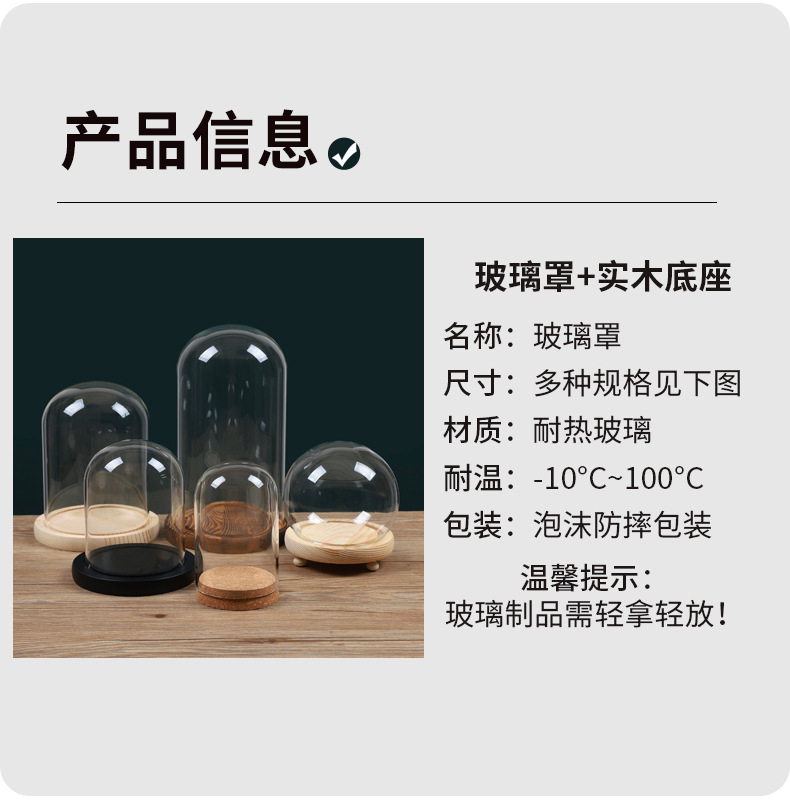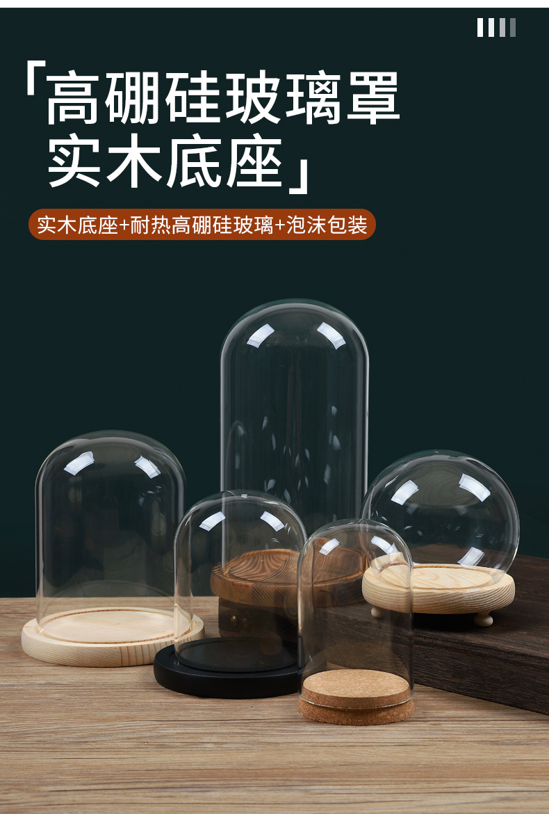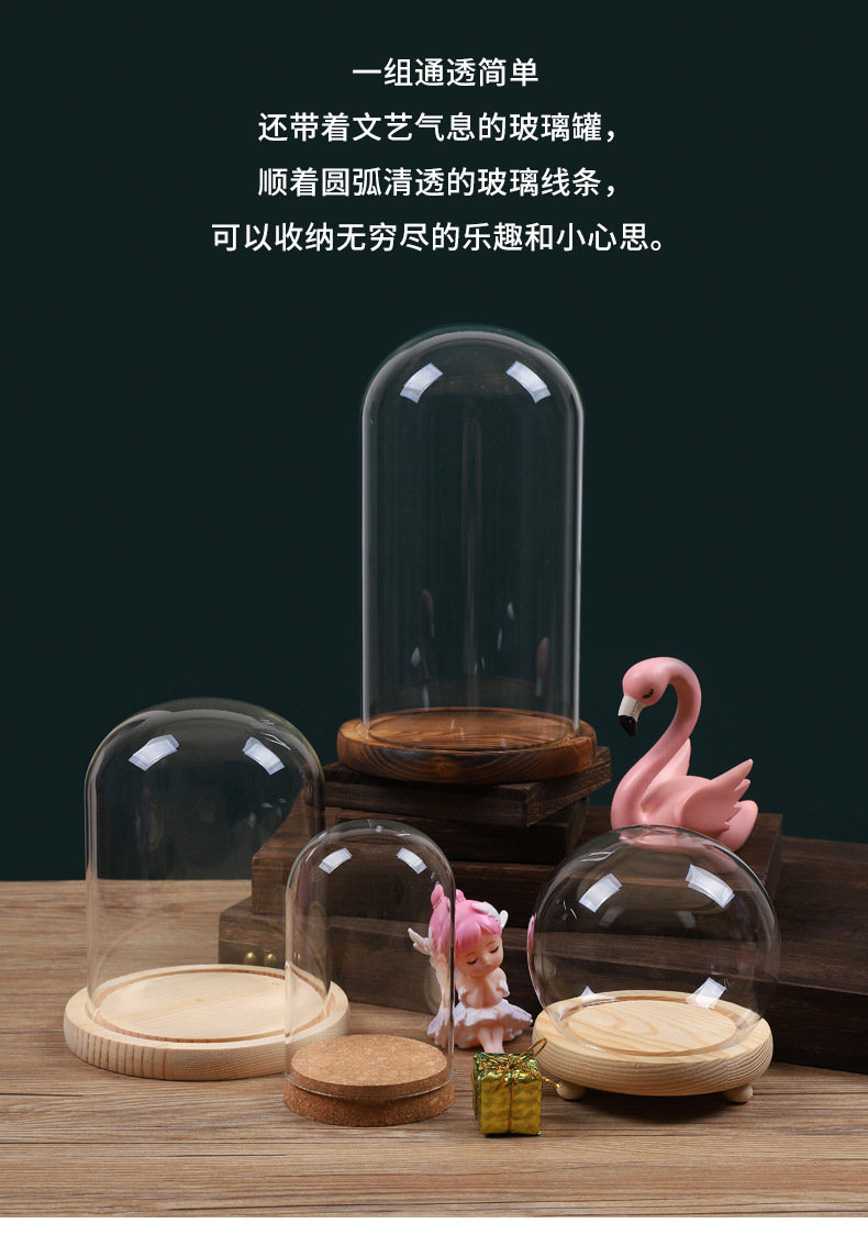 영구꽃 유리 덮개 디스플레이 박스 투명 방진 커버 블록 크리스마스 트리 드라이플라워 피규어 유리 커버