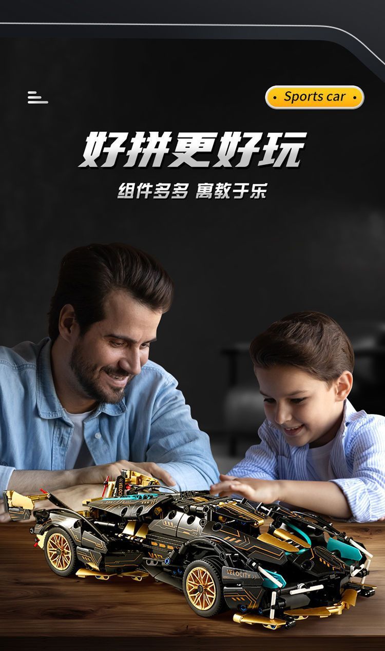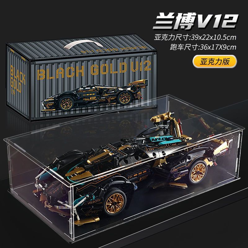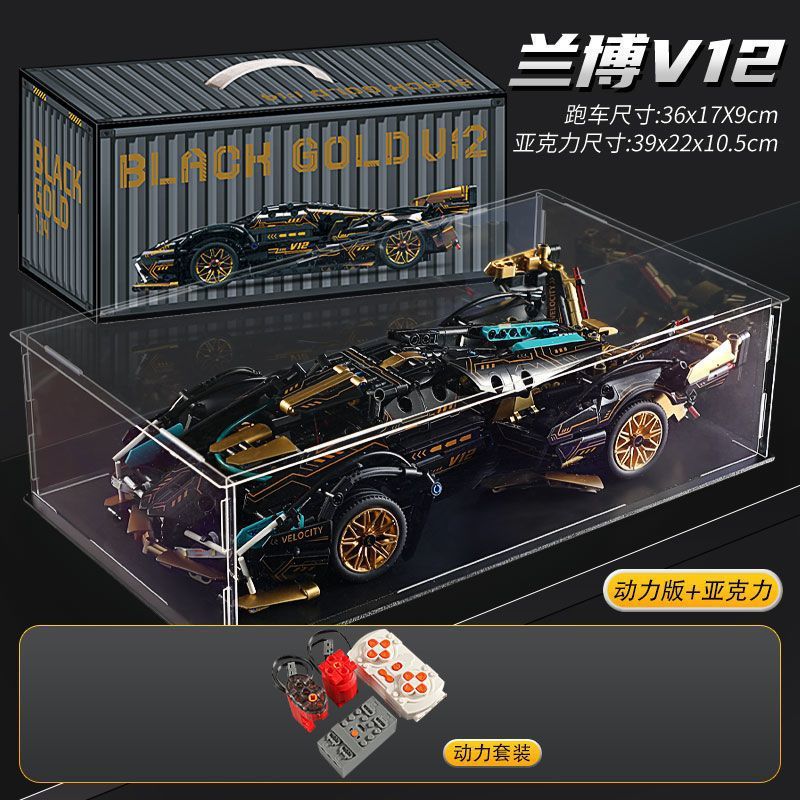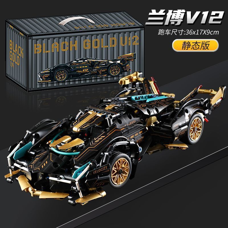 36cm 길이의 V12 블랙 골드 람보 블랙 워리어 빌딩 블록 원격 제어 사이버 스포츠카 퍼즐 조립 모델 남자아이 선물스토어 가기