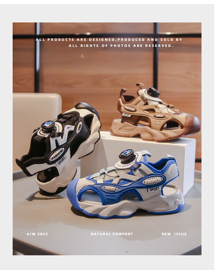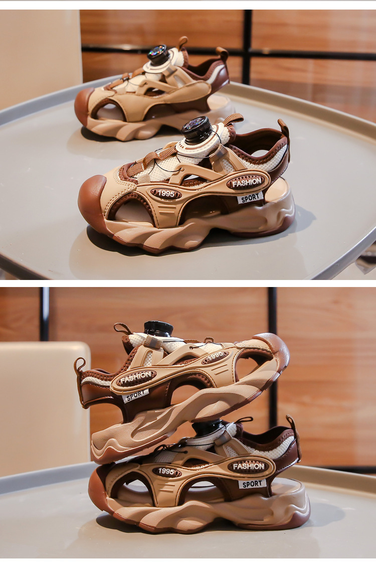 어린이 샌들 새로운 2024 여름 편안한 패션 캐주얼 바오터우 소년 비치 슈즈 학생 한국 스타일 어린이 신발