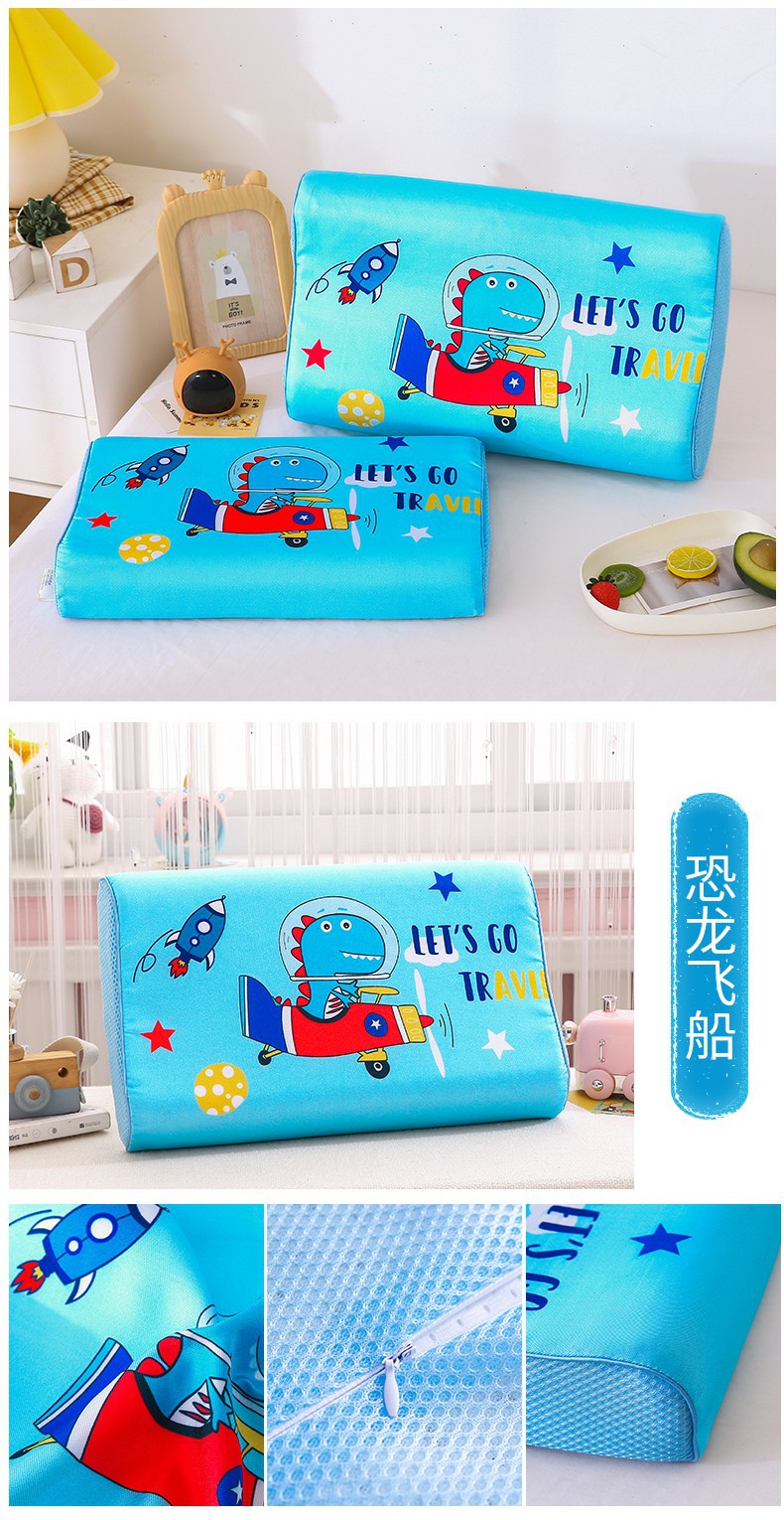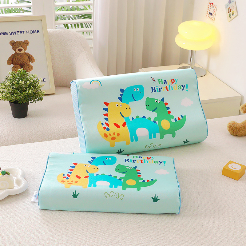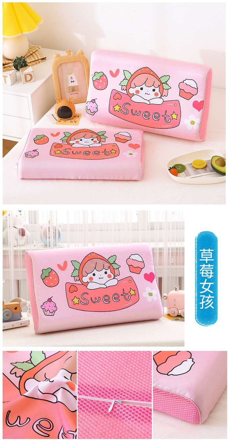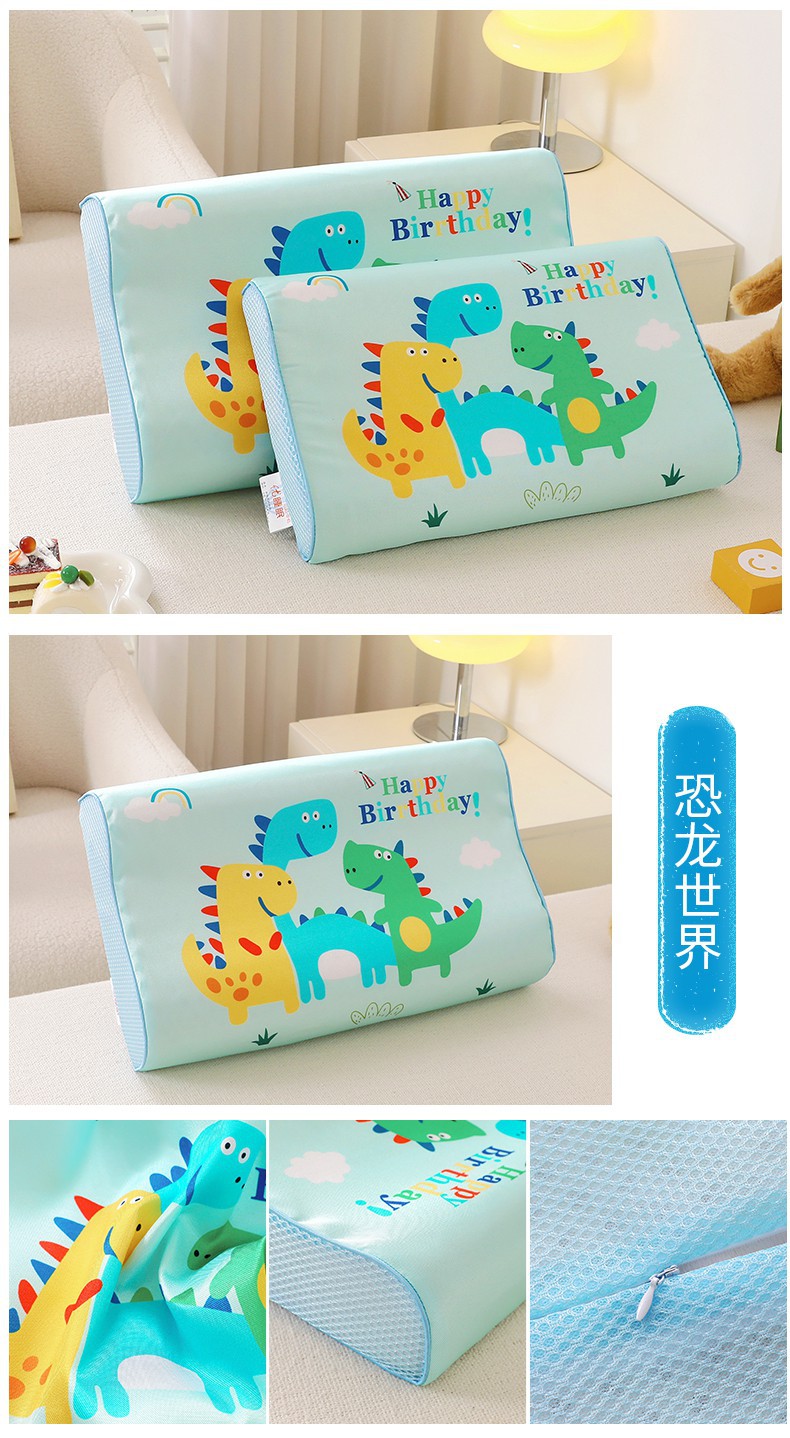 새로운 아이스 실크 어린이 라텍스 베개 여름 아이스 실크 학생 라텍스 베개 만화 자연 목 베개 그룹 구매