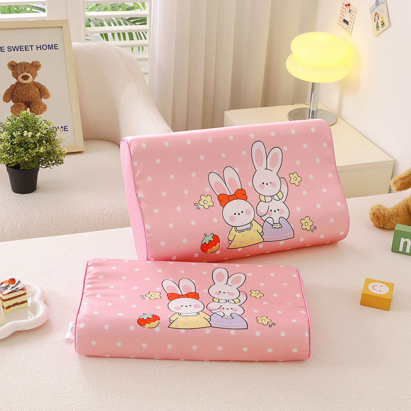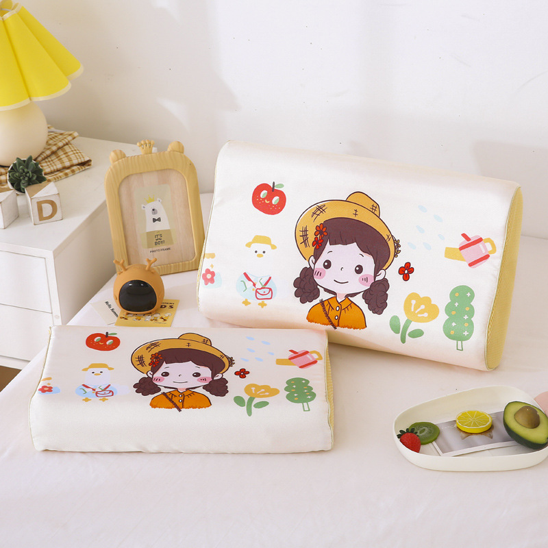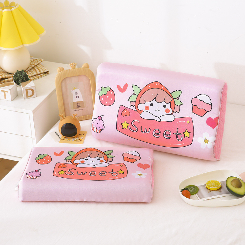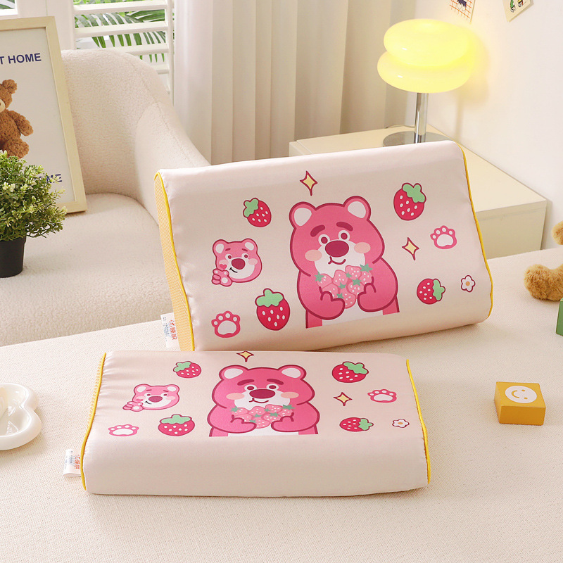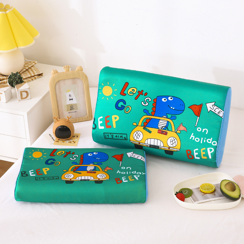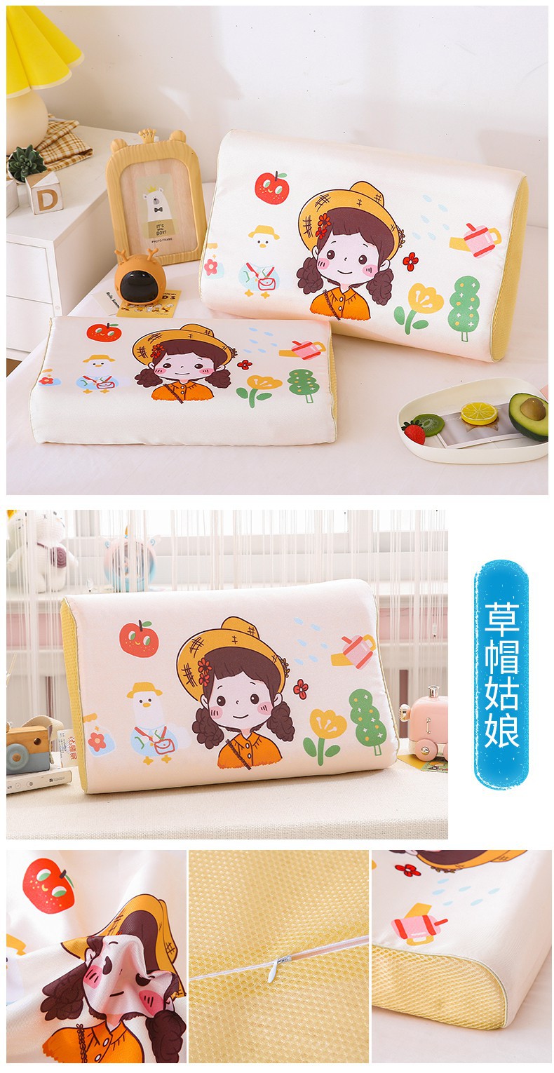 새로운 아이스 실크 어린이 라텍스 베개 여름 아이스 실크 학생 라텍스 베개 만화 자연 목 베개 그룹 구매