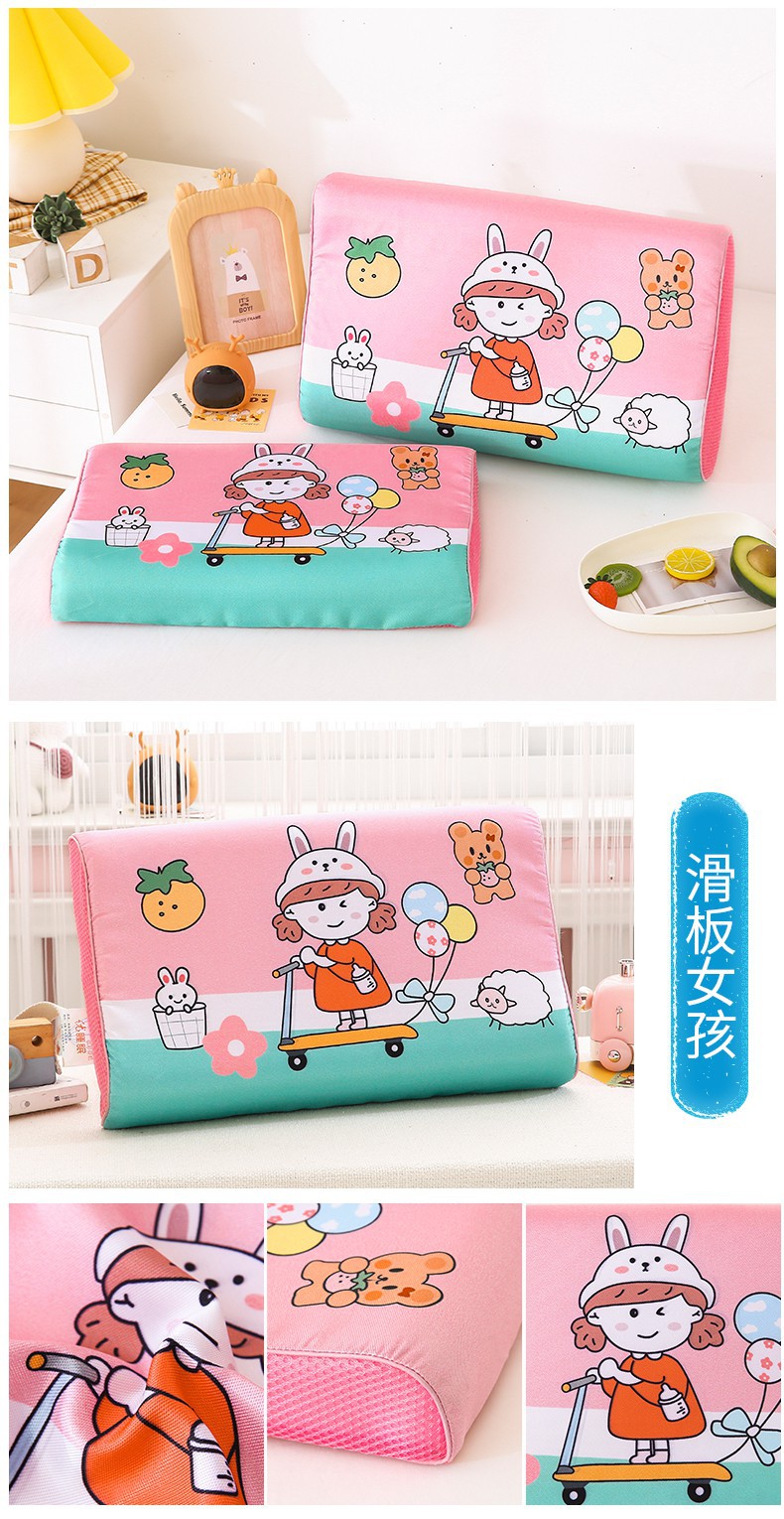 새로운 아이스 실크 어린이 라텍스 베개 여름 아이스 실크 학생 라텍스 베개 만화 자연 목 베개 그룹 구매스토어 가기