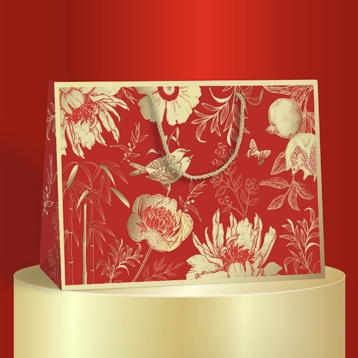 레드 중국 스타일 선물 가방 드래곤 보트 축제 중추절 포장 종이 가방 하이 엔드 선물 가방 두꺼운 대형 핸드백