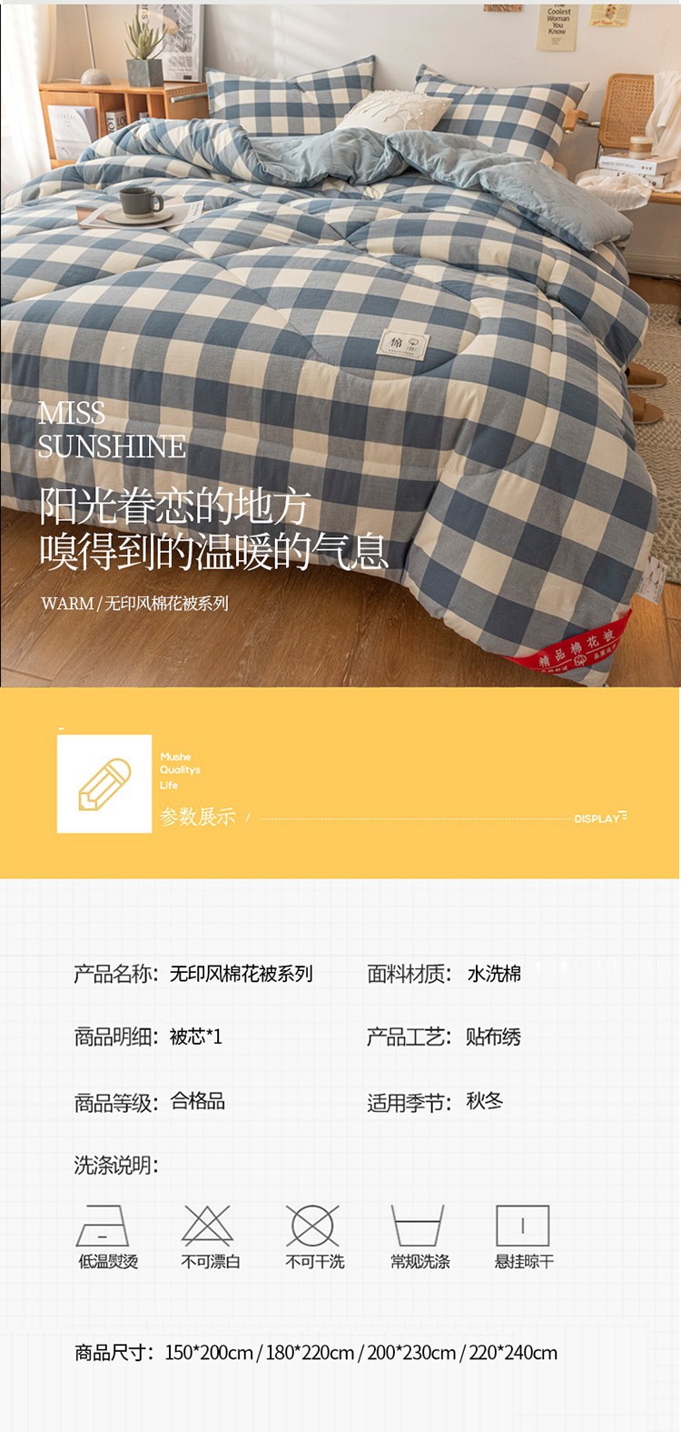 Wuyin 스타일 씻은 면 여름 시원한 이불 신장 코튼 퀼트 겨울 이불 코어 봄과 가을 이불 사계절 유니버설 에어컨 이불스토어 가기