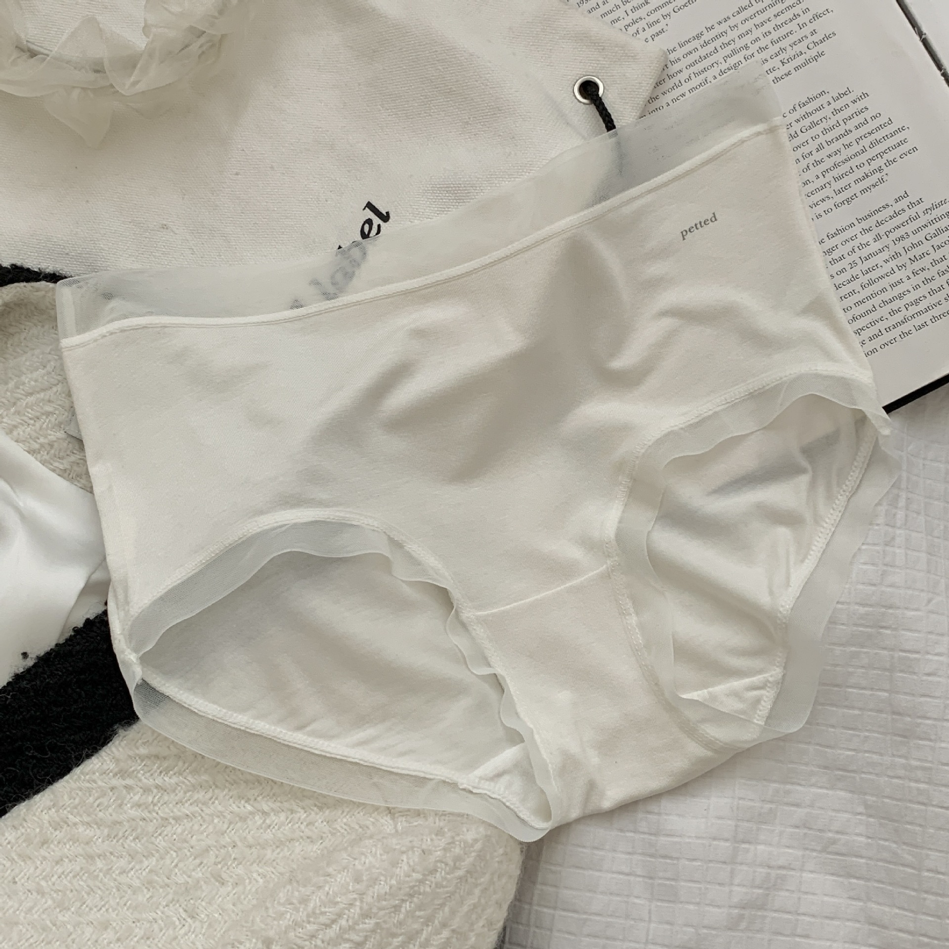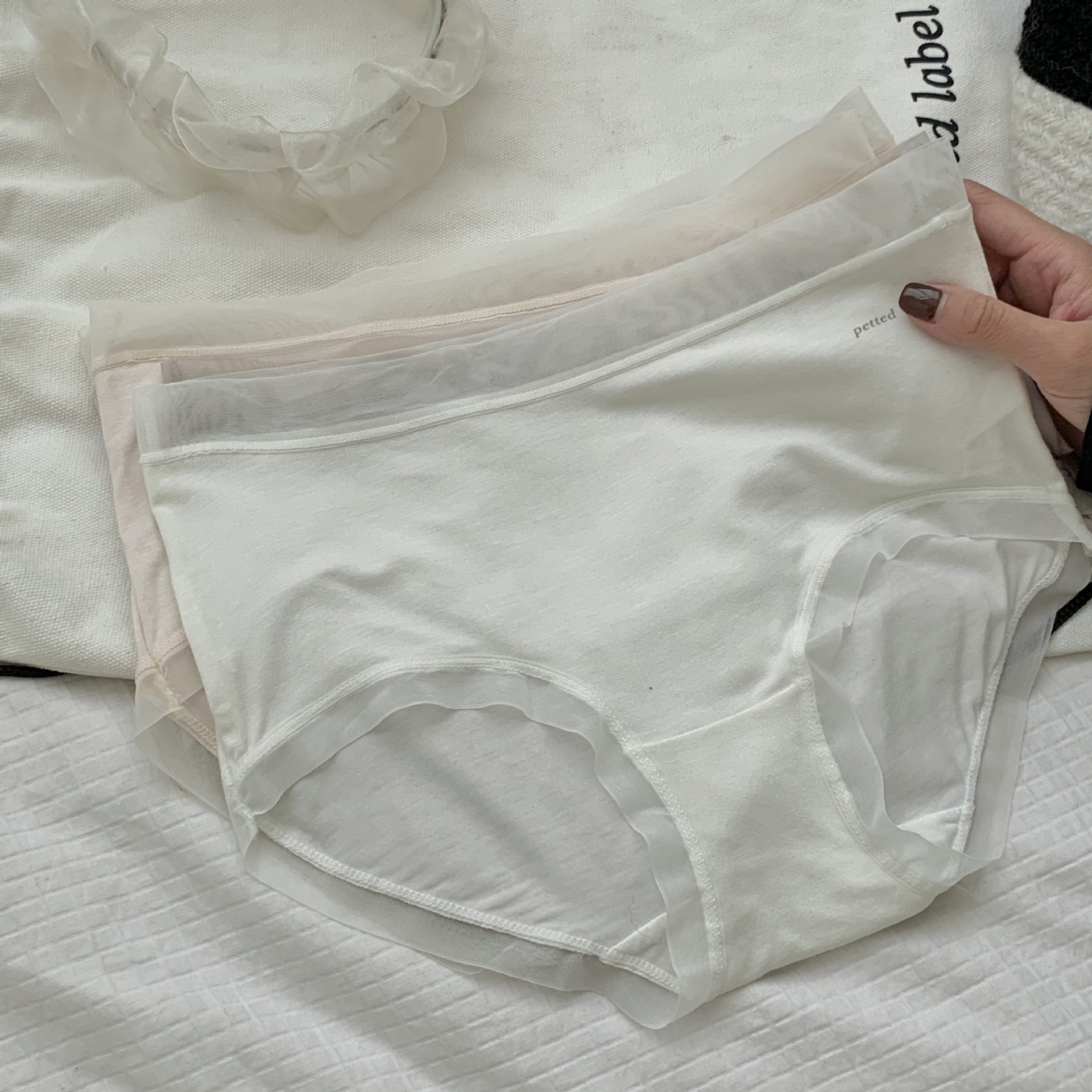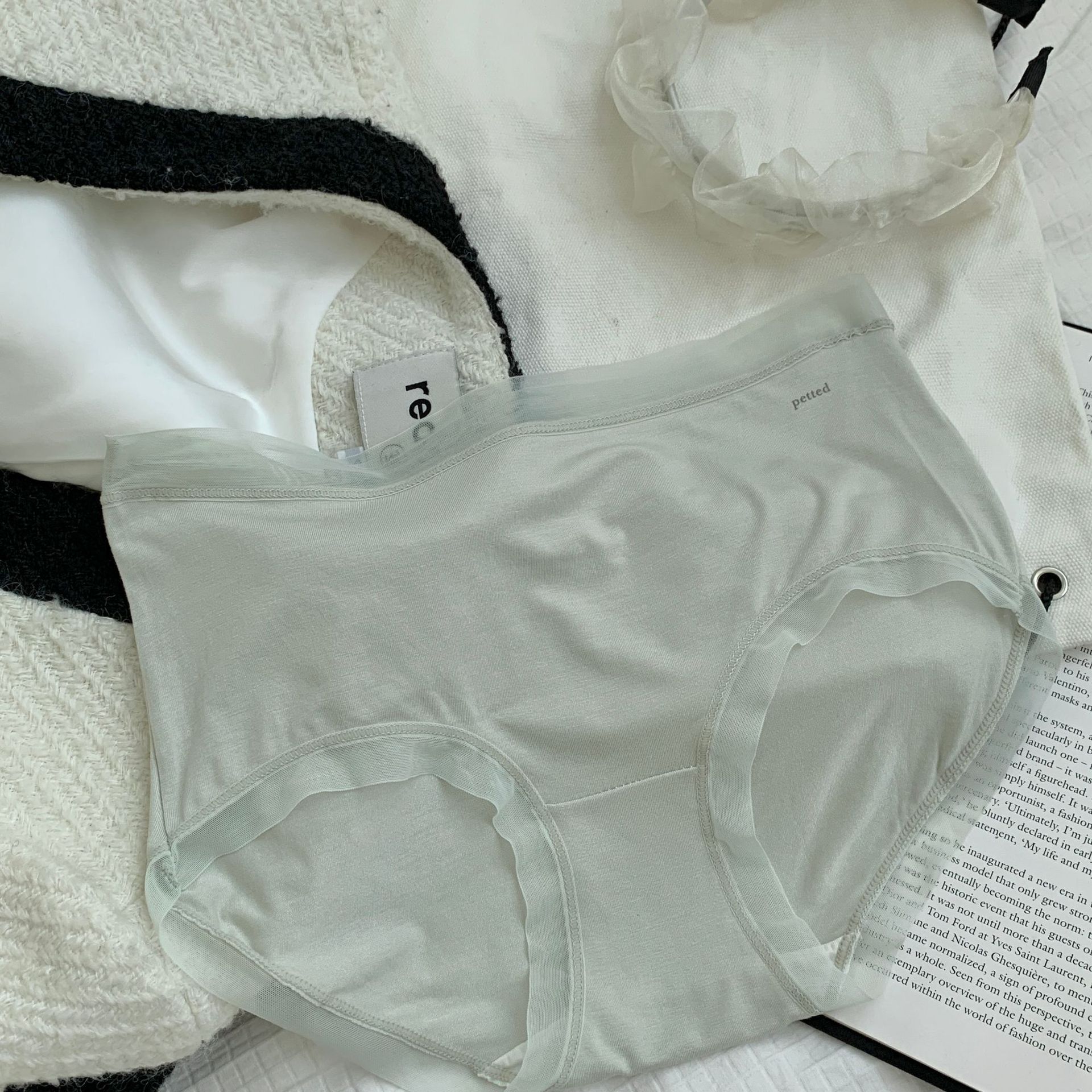 모달면 편안한 소녀의 편지 레이스 가장자리 솔리드 컬러 신선한 중간 허리 높은 탄성 코튼 크로트 브리프 소녀스토어 가기