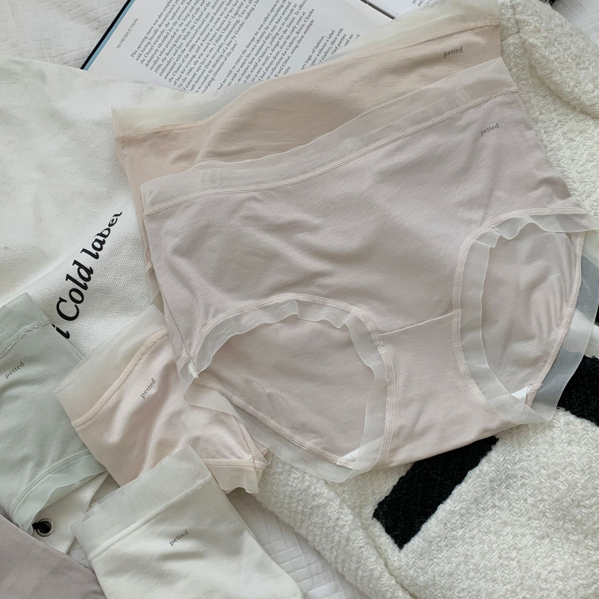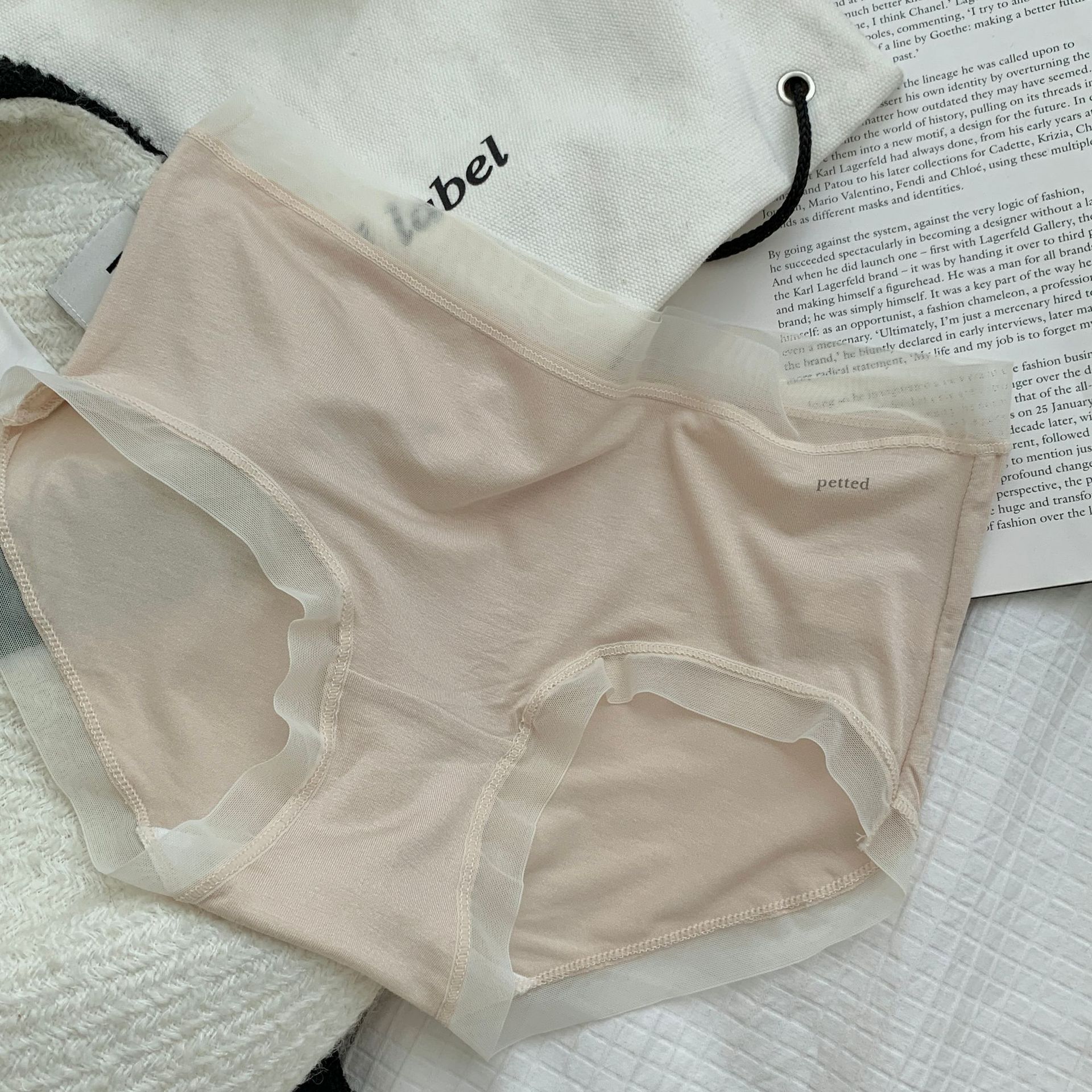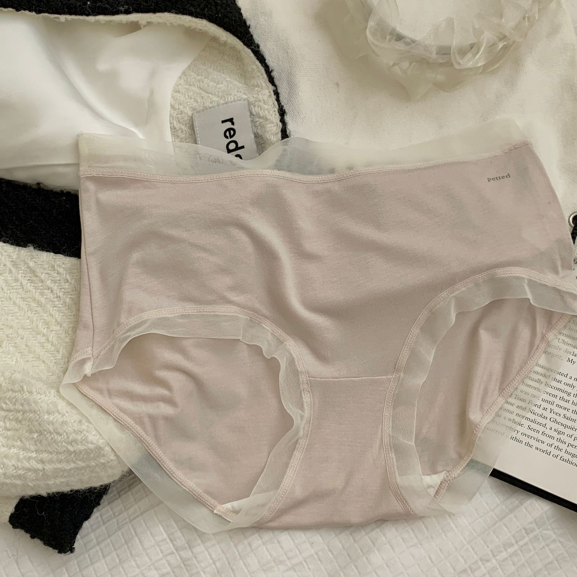 모달면 편안한 소녀의 편지 레이스 가장자리 솔리드 컬러 신선한 중간 허리 높은 탄성 코튼 크로트 브리프 소녀스토어 가기