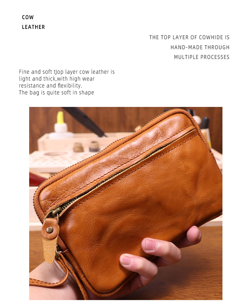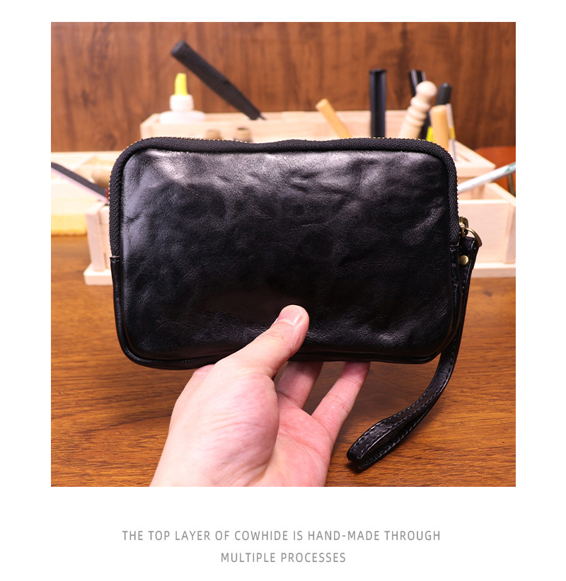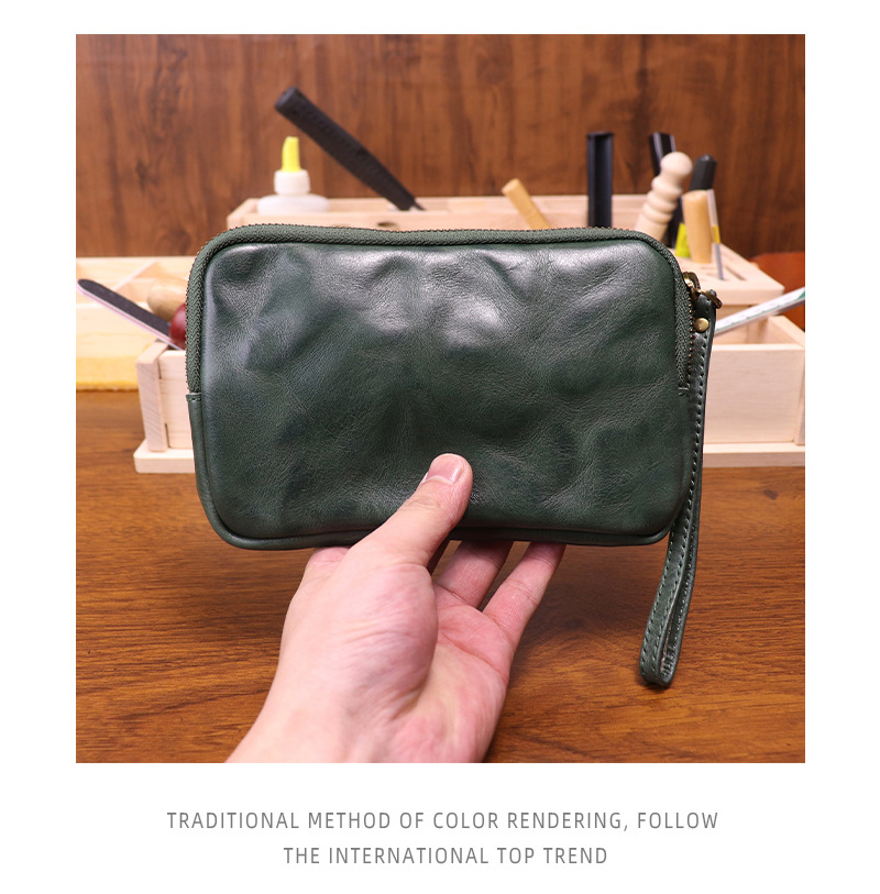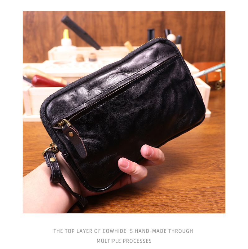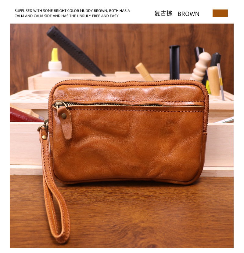 2024 새로운 스타일 복고풍 수제 컬러 Cowhide 클러치 백 여성 복고풍 간단한 대용량 휴대 전화 가방스토어 가기